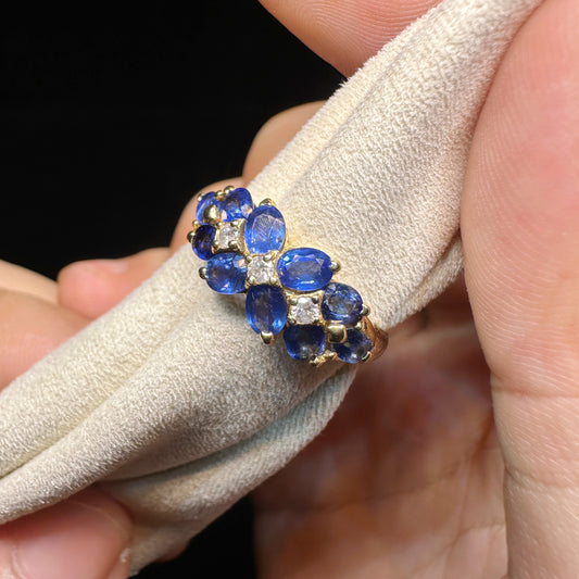 Vintage K18 Gold Sapphire and Diamond Ring|2.00ct Blue Sapphires + 0.09ct Diamonds|Japanese Estate Jewelry