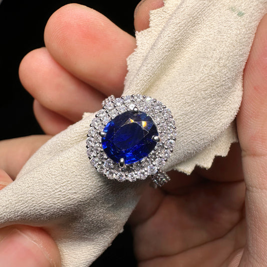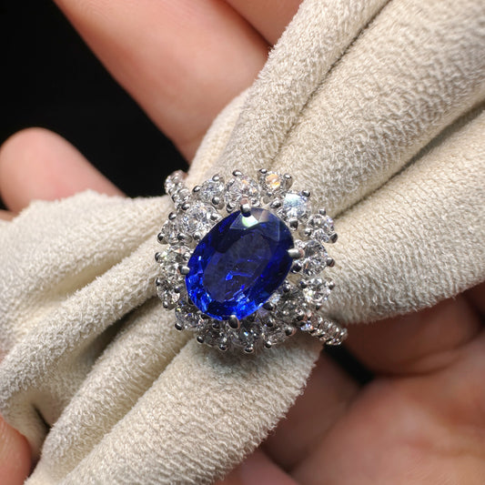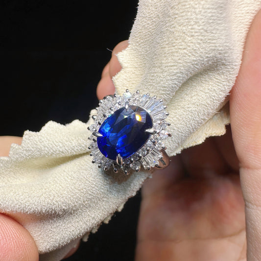 PT900 Platinum Sapphire and Diamond Halo Ring|2.15ct Royal Blue Sapphire + 0.63ct Diamonds|Vintage Japanese Fine Jewelry