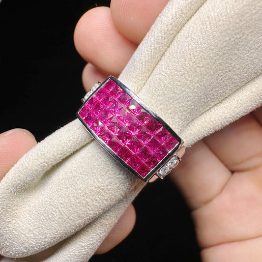 PT750 Platinum Pink Sapphire and Diamond Ring|2.01ct Geometric Cluster + 0.13ct Diamonds|Vintage Japanese Designer Jewelry