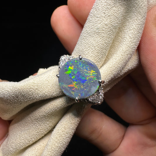 PT900 Platinum Black Opal Ring with 0.39ct Diamonds | Natural Black Opal Vintage Japanese Fine Jewelry