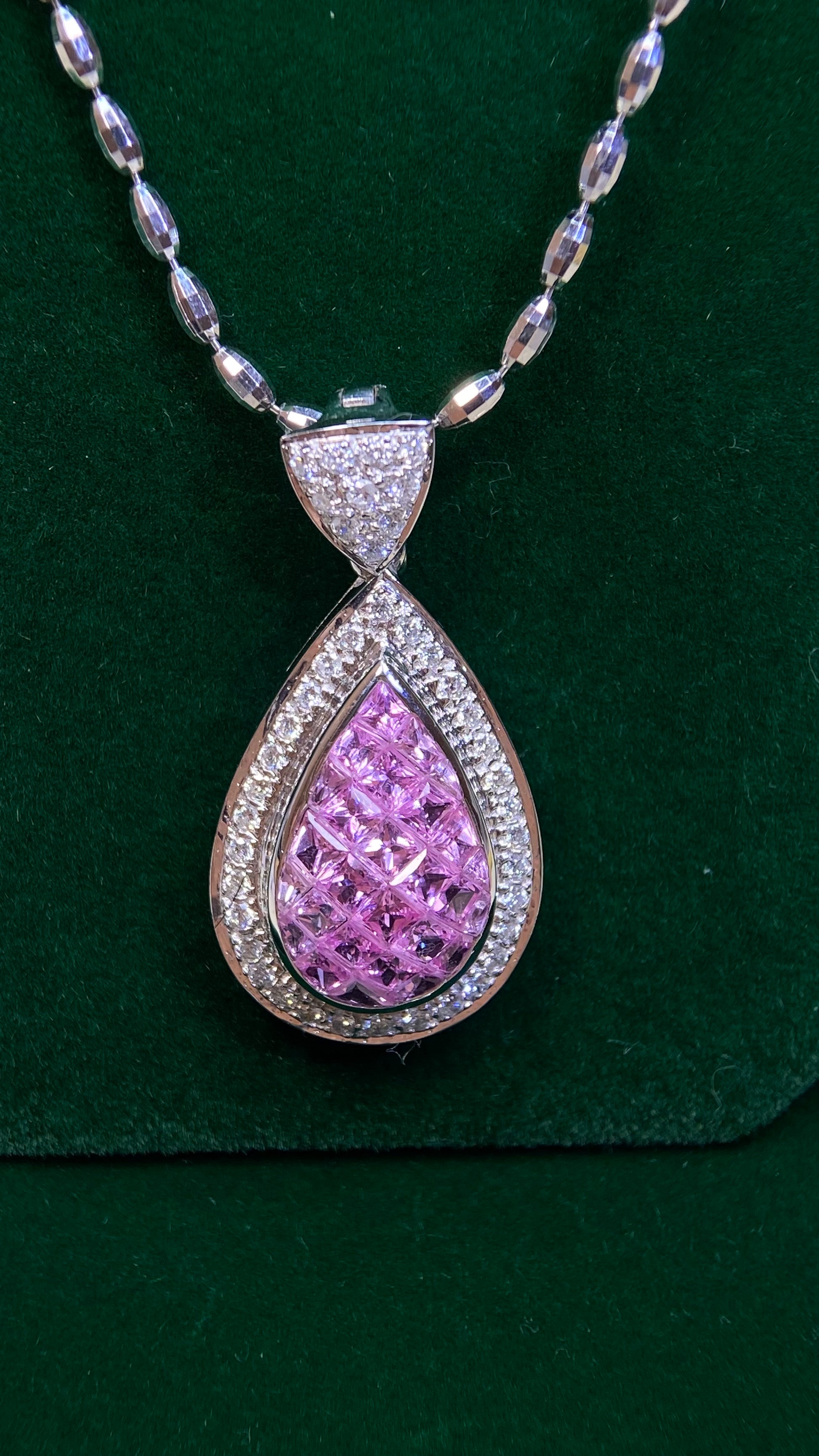 18K White Gold&Pink Sapphire&Diamond Necklace(Detachable) | Pink Sapphire:5.90ct|Diamonds:0.71ct | Japanese Vintage Estate Jewelry -BSAY2761