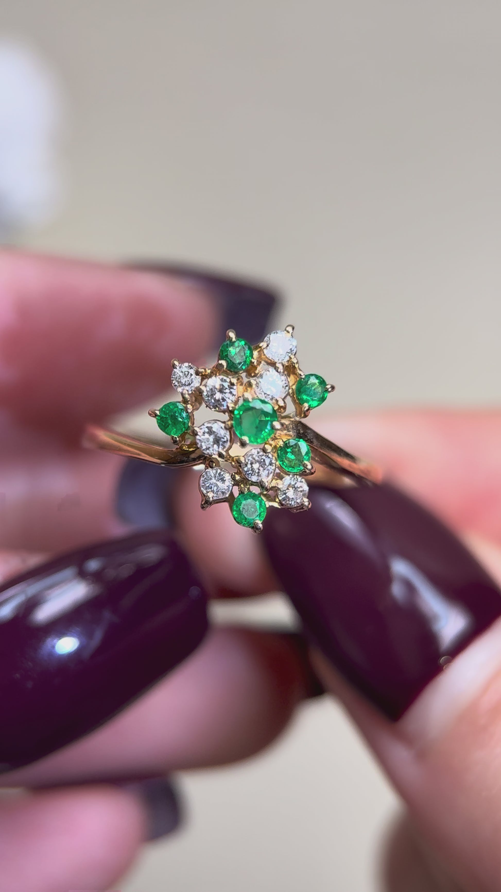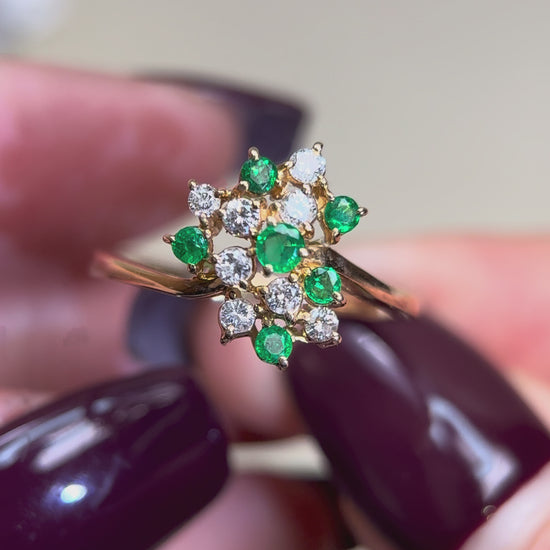 K18ゴールド&エメラルド&ダイヤモンドリング|エメラルド0.24ct、ダイヤモンド0.23ct|日本製ヴィンテージエステートジュエリー-BEPZ