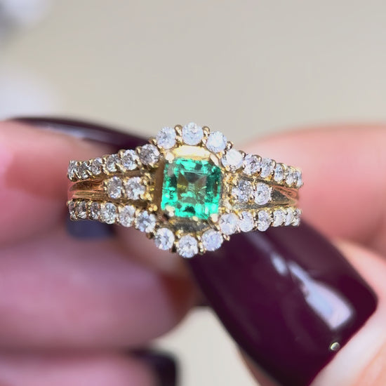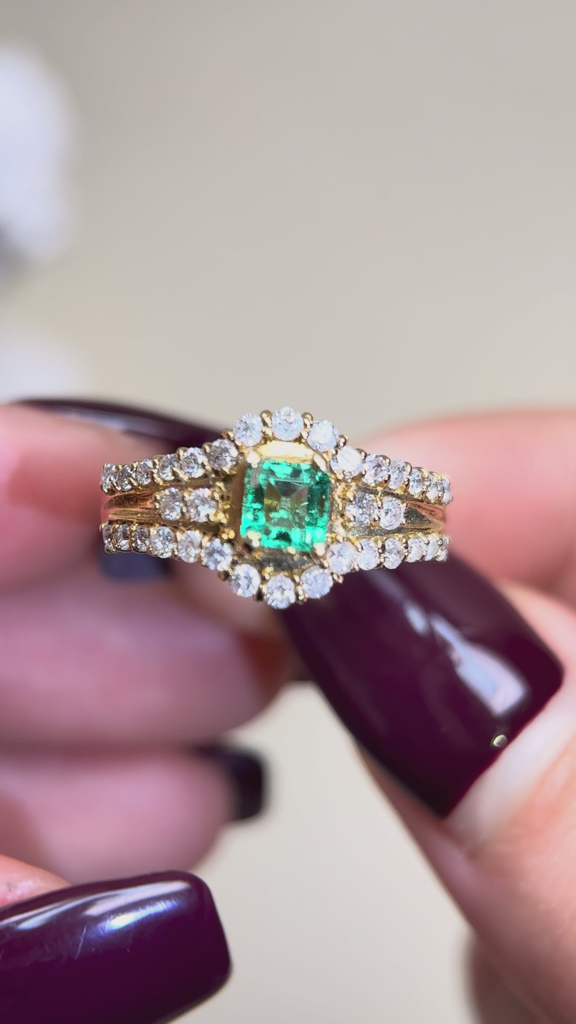 K18ゴールド&エメラルドダイヤモンドリング|エメラルド0.54ct、ダイヤモンド0.45ct|日本製ヴィンテージエステートジュエリー-BCKV