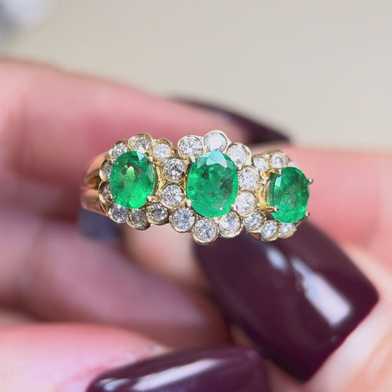 K18ゴールド&エメラルドダイヤモンドリング|エメラルド1.00ct、ダイヤモンド0.452ct|日本製ヴィンテージエステートジュエリー-BDVG