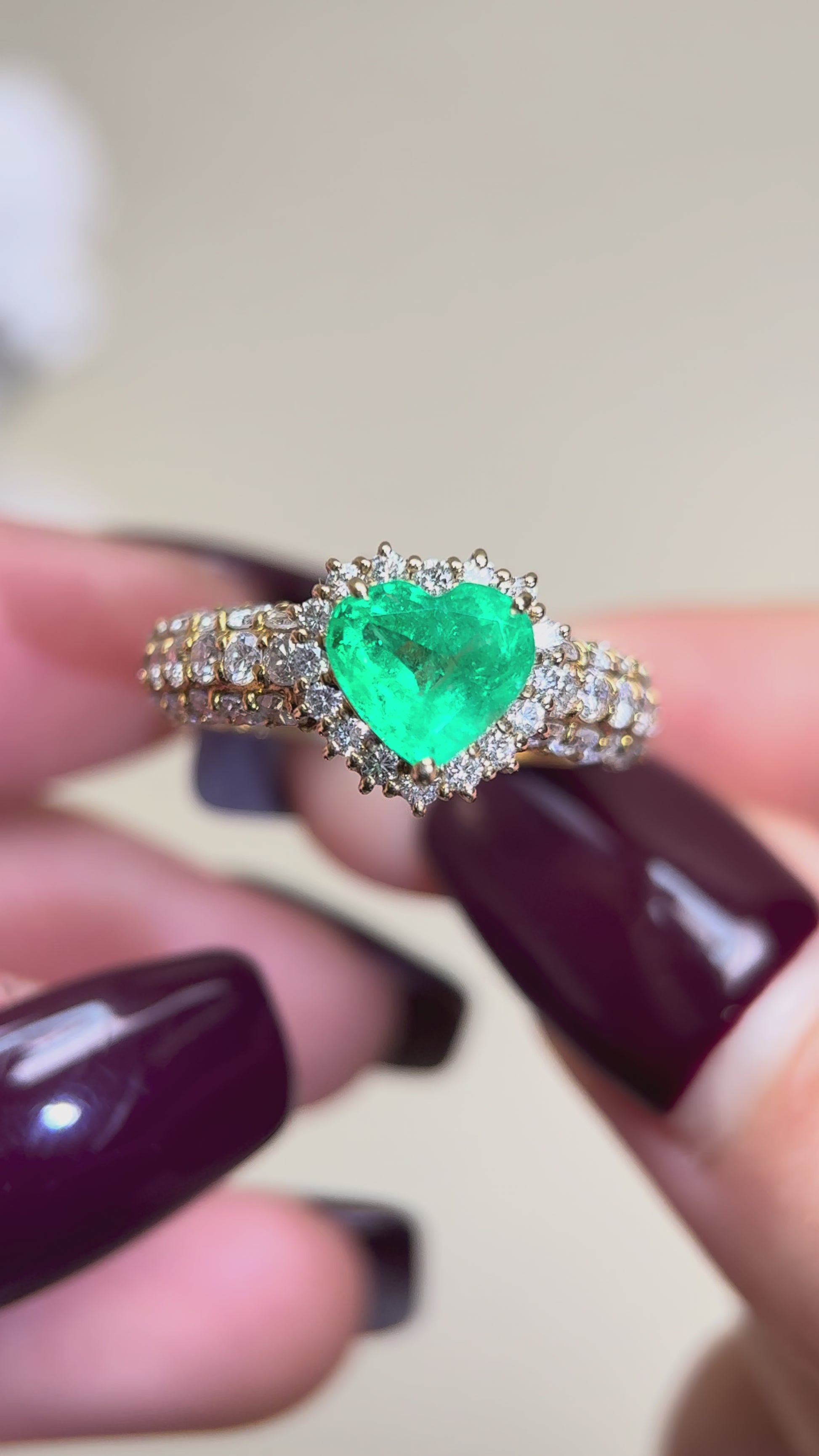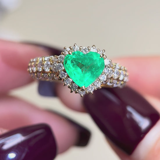 K18ゴールド&エメラルドダイヤモンドリング|エメラルド1.44ct、ダイヤモンド0.80ct|日本製ヴィンテージエステートジュエリー-BPEG