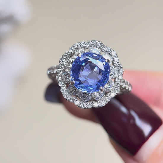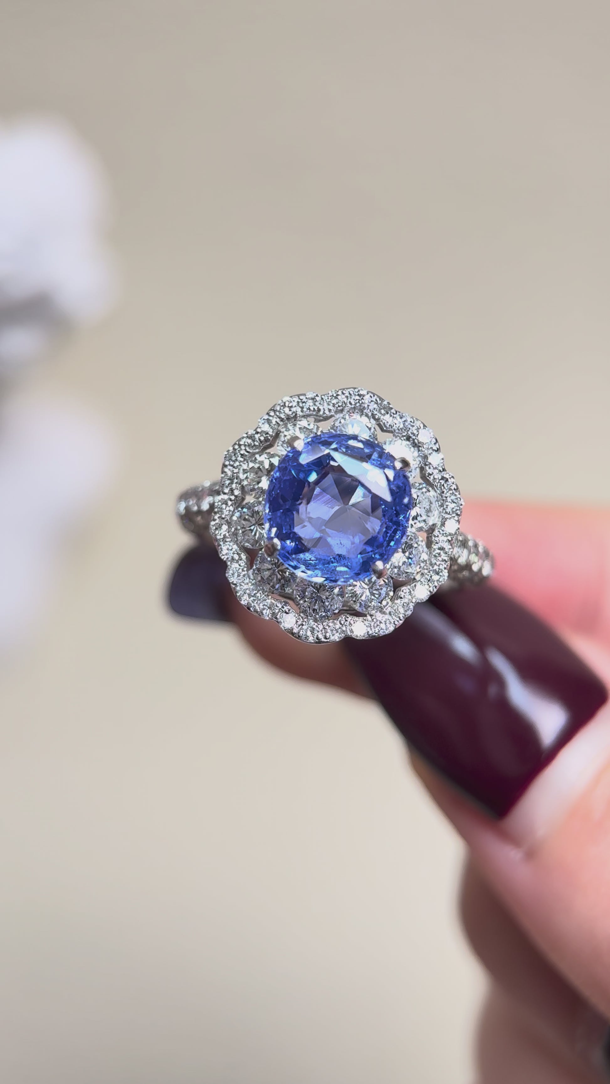 Pt900プラチナ&サファイア&ダイヤモンドリング|サファイア3.431ct|ダイヤモンド1.45ct|NH|日本製ヴィンテージエステートジュエリー-BPJJ
