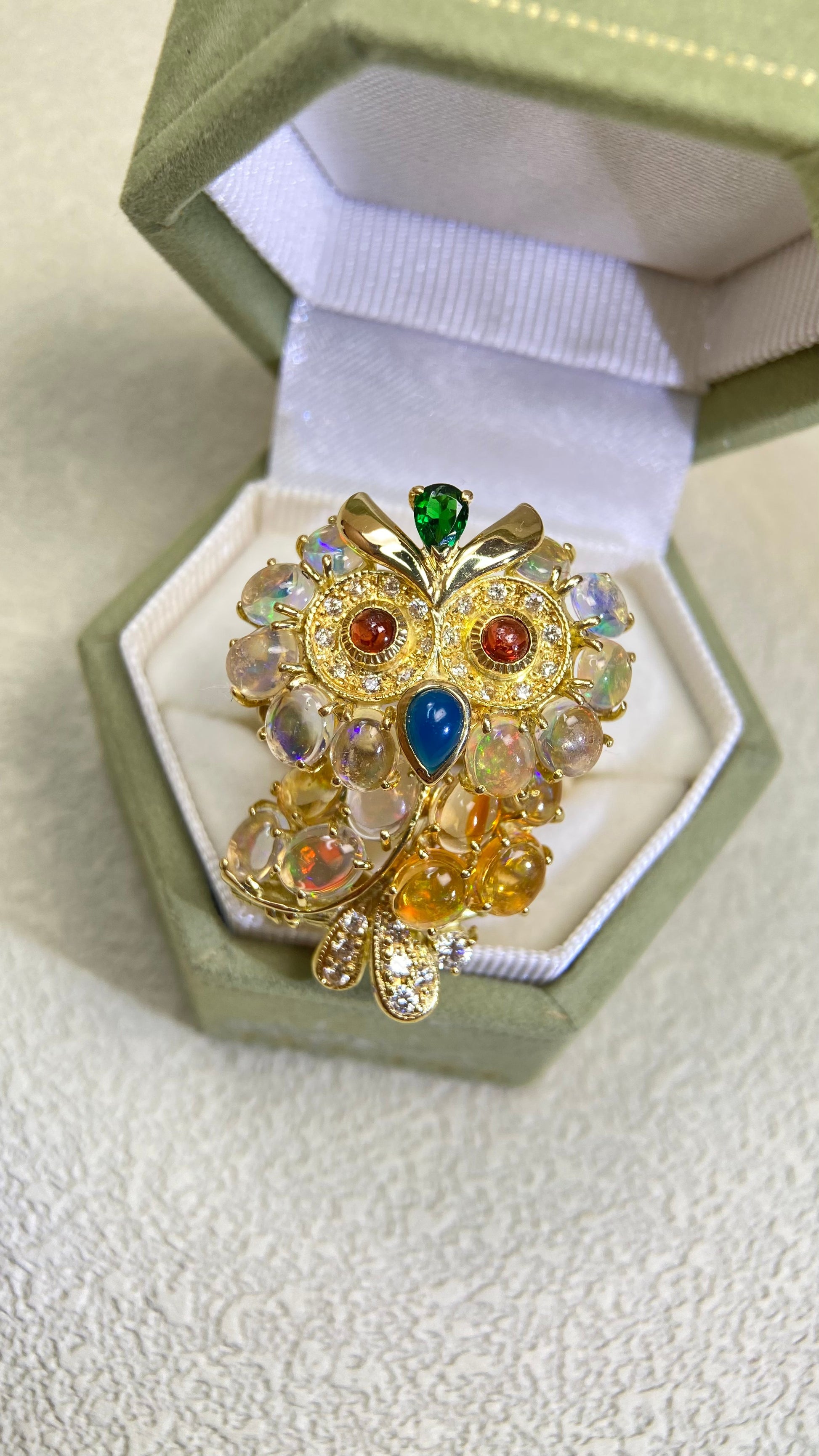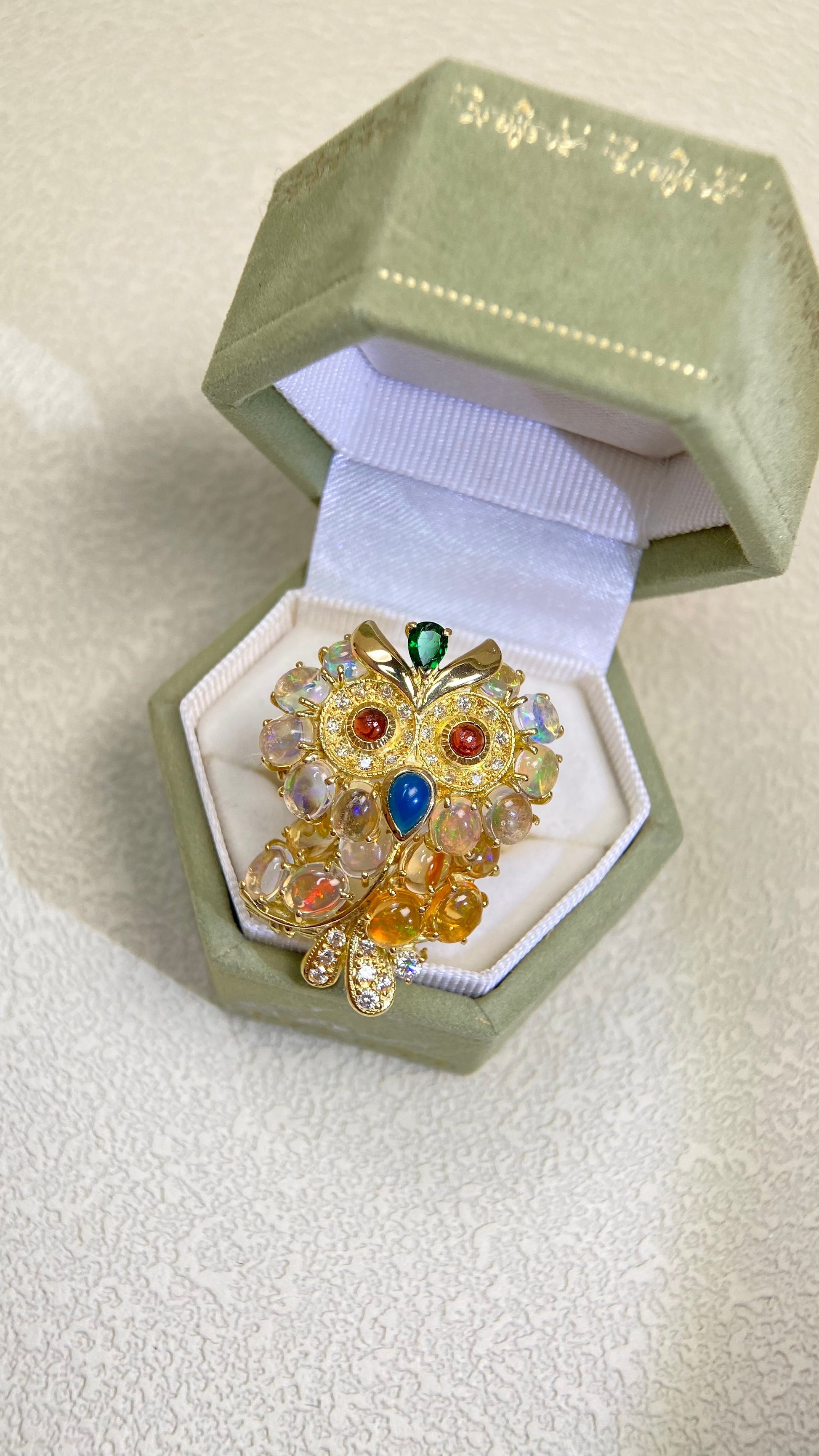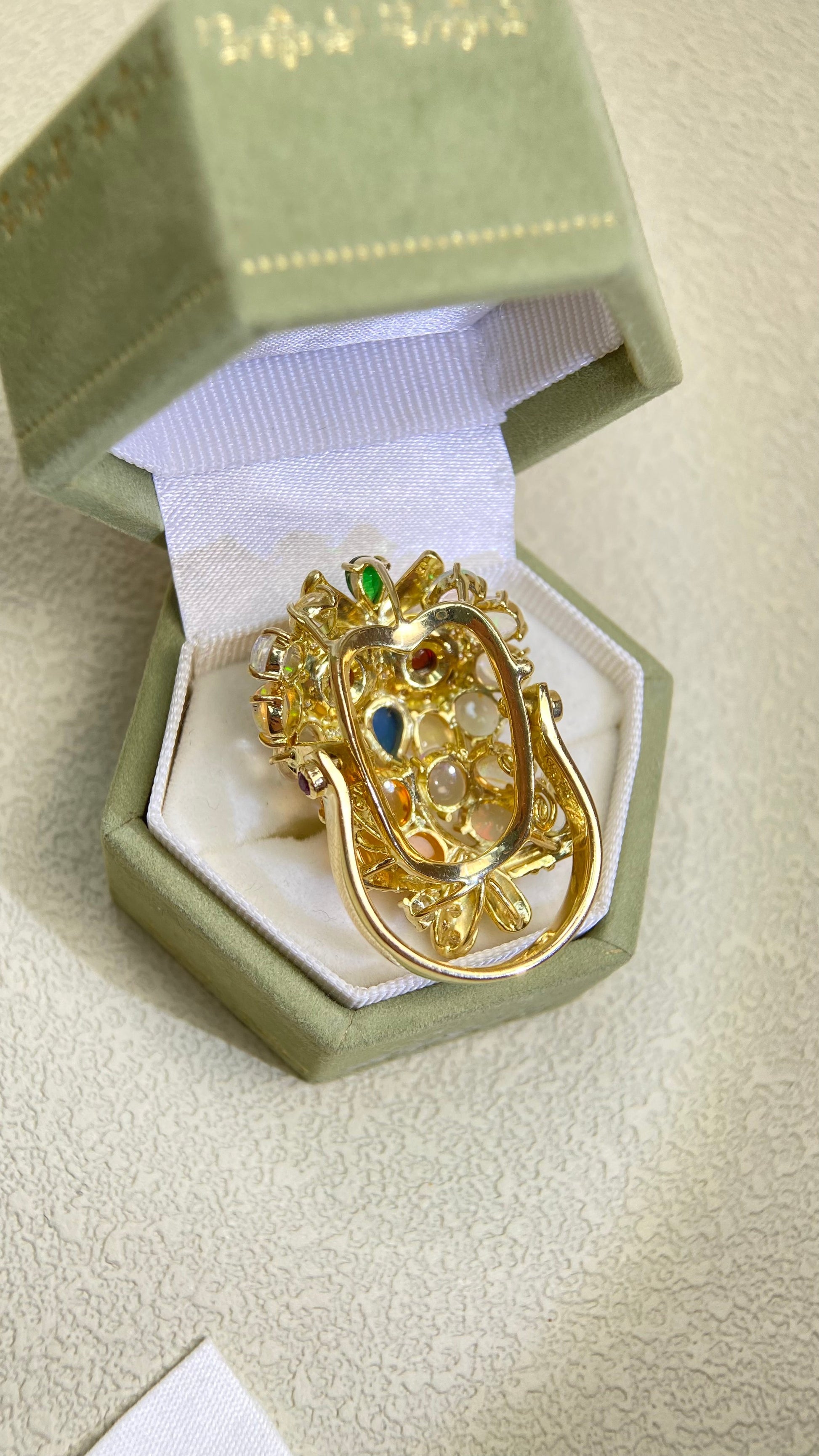 K18ゴールド&オパール&マルチストーンリング|オパール4.72カラット|日本製ヴィンテージエステートジュエリー-BQMI