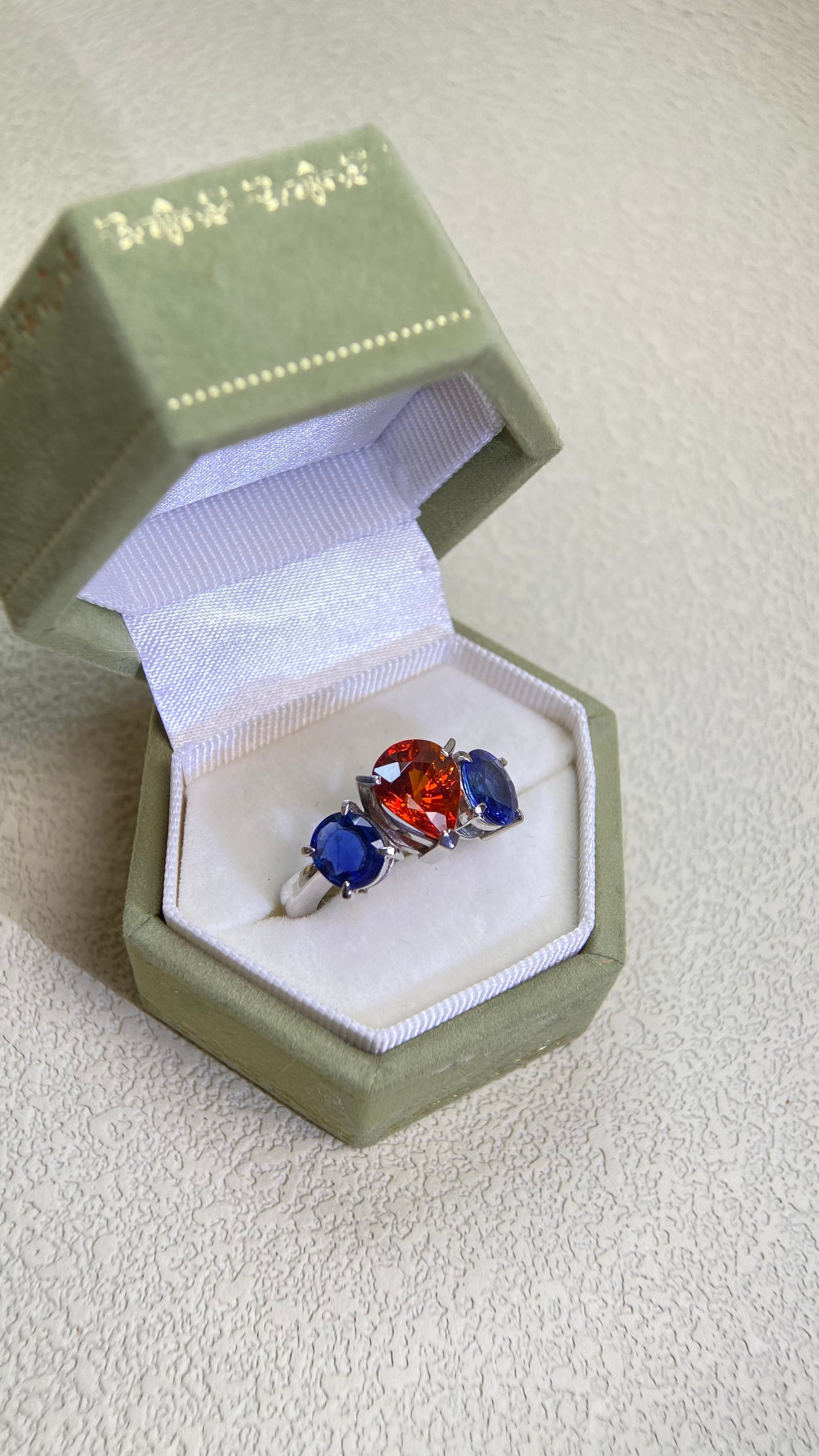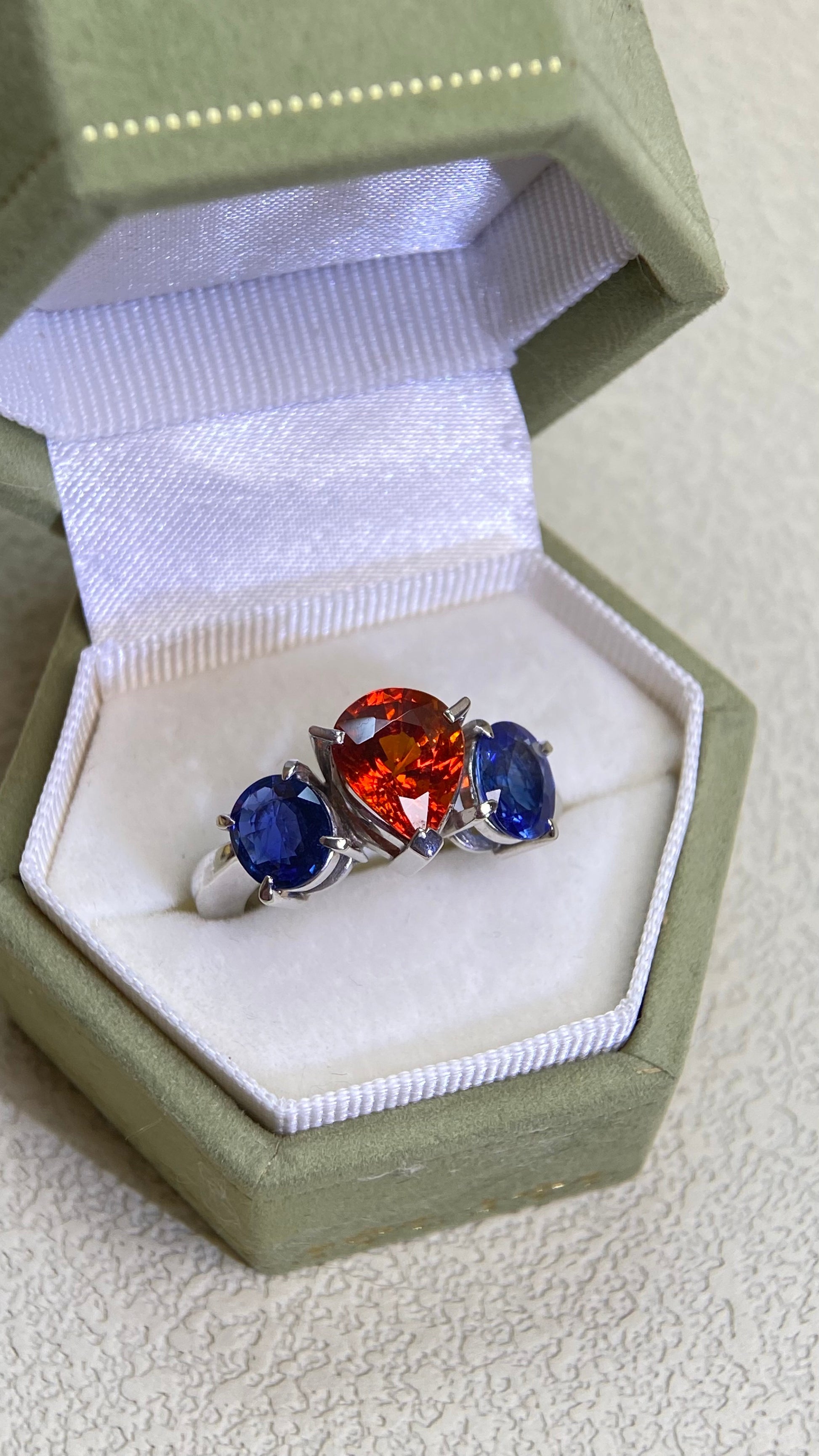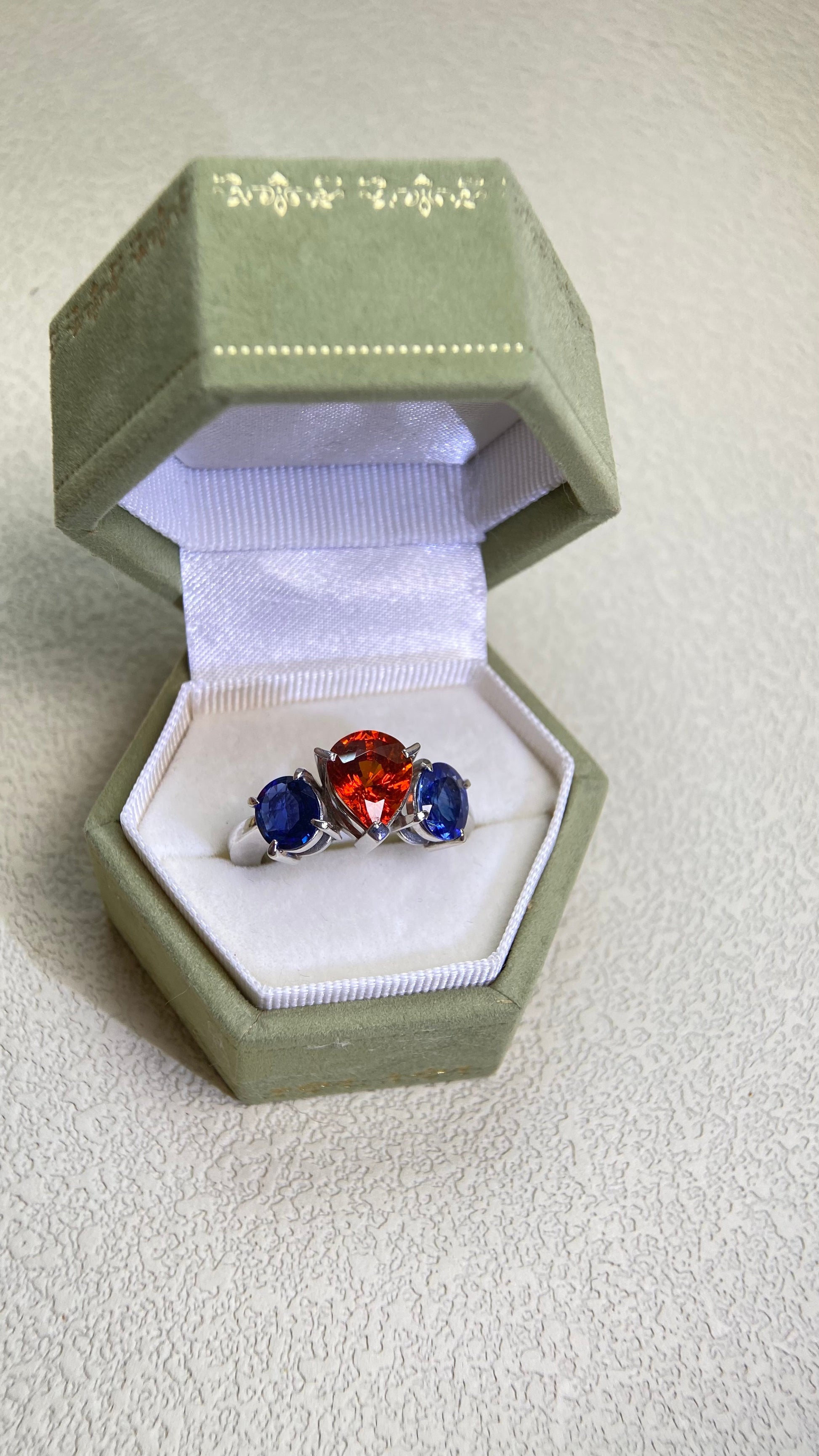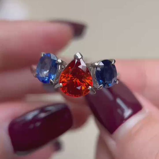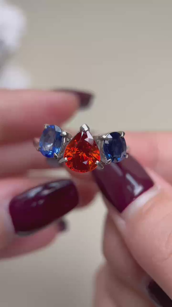 Pt900プラチナ&スペサルティンガーネット&サファイアリング|ガーネット2.96カラット|サファイア1.94カラット|日本製ヴィンテージエステートジュエリー-BJPD