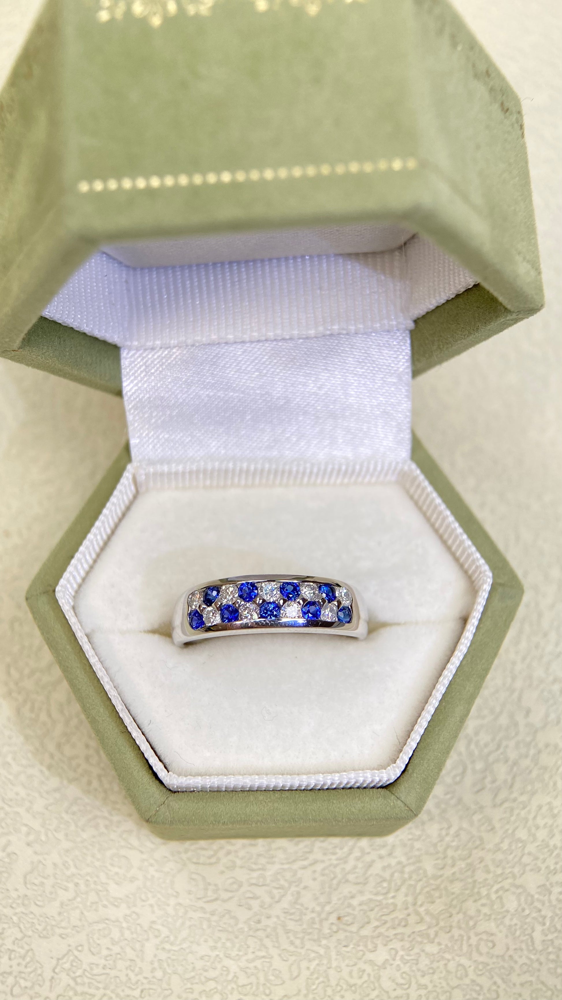 K18 White Gold&sapphire&Diamond Ring| sapphires:0.31ct|Diamonds:0.24ct | Japanese Vintage Estate Jewelry -BSIH3038
