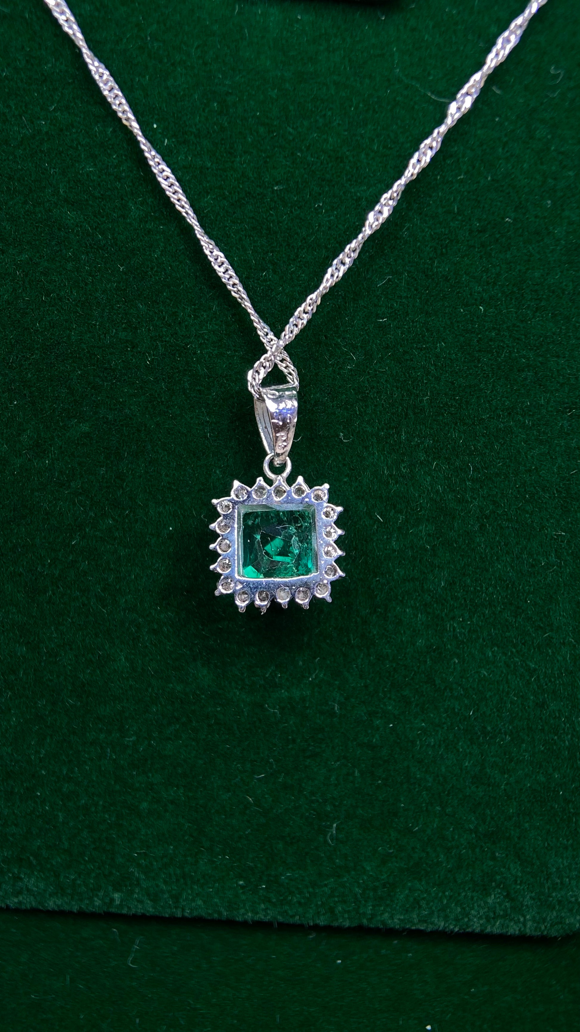 Pt platinum/Pt850 platinum&Emerald&Diamond Necklace| Emerald: 1.22ct|Diamonds:0.17ct|Japanese Vintage Estate Jewelry -BFDV