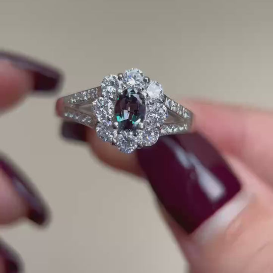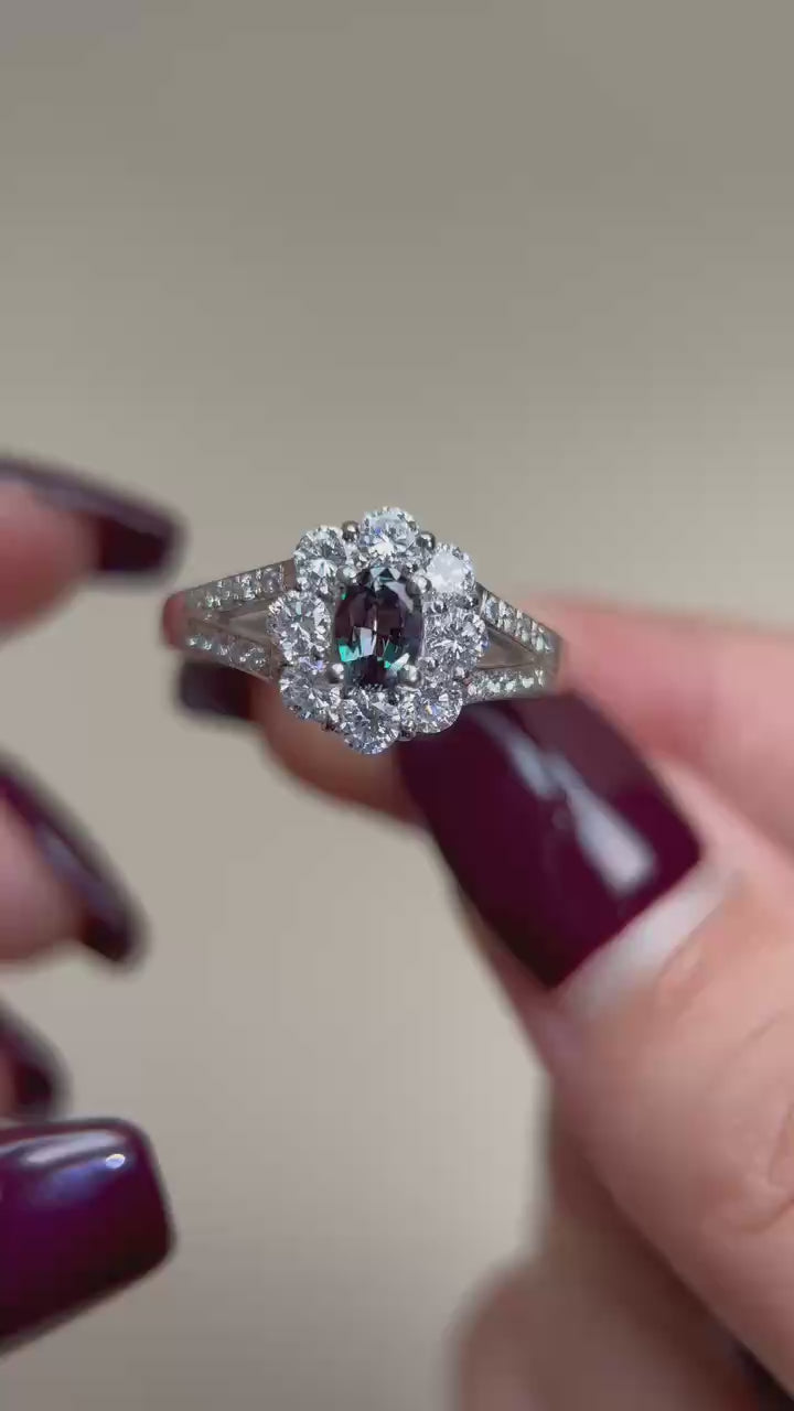Pt900プラチナ&アレキサンドライト&ダイヤモンドリング|アレキサンドライト0.43ct、ダイヤモンド0.80ct|カラーチェンジ|日本製ヴィンテージエステートジュエリー-BGAS