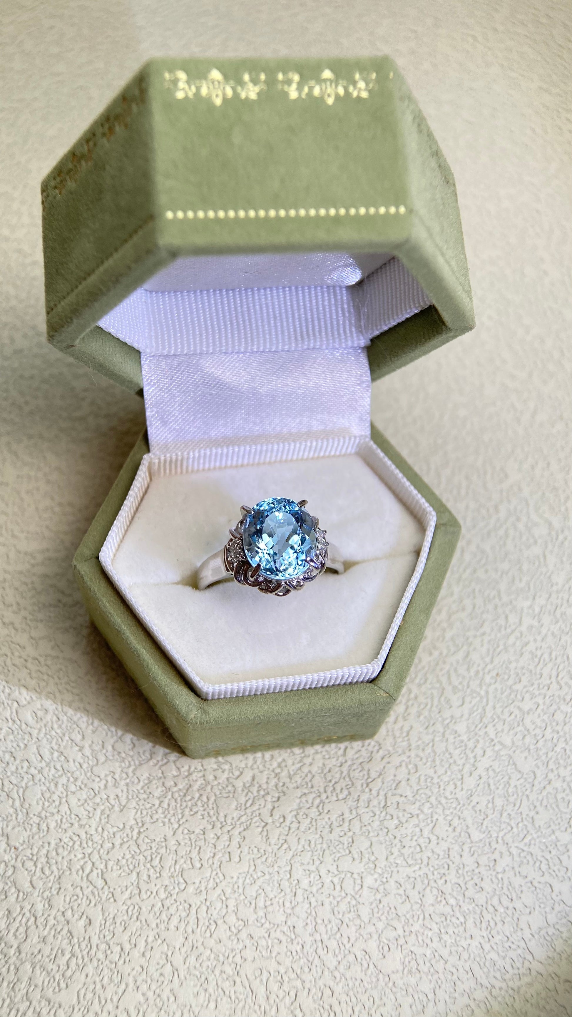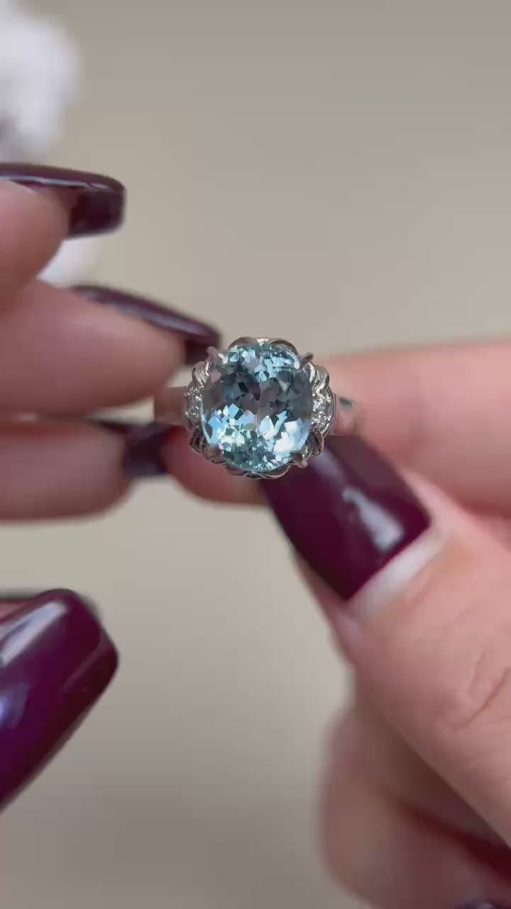 Pt900プラチナ&アクアマリン&ダイヤモンドリング|アクアマリン 3.36ct|ダイヤモンド 0.04ct|日本製ヴィンテージエステートジュエリー-BPIY