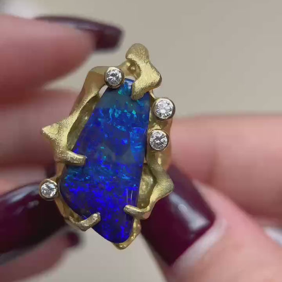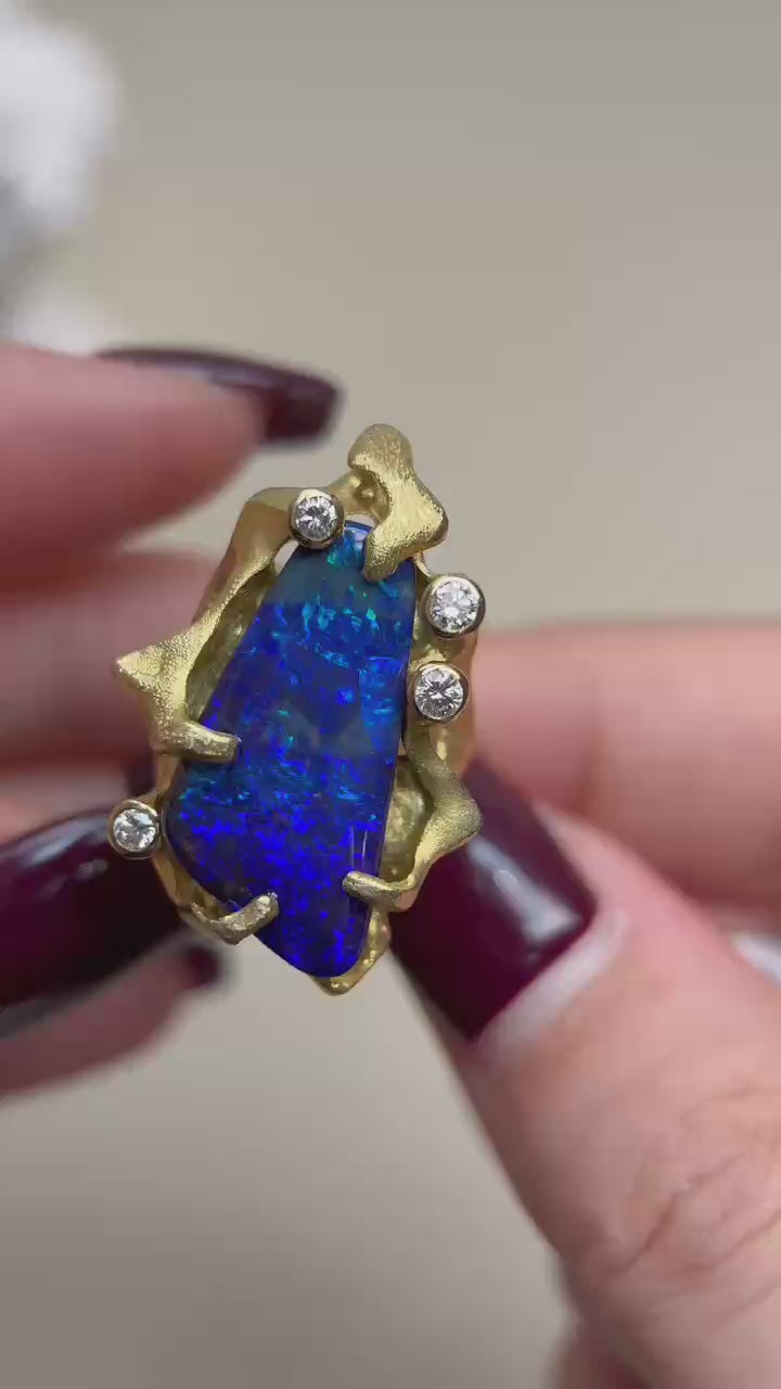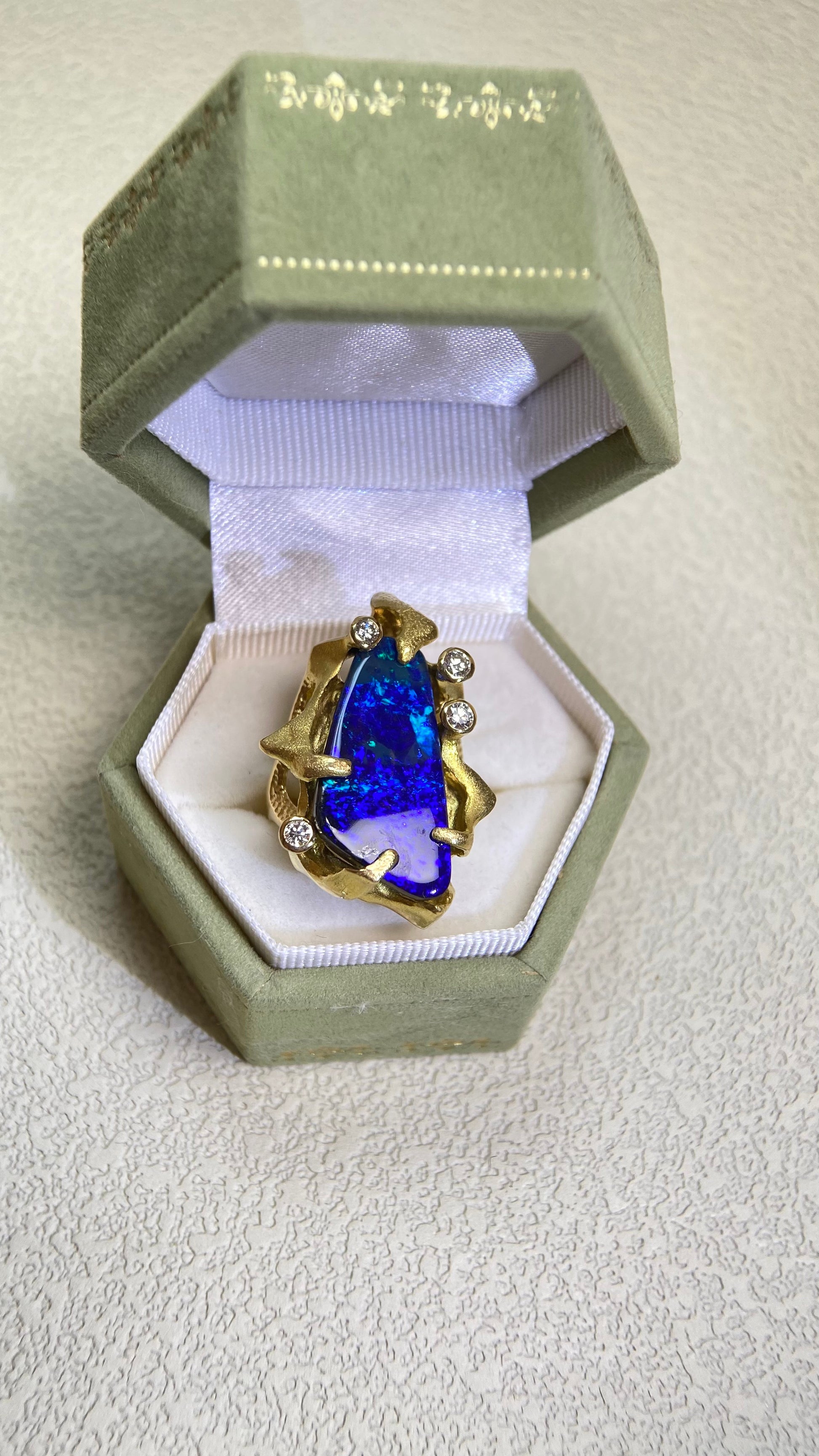 K18ゴールド&ボルダーオパール&ダイヤモンドリング|ボルダーオパール 10.05ct|ダイヤモンド 0.22ct|日本製ヴィンテージエステートジュエリー-BKUP