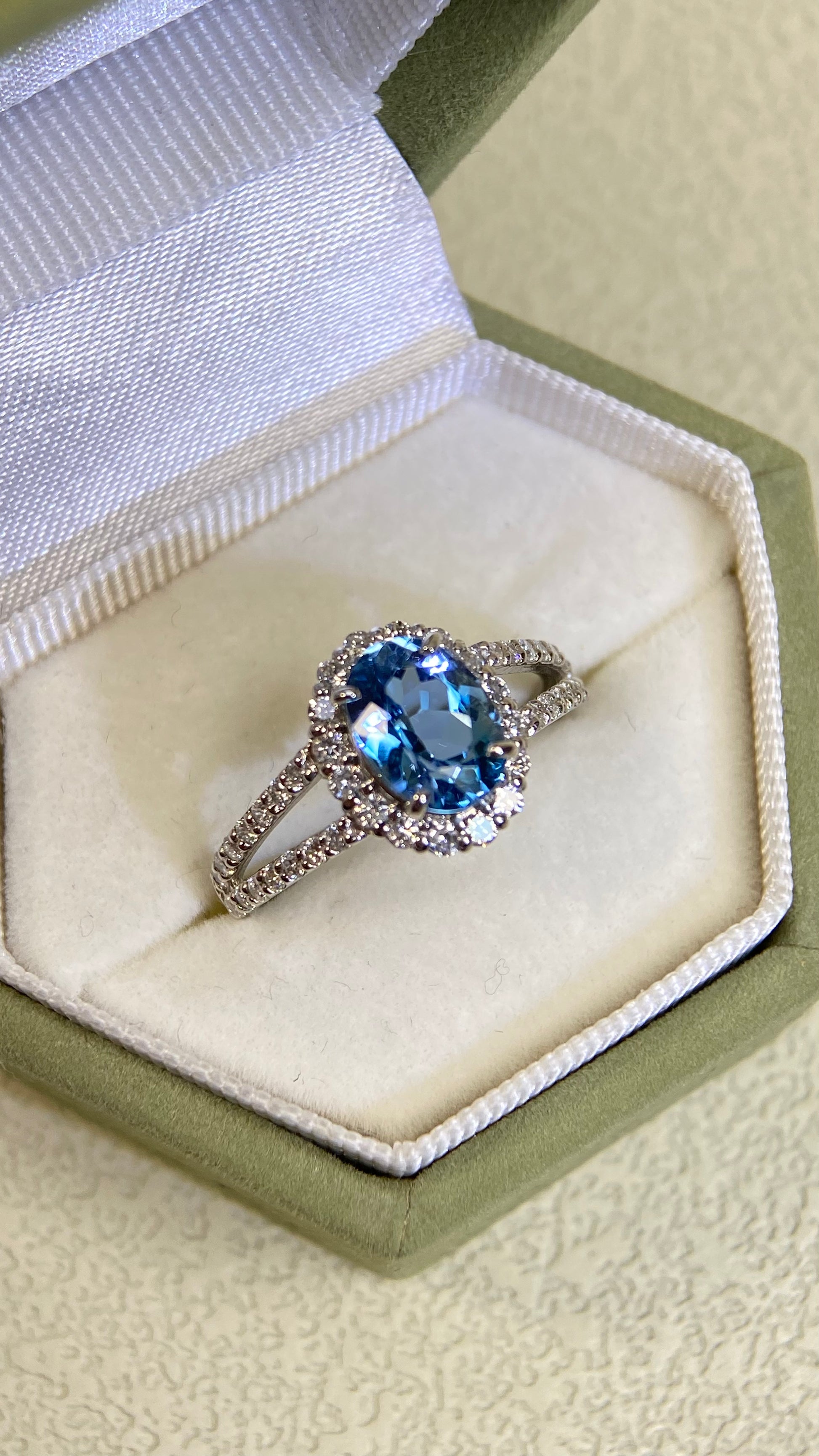 Pt900 Platinum&Aquamarine&Diamond Ring| Aquamarine:1.43ct Santa Maria | Diamonds:0.47ct | Japanese Vintage Estate Jewelry -BSKO3098