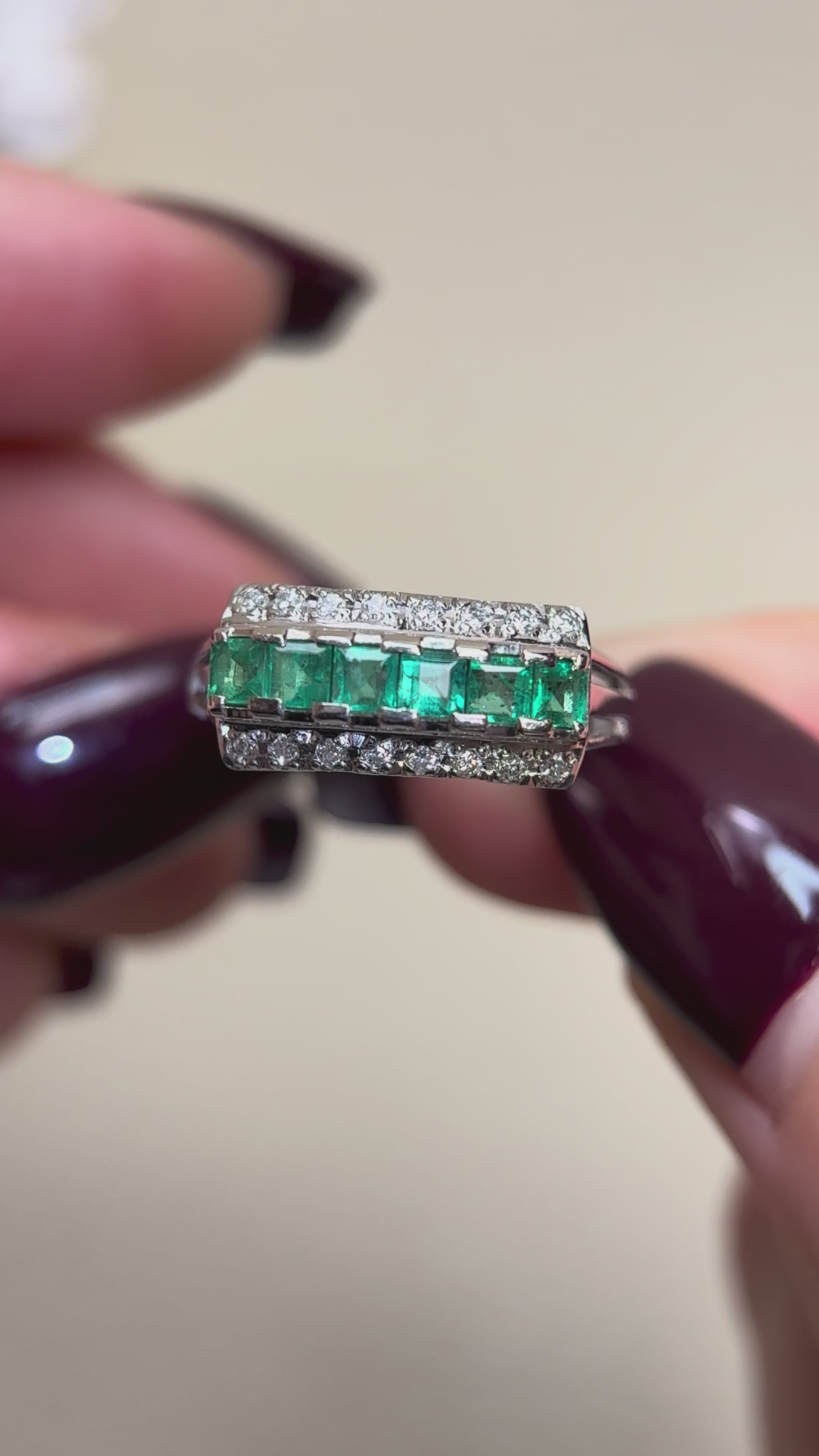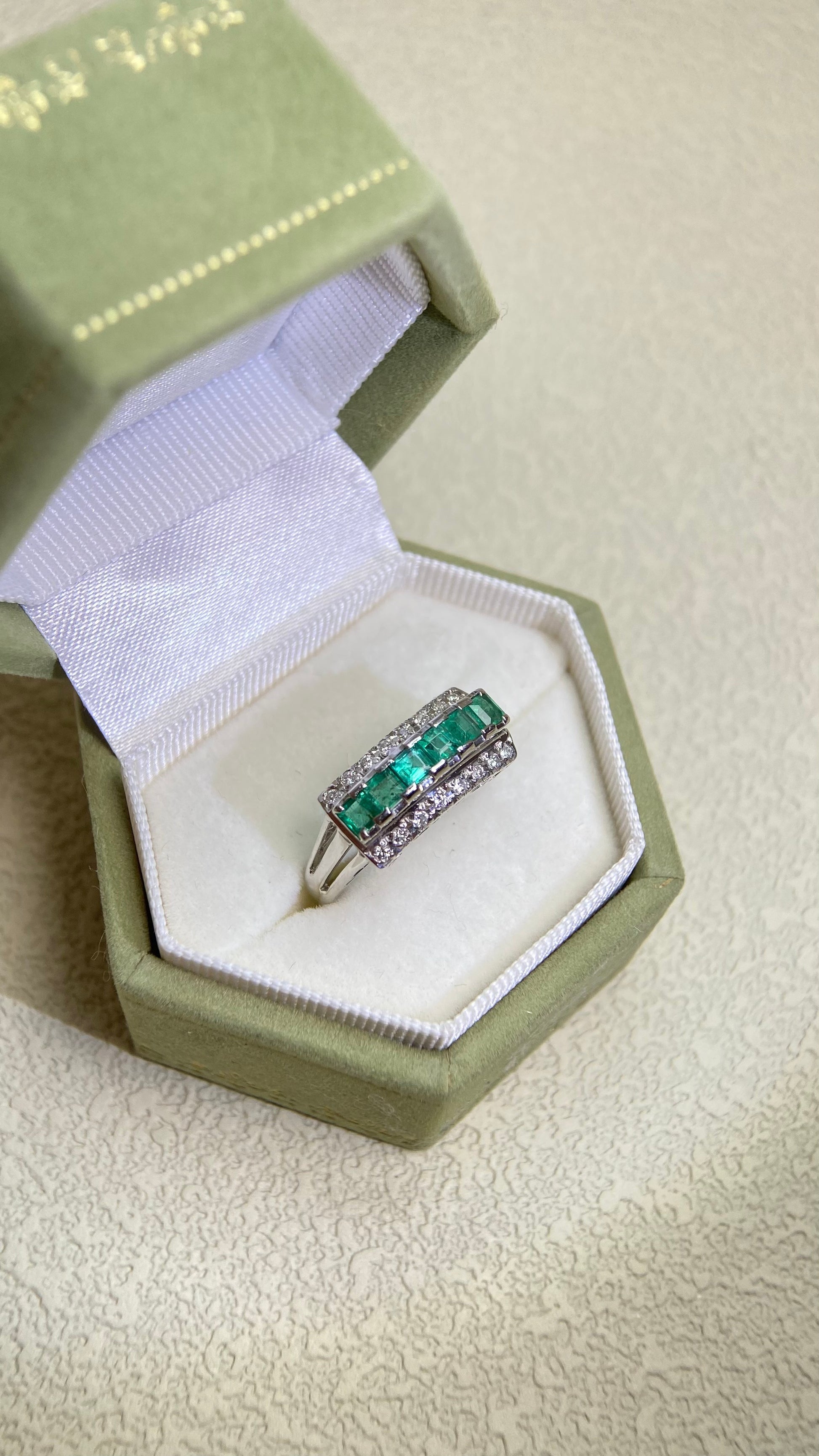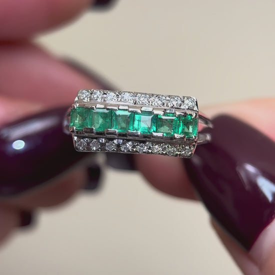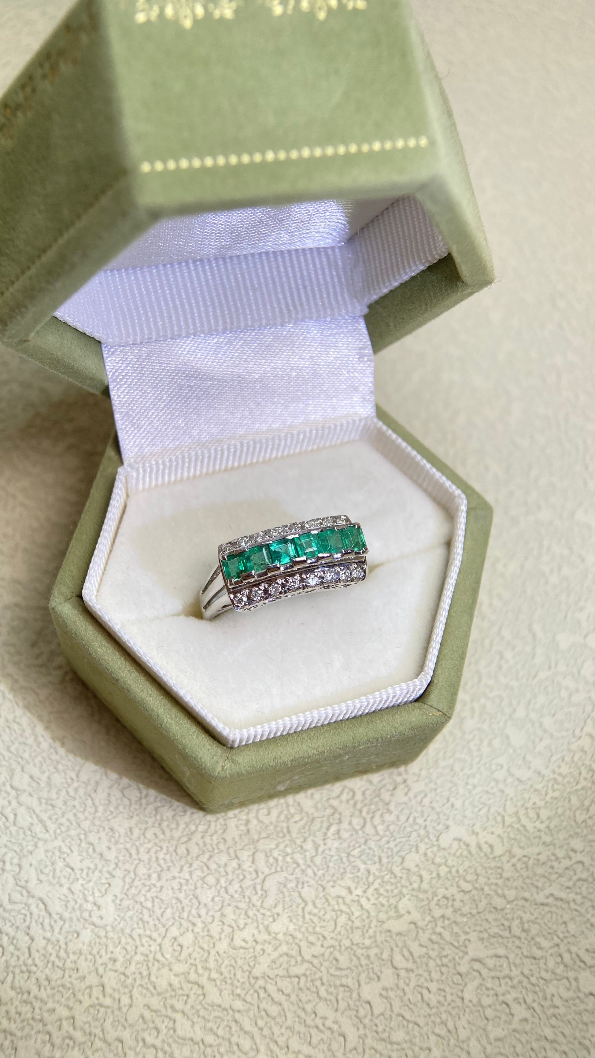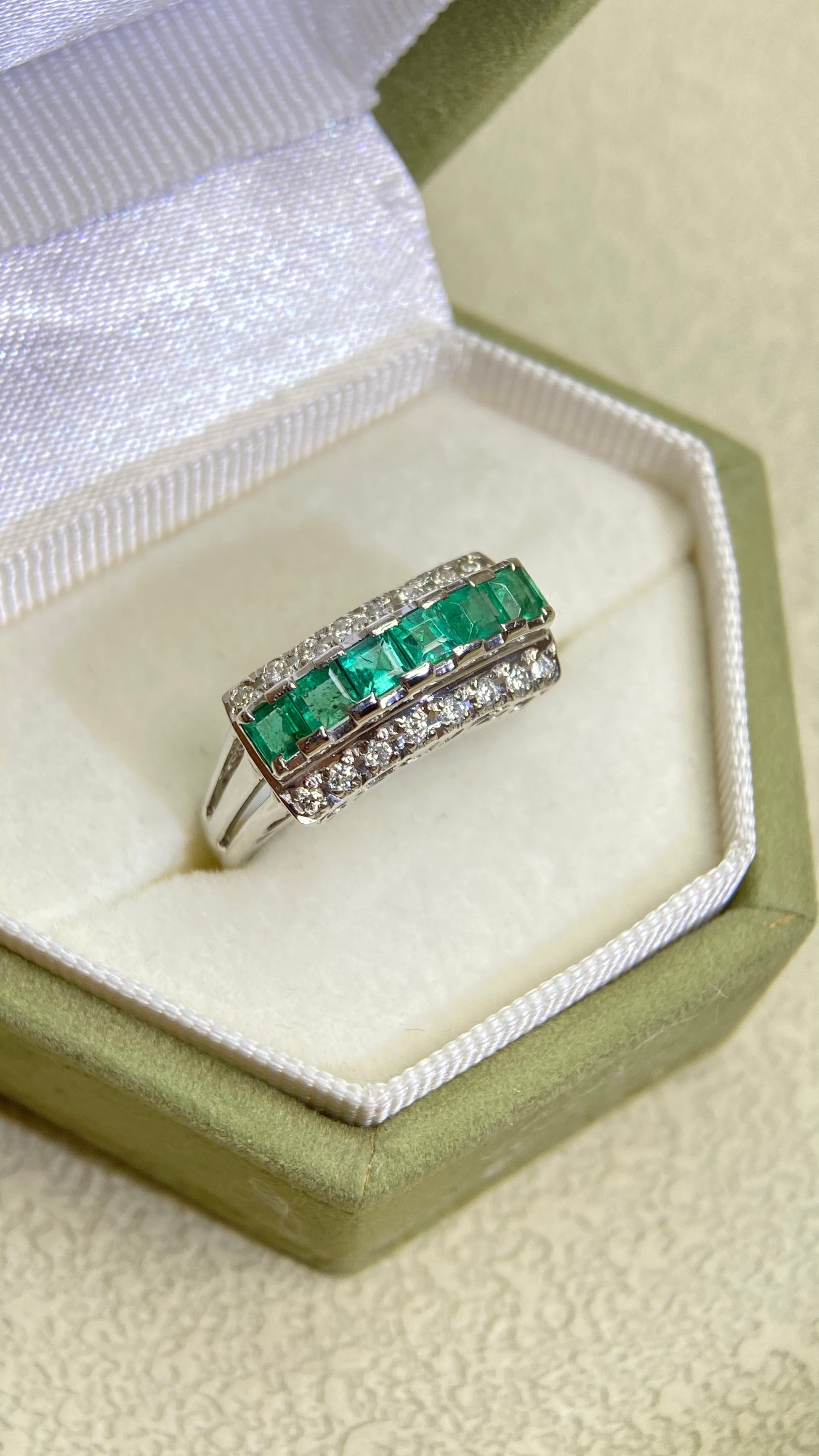 Pt900プラチナ&エメラルド&ダイヤモンドリング|エメラルド0.75カラット|ダイヤモンド0.16カラット|日本製ヴィンテージエステートジュエリー-BPNY
