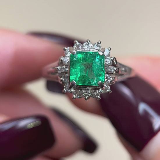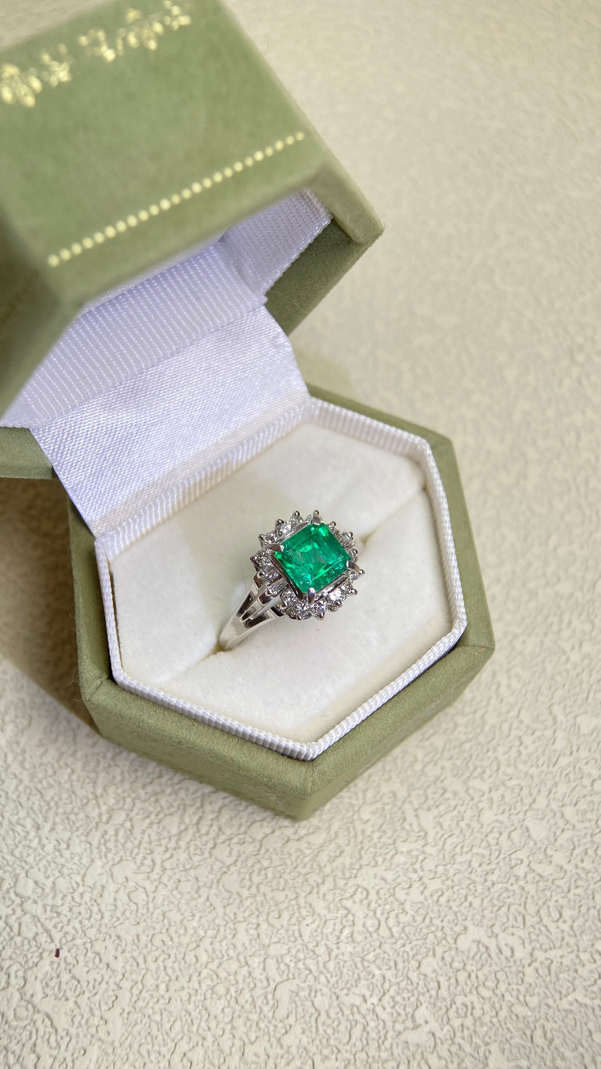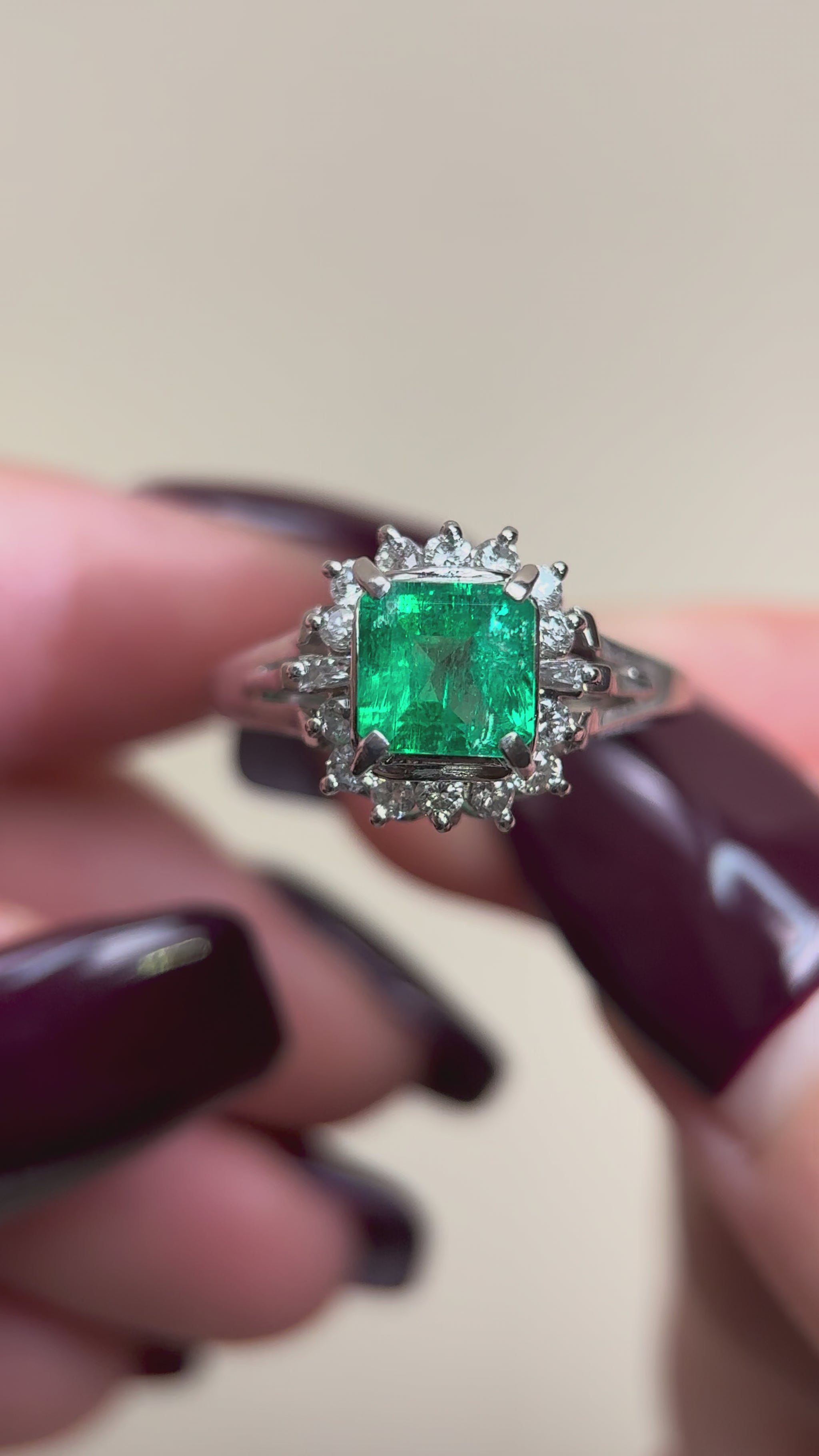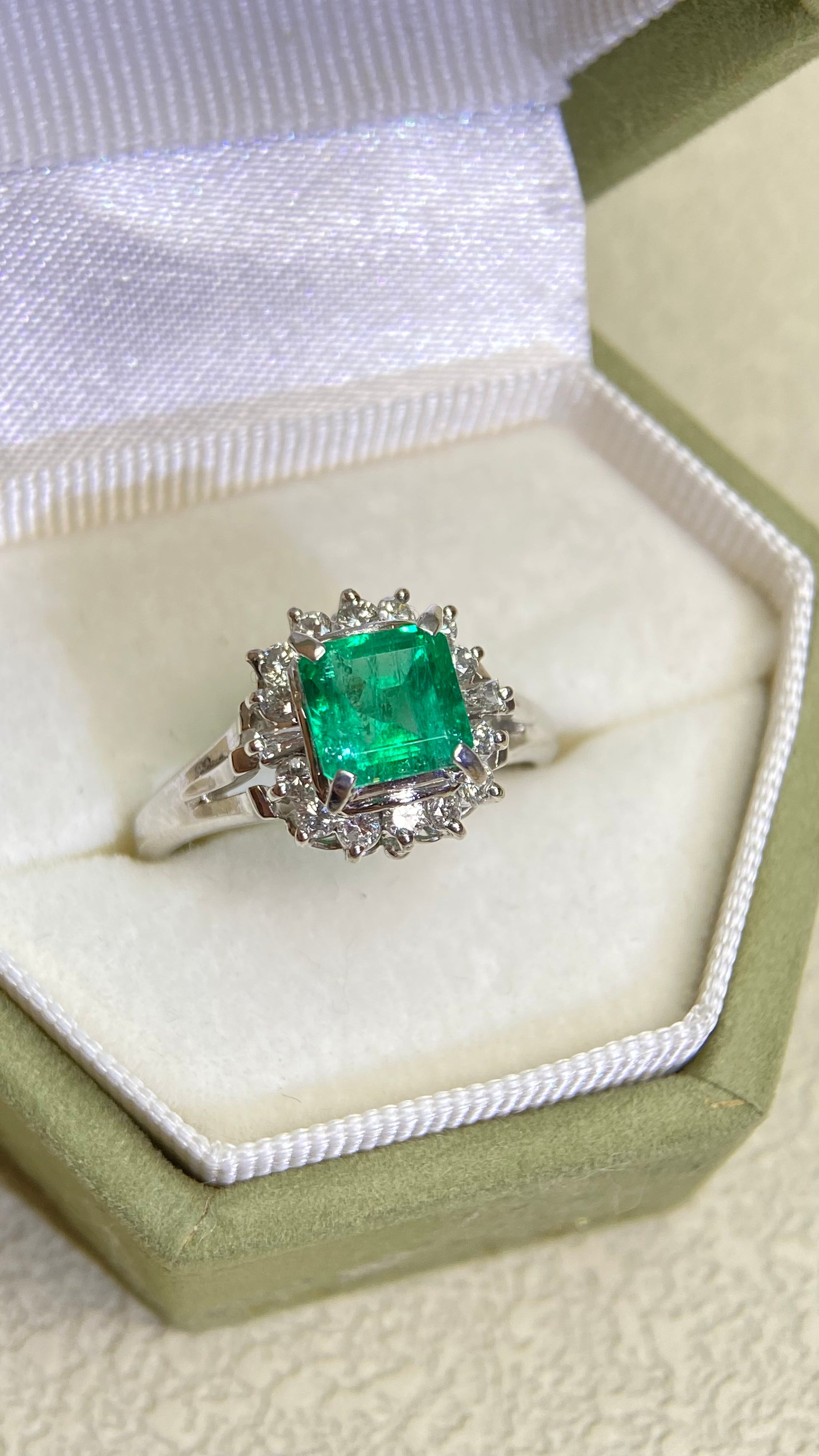 Pt900プラチナ&エメラルド&ダイヤモンドリング|エメラルド1.01カラット|ダイヤモンド0.34カラット|日本製ヴィンテージエステートジュエリー-BLYB