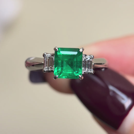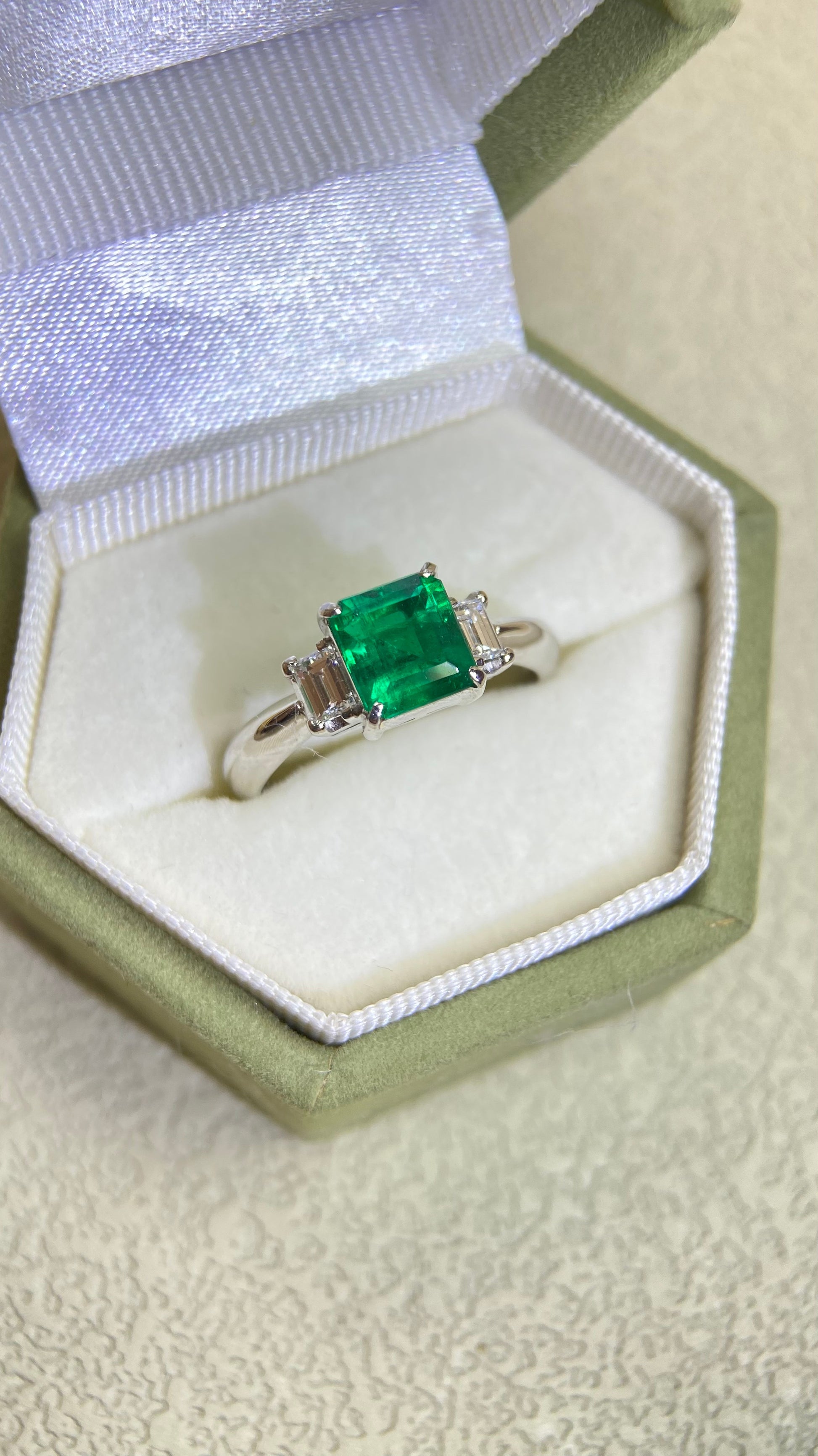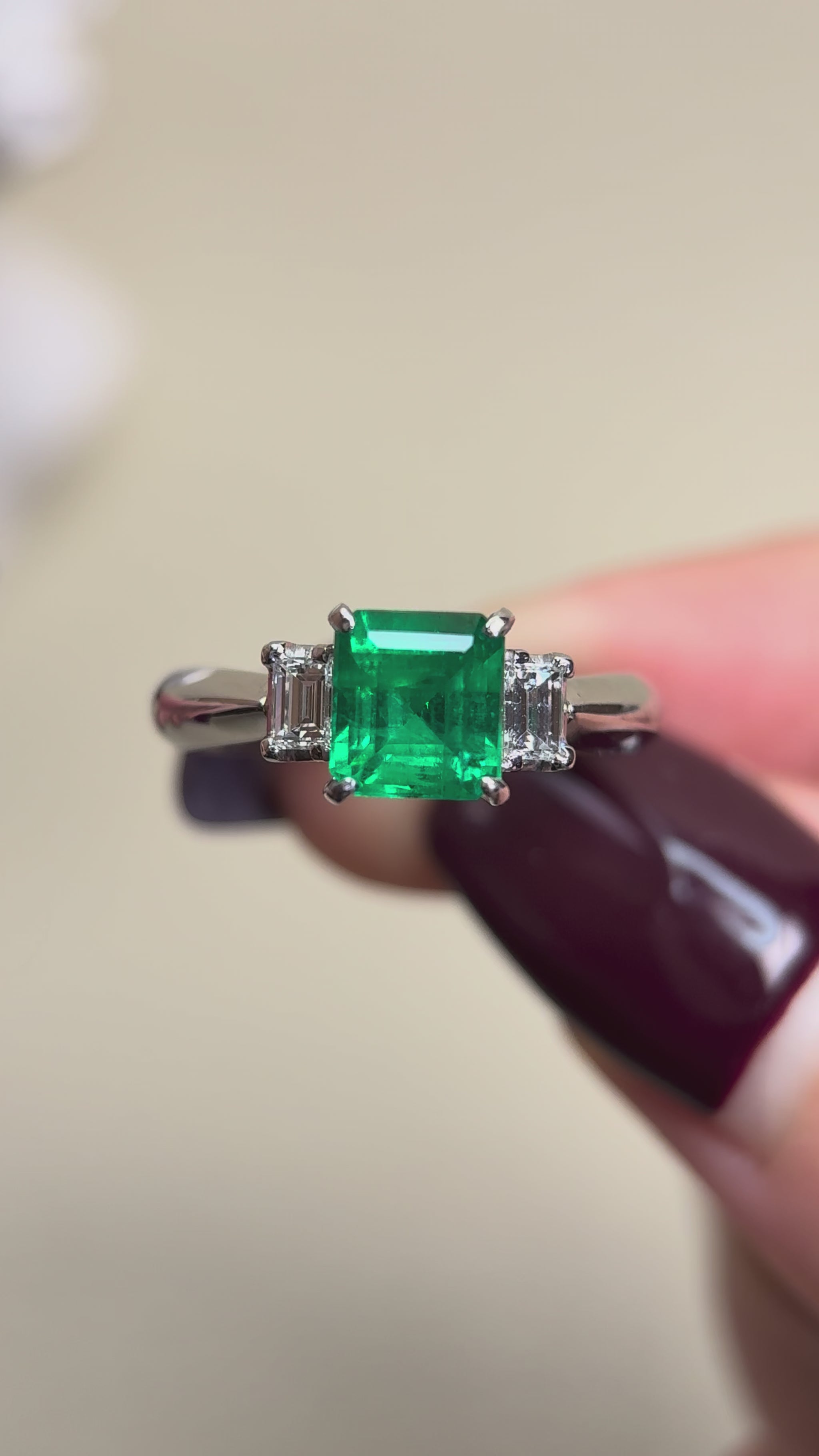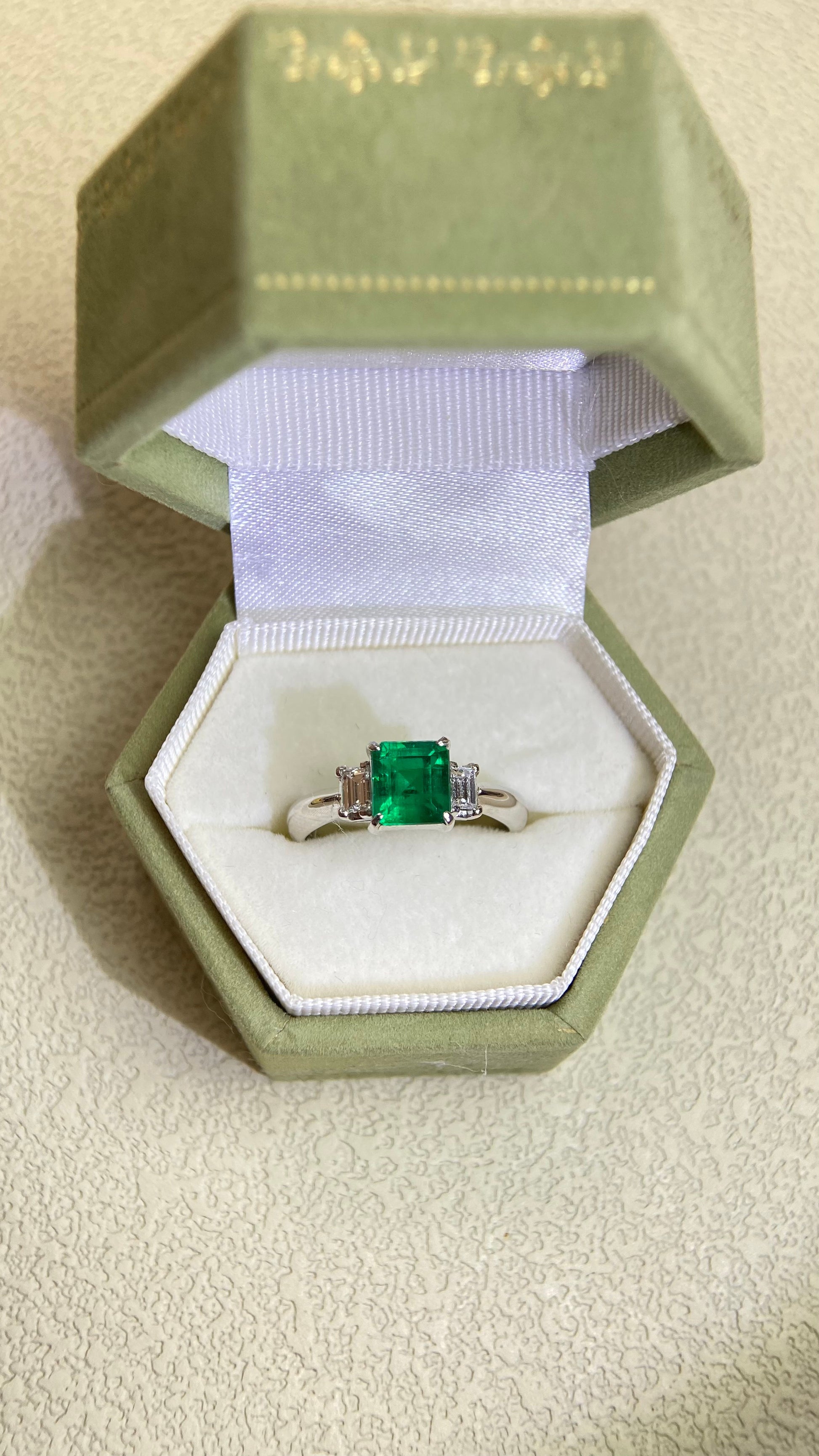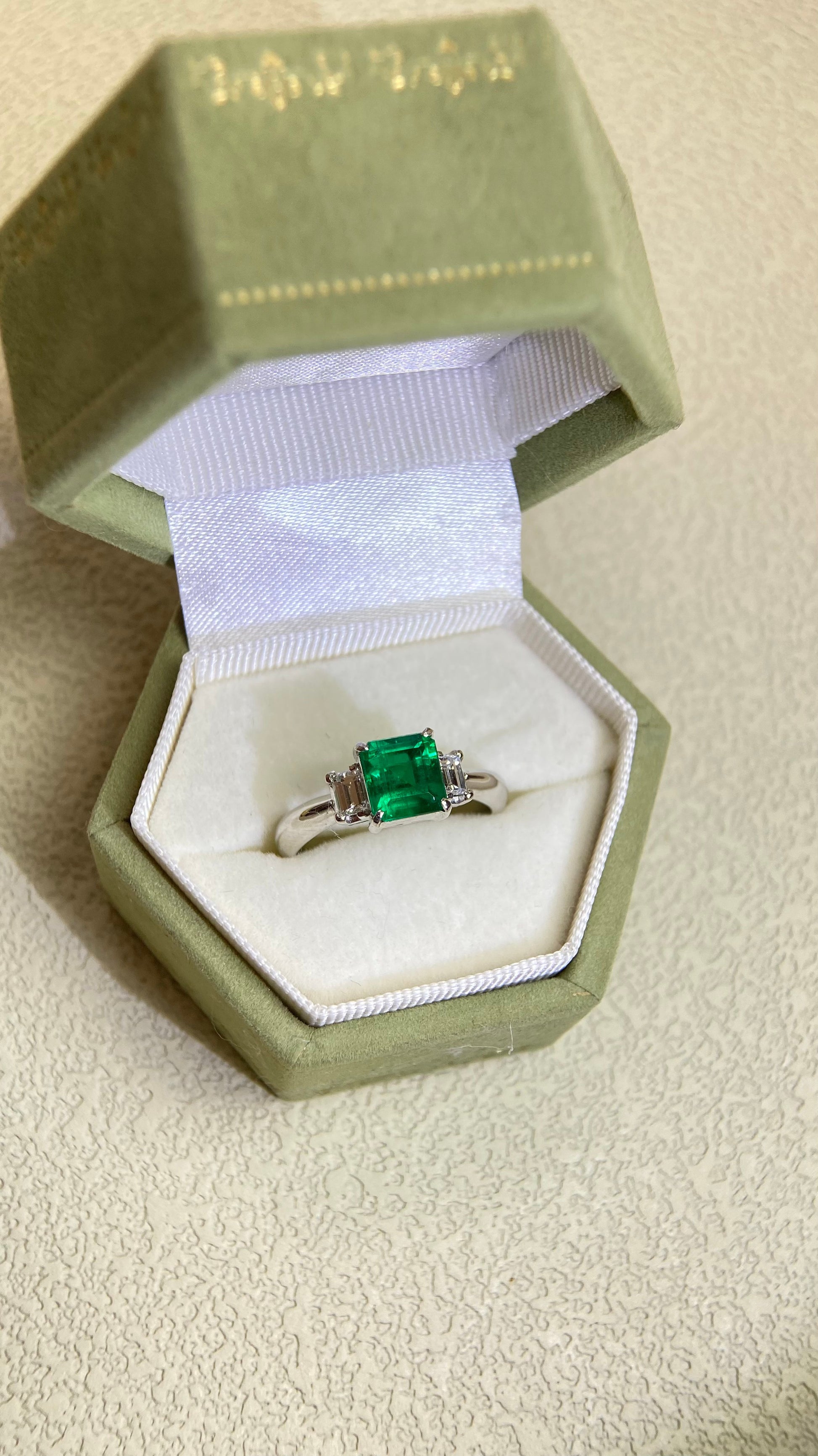 Pt900プラチナ&エメラルド&ダイヤモンドリング|エメラルド1.09カラット|ダイヤモンド0.27カラット|コロンビア産ビビッドグリーン|日本製ヴィンテージエステートジュエリー|BPZG