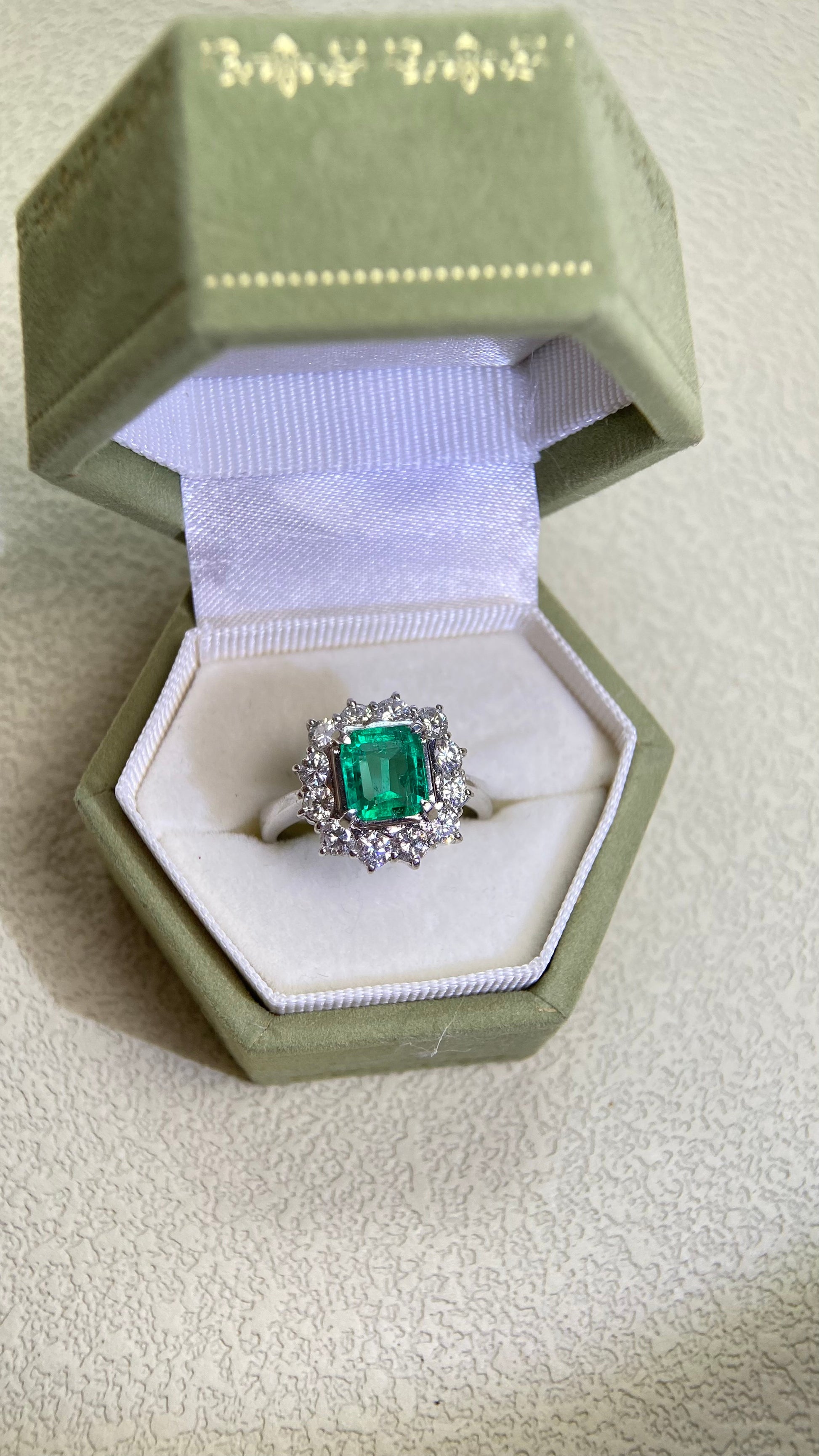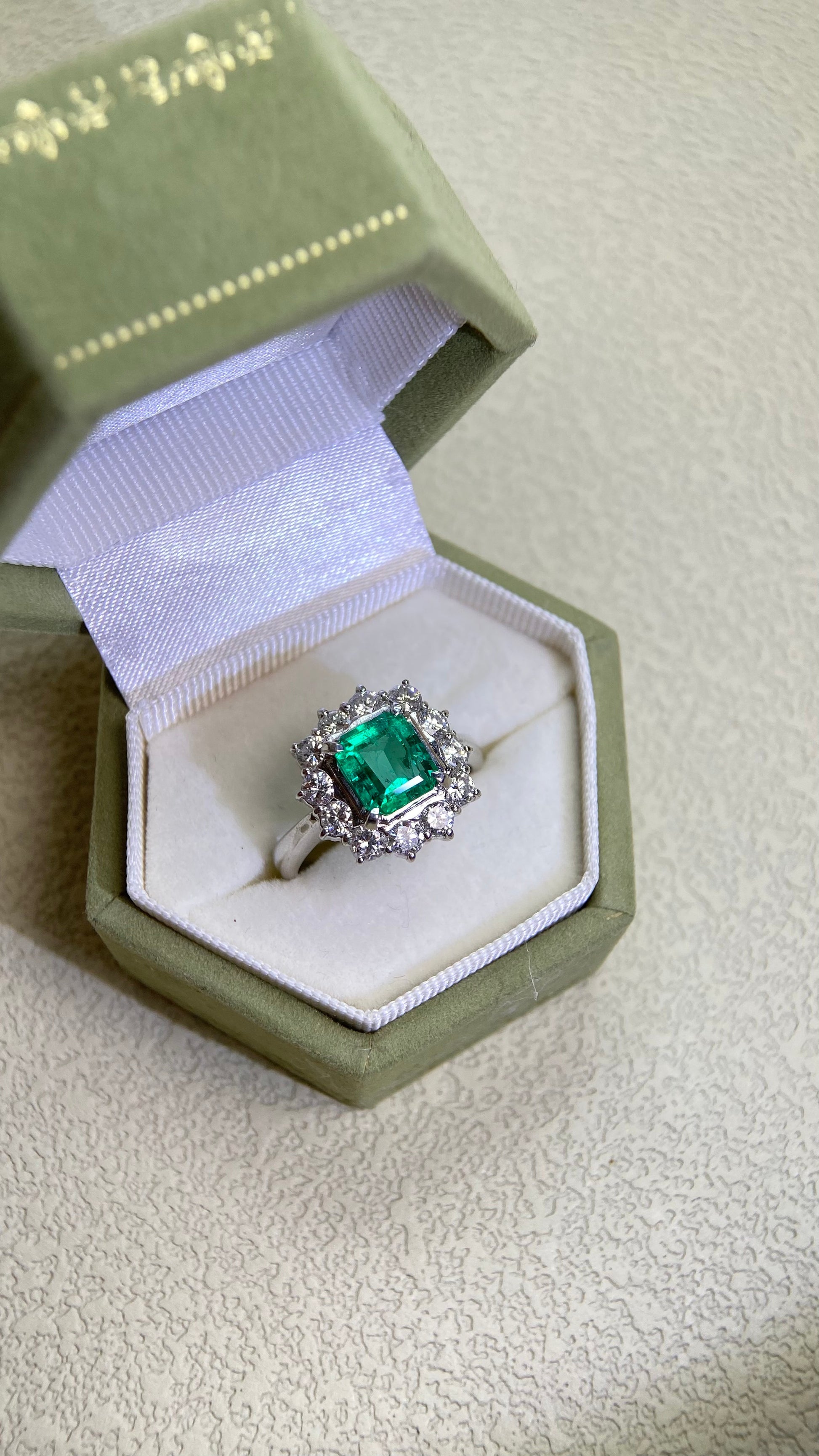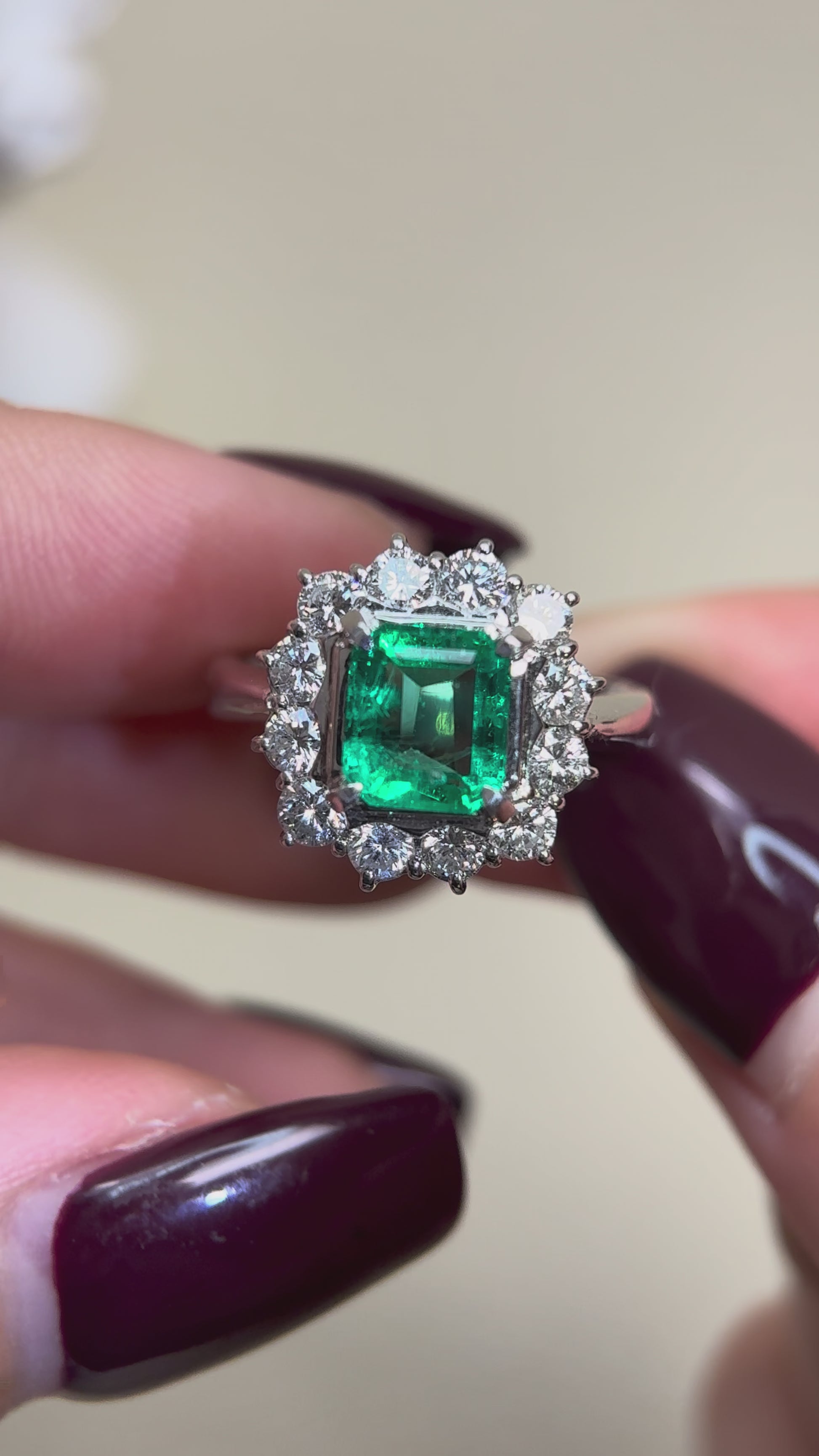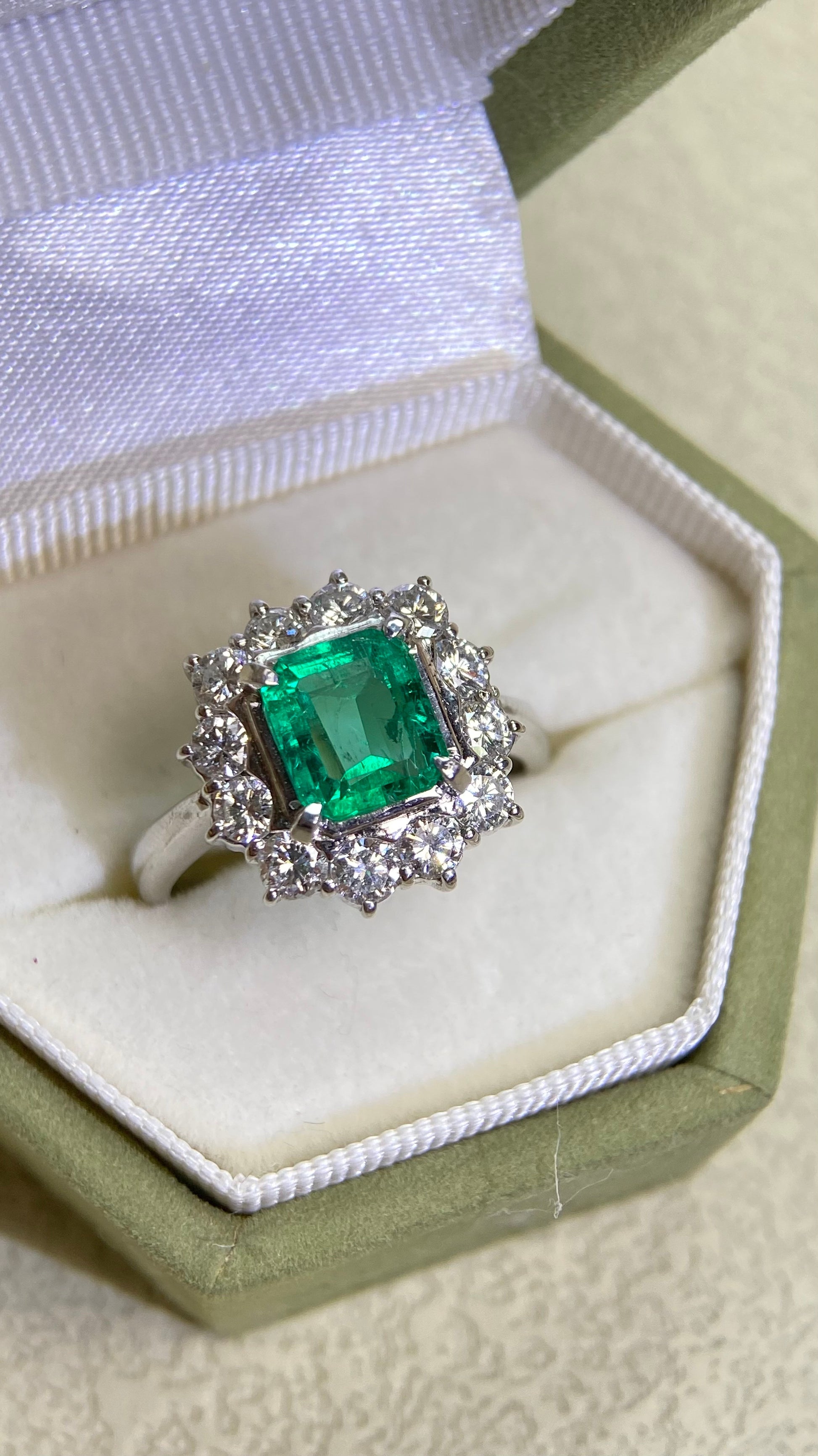 Pt900プラチナ&エメラルド&ダイヤモンドリング|エメラルド1.13カラット|ダイヤモンド0.90カラット|日本製ヴィンテージエステートジュエリー-BHPW