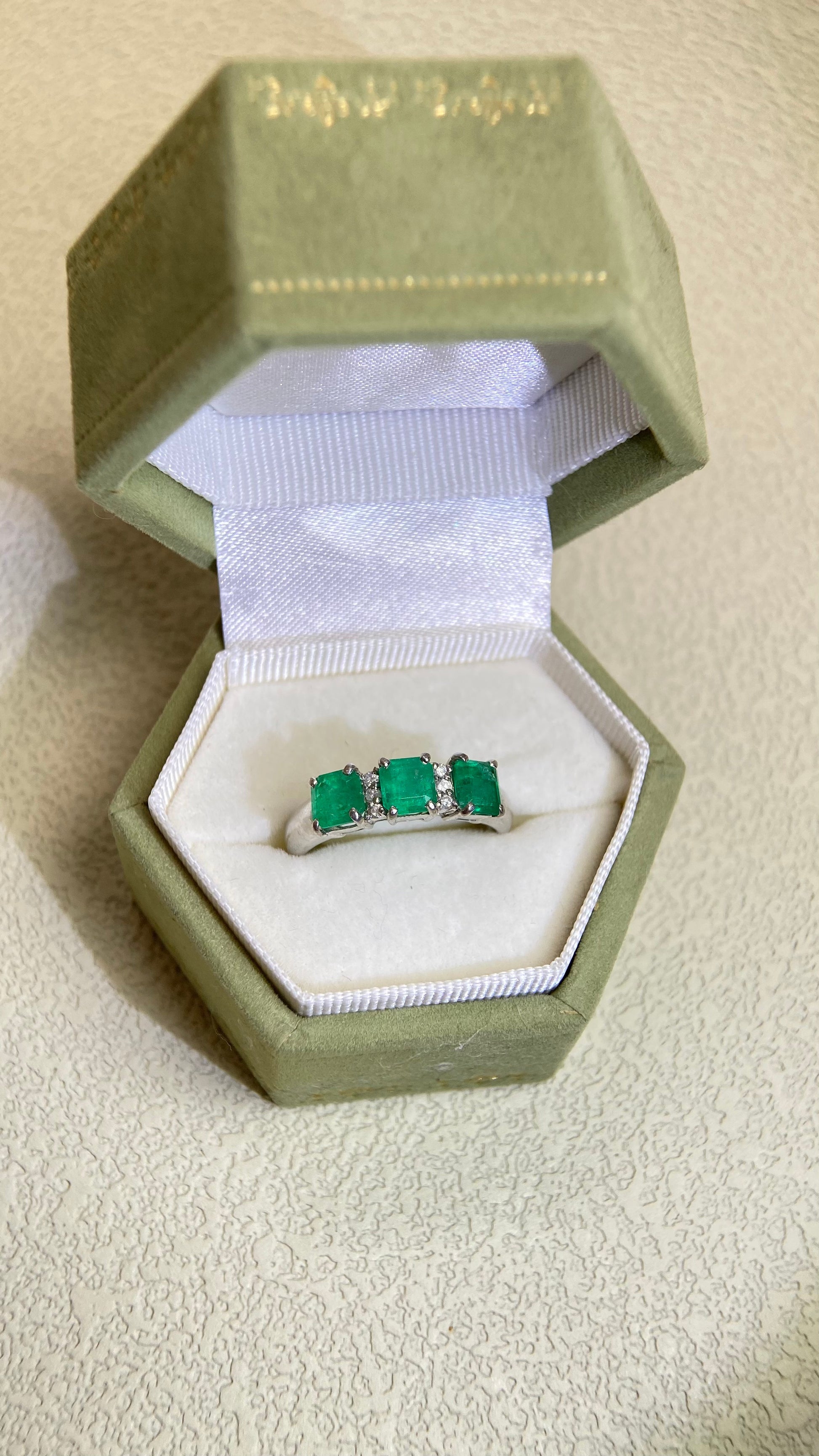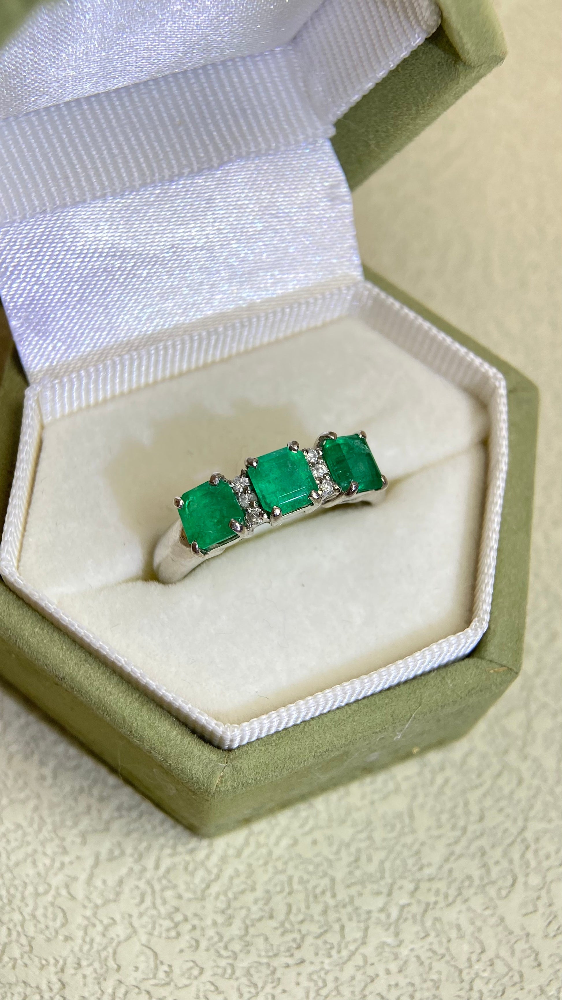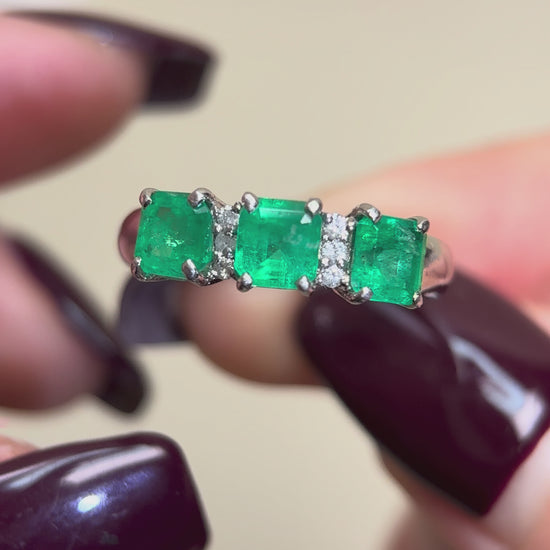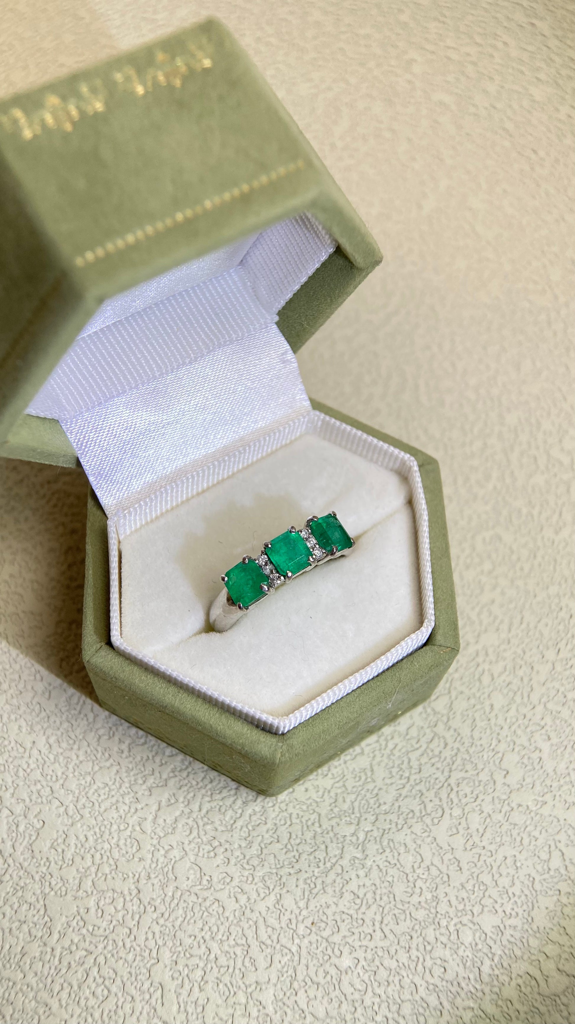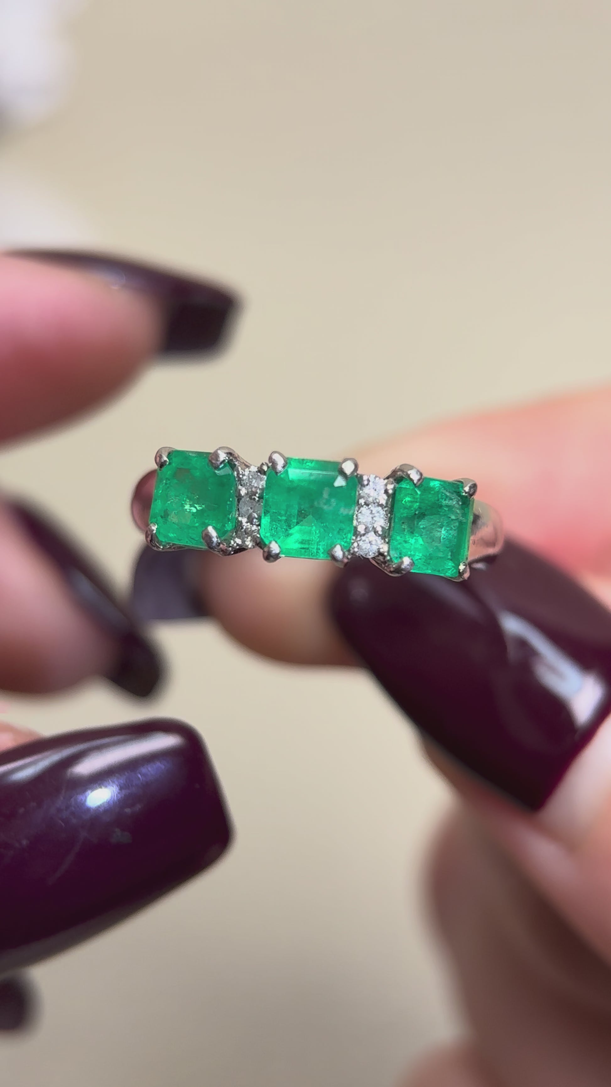 Pt900プラチナ&エメラルド&ダイヤモンドリング|エメラルド1.26カラット|ダイヤモンド0.06カラット|日本製ヴィンテージエステートジュエリー-BFNR