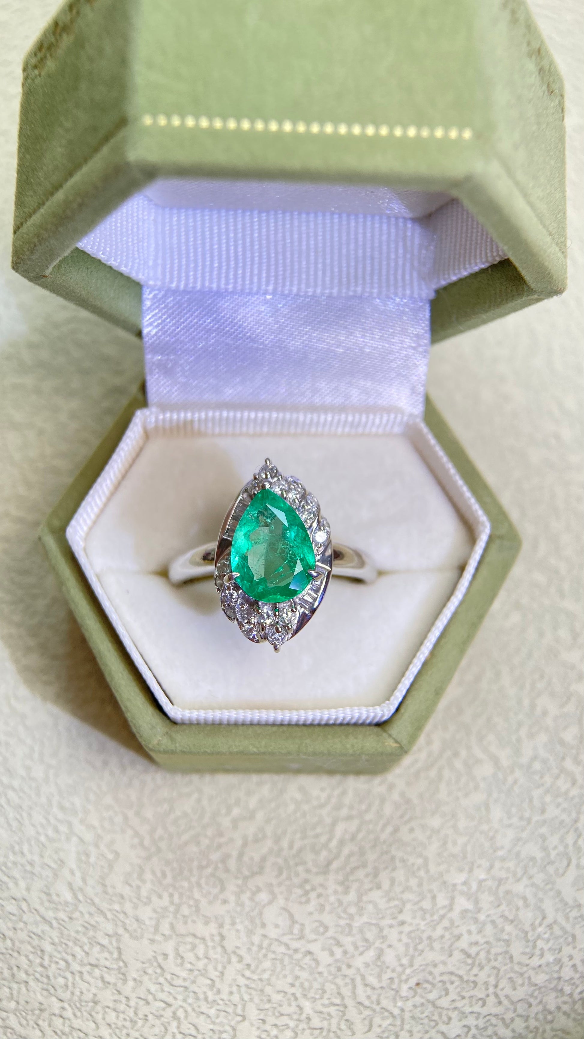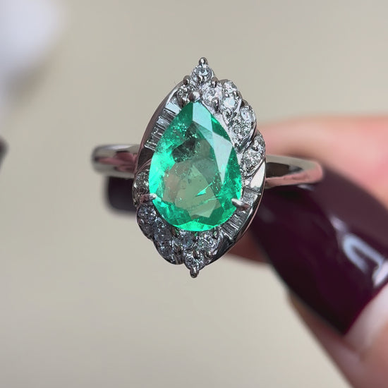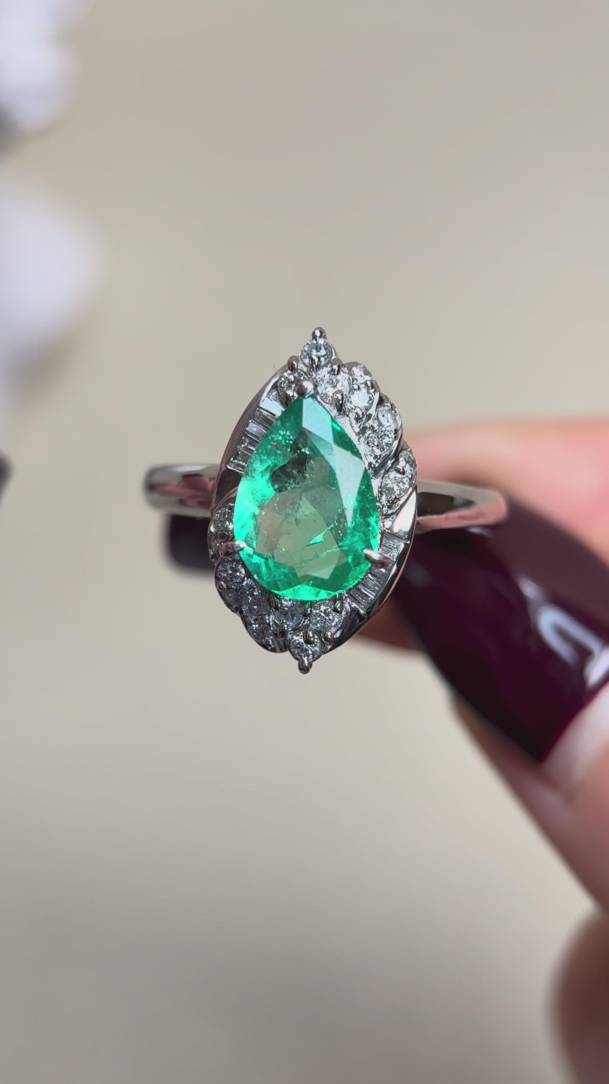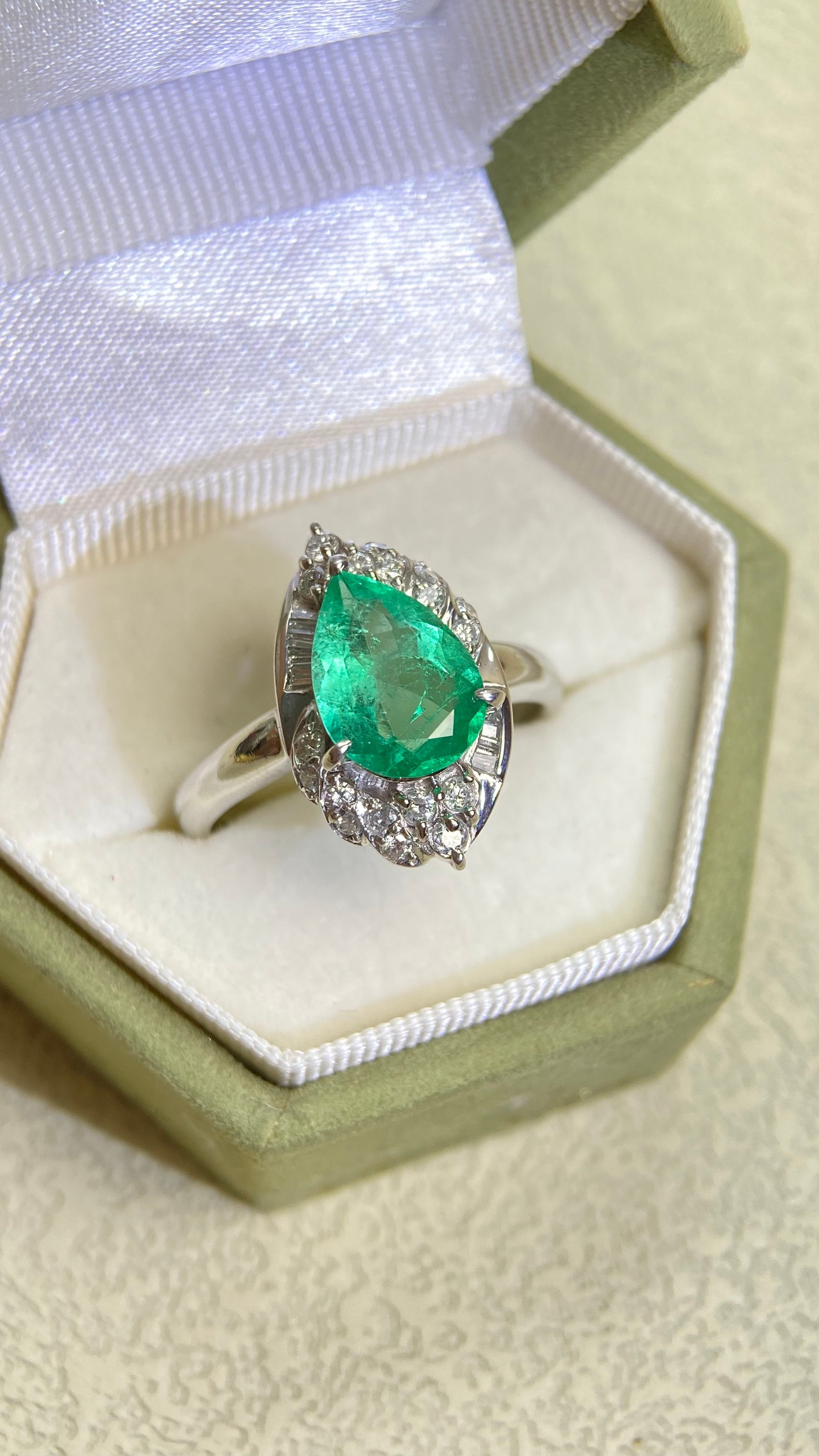 Pt900プラチナ&エメラルド&ダイヤモンドリング|エメラルド1.72カラット|ダイヤモンド0.38カラット|日本製ヴィンテージエステートジュエリー-BMPL
