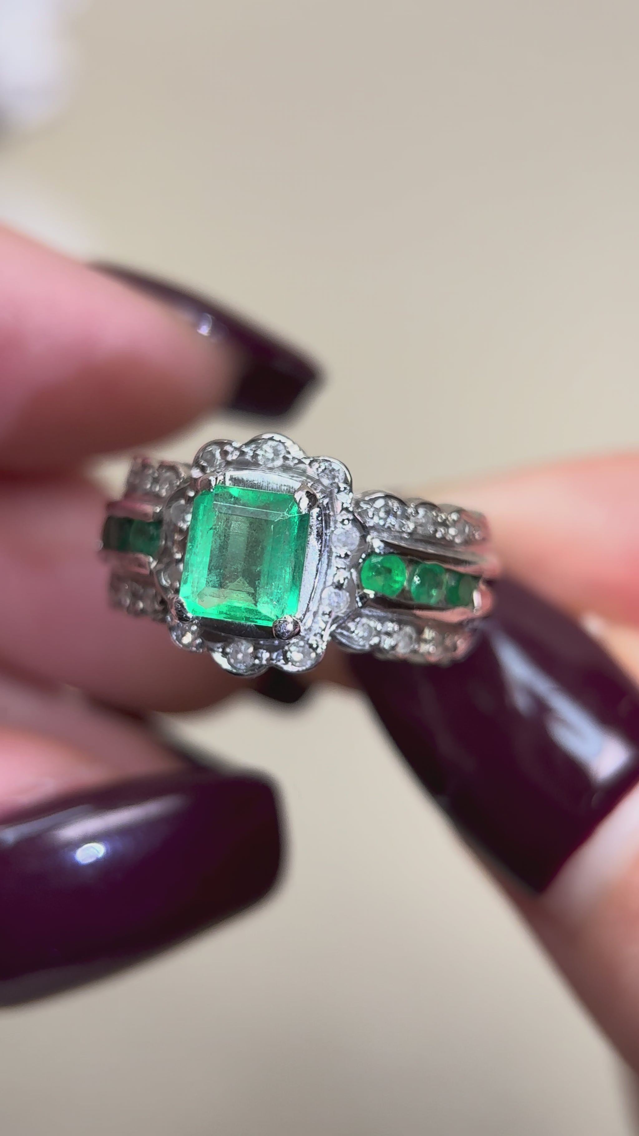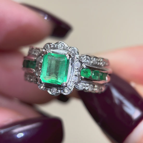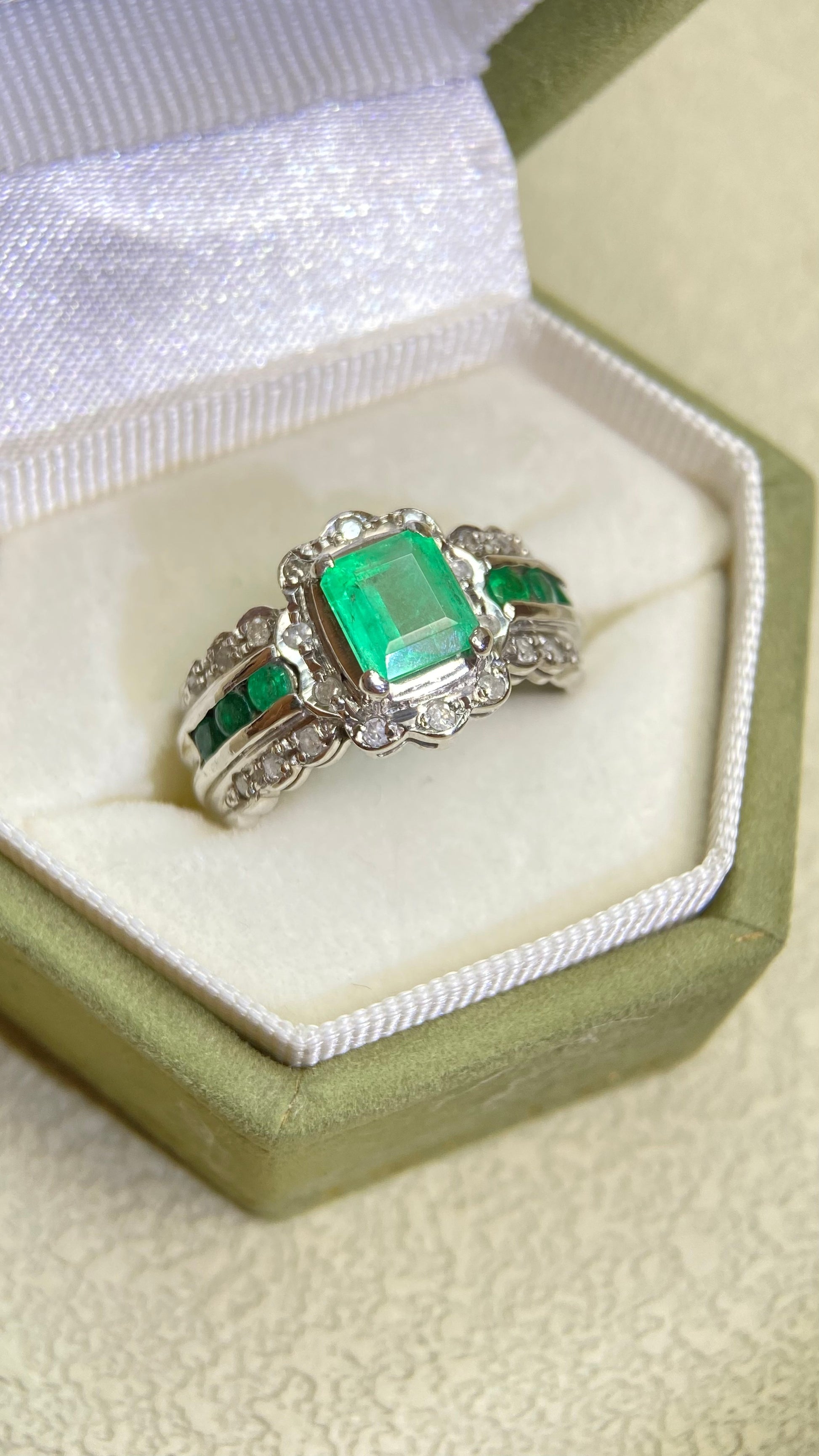 Pt900プラチナ&エメラルド&ダイヤモンドリング|エメラルド1.80t|ダイヤモンド0.18ct|日本製ヴィンテージエステートジュエリー-BPOA
