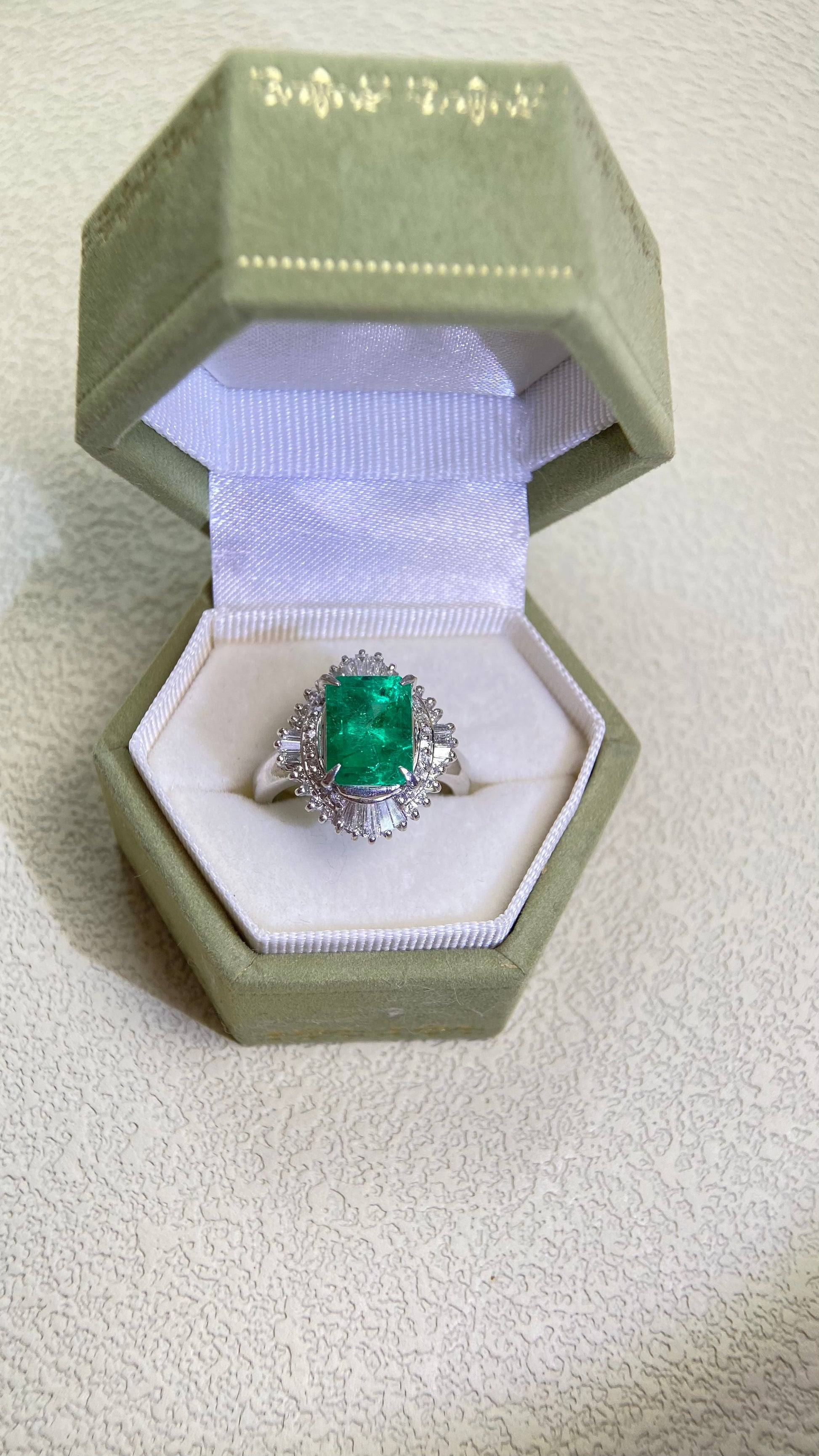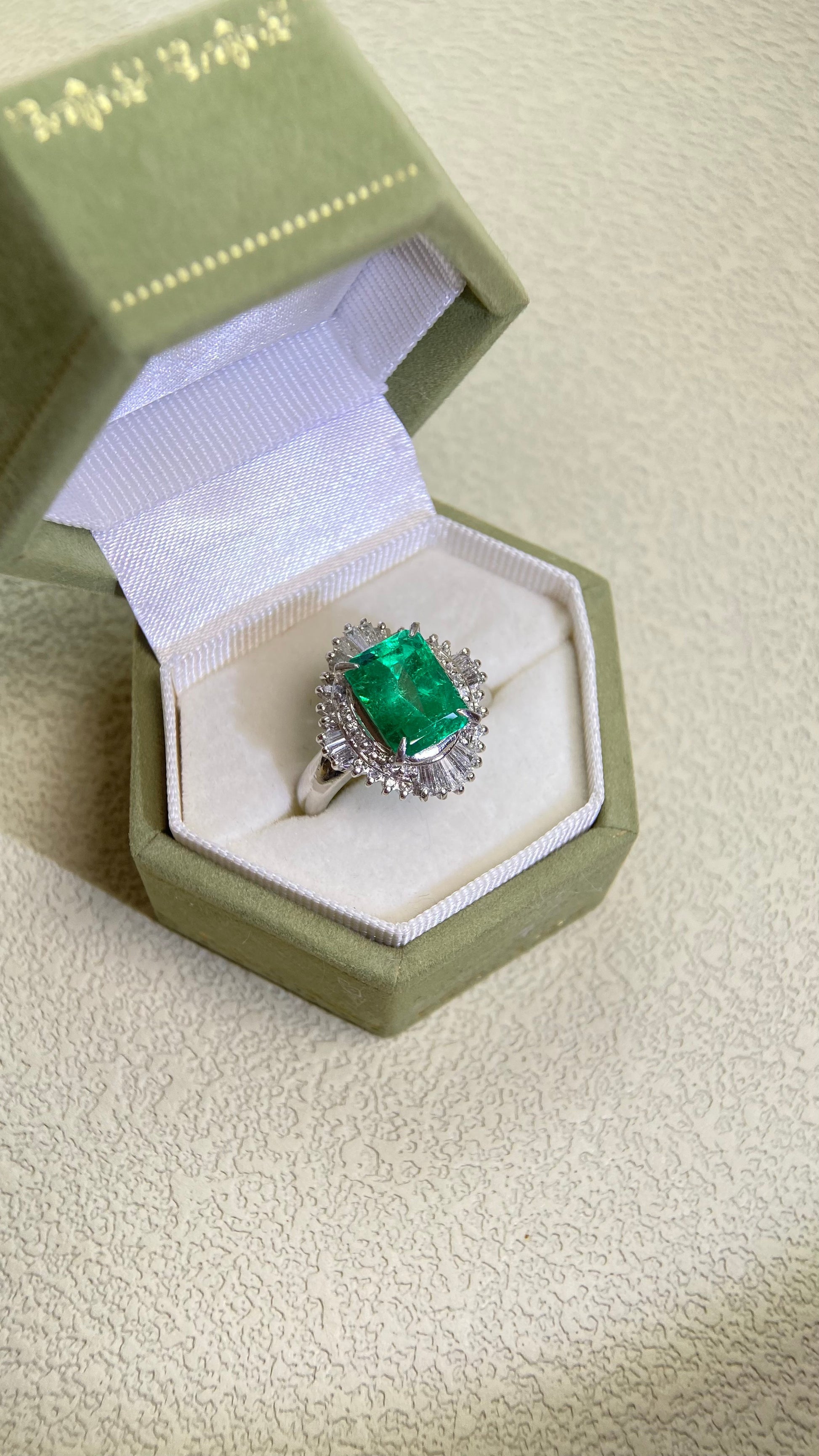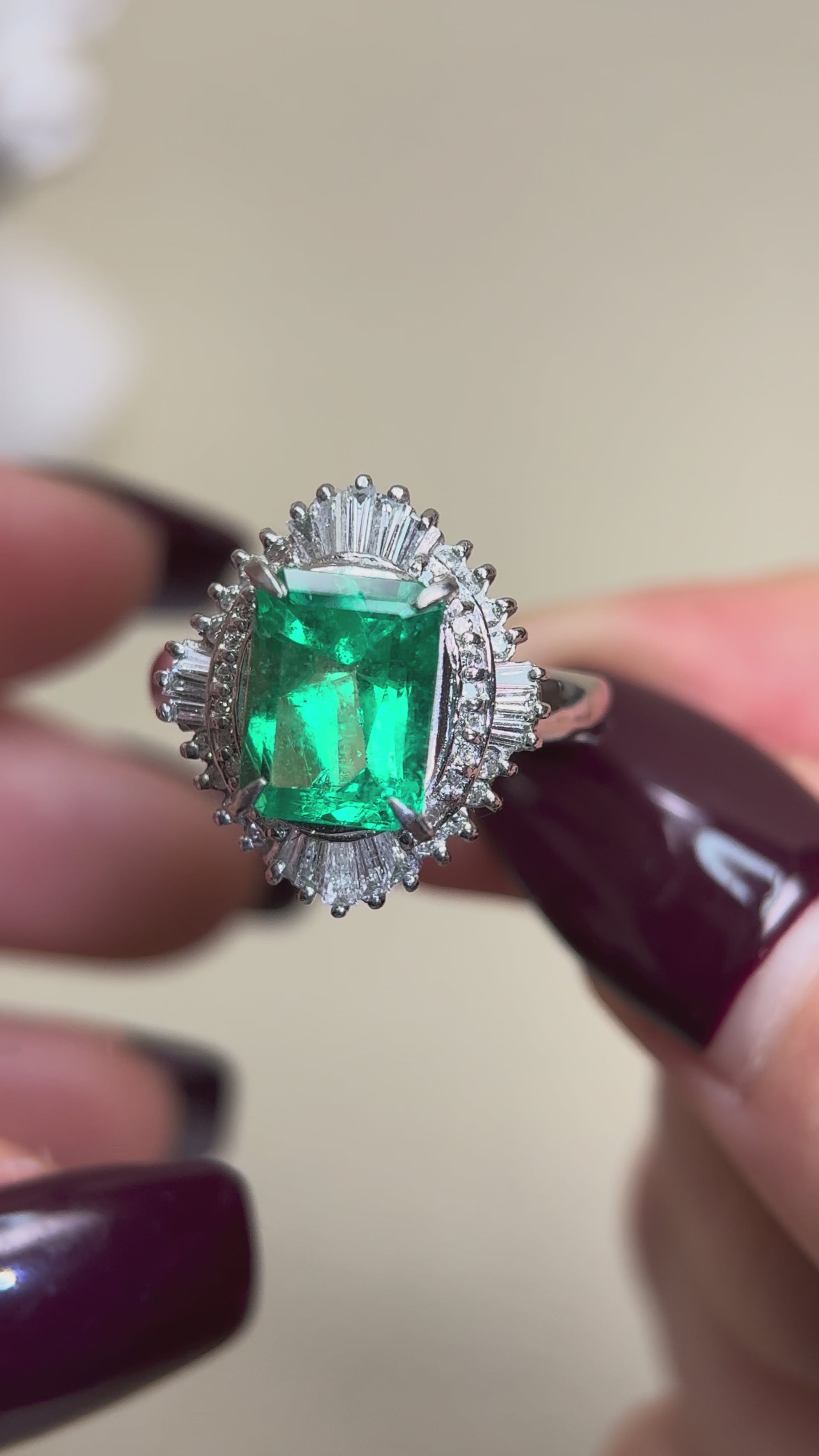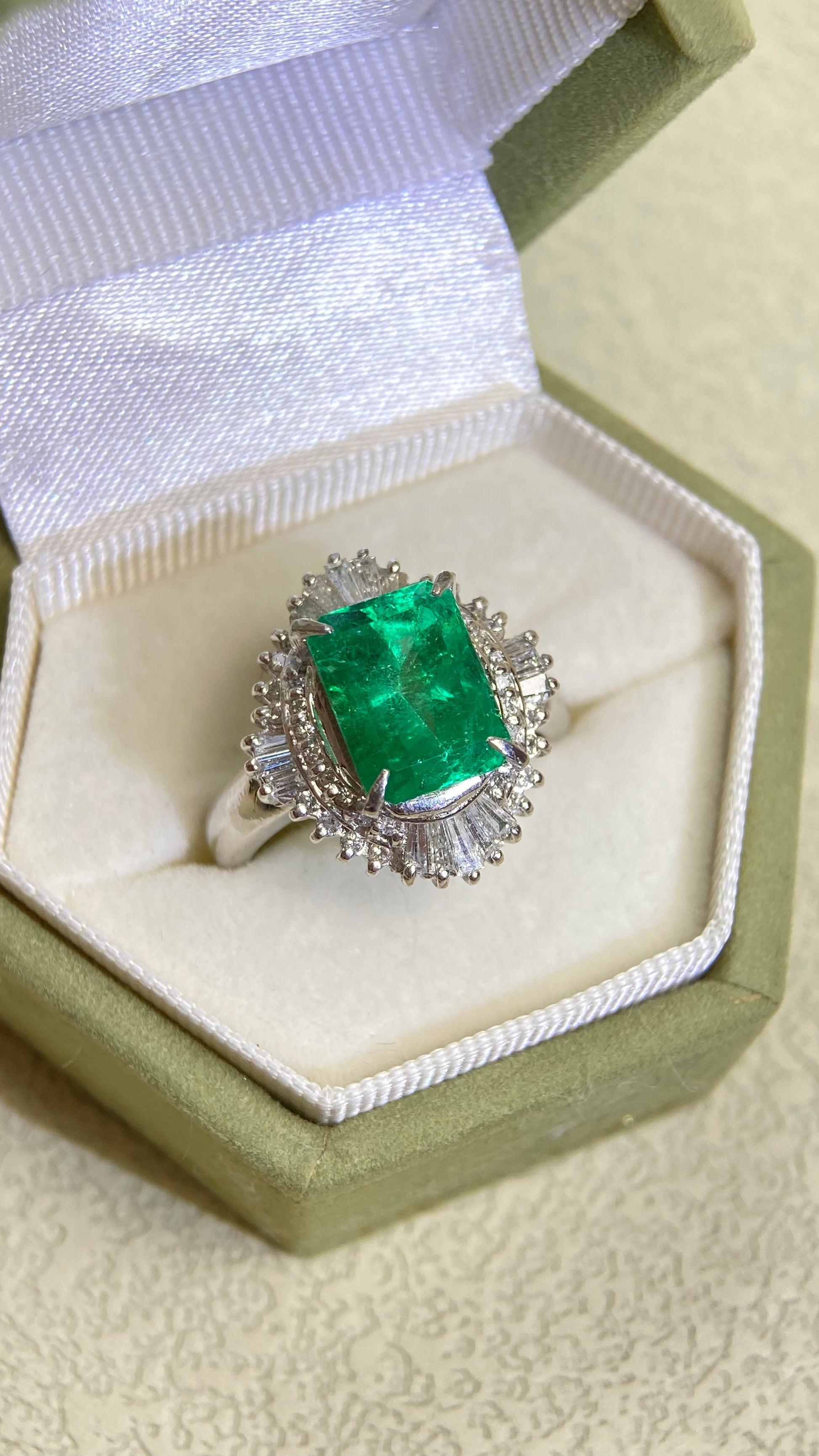 Pt900プラチナ&エメラルド&ダイヤモンドリング|エメラルド2.91カラット|ダイヤモンド0.47カラット|日本のヴィンテージエステートジュエリー-BAAJ