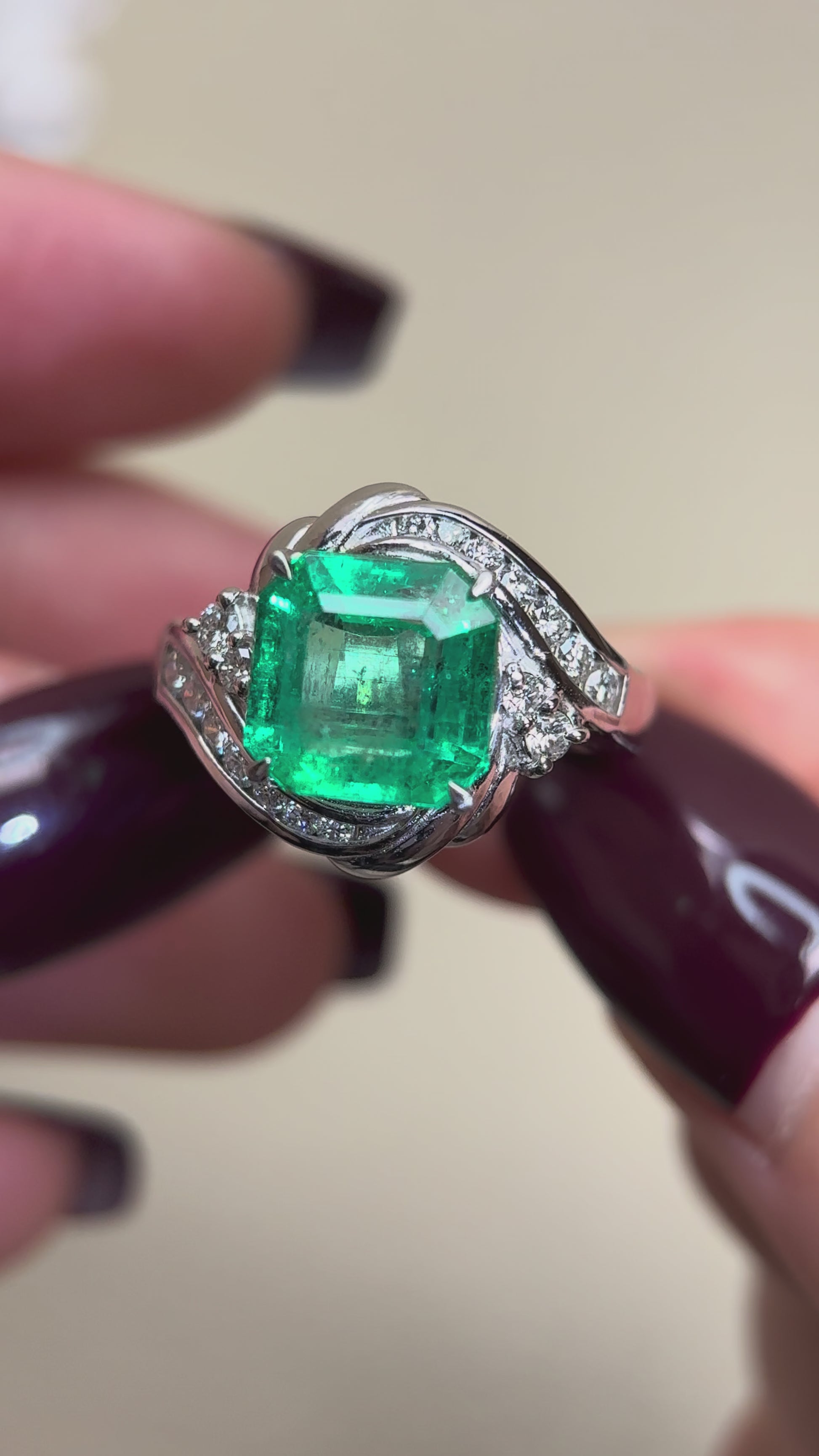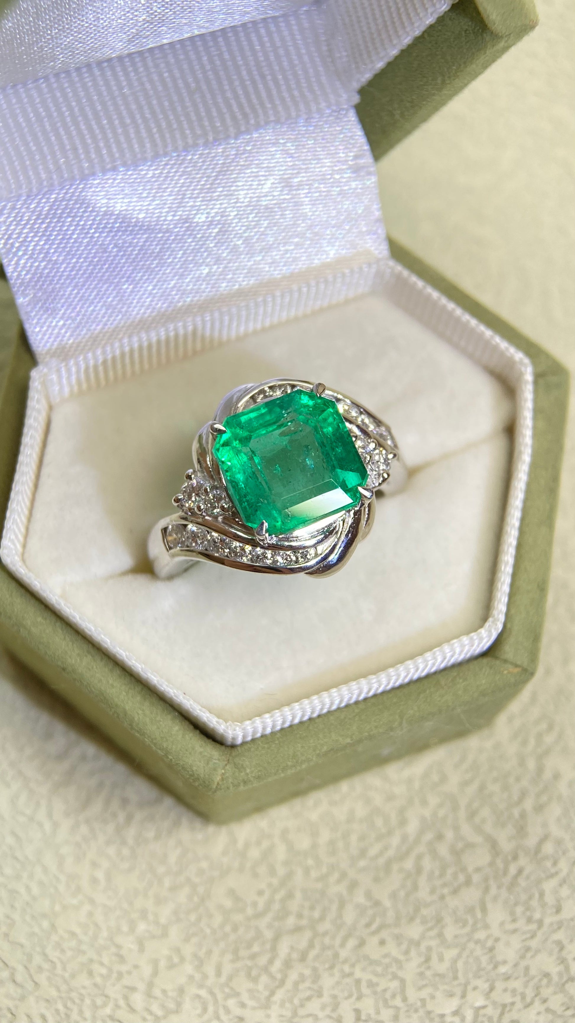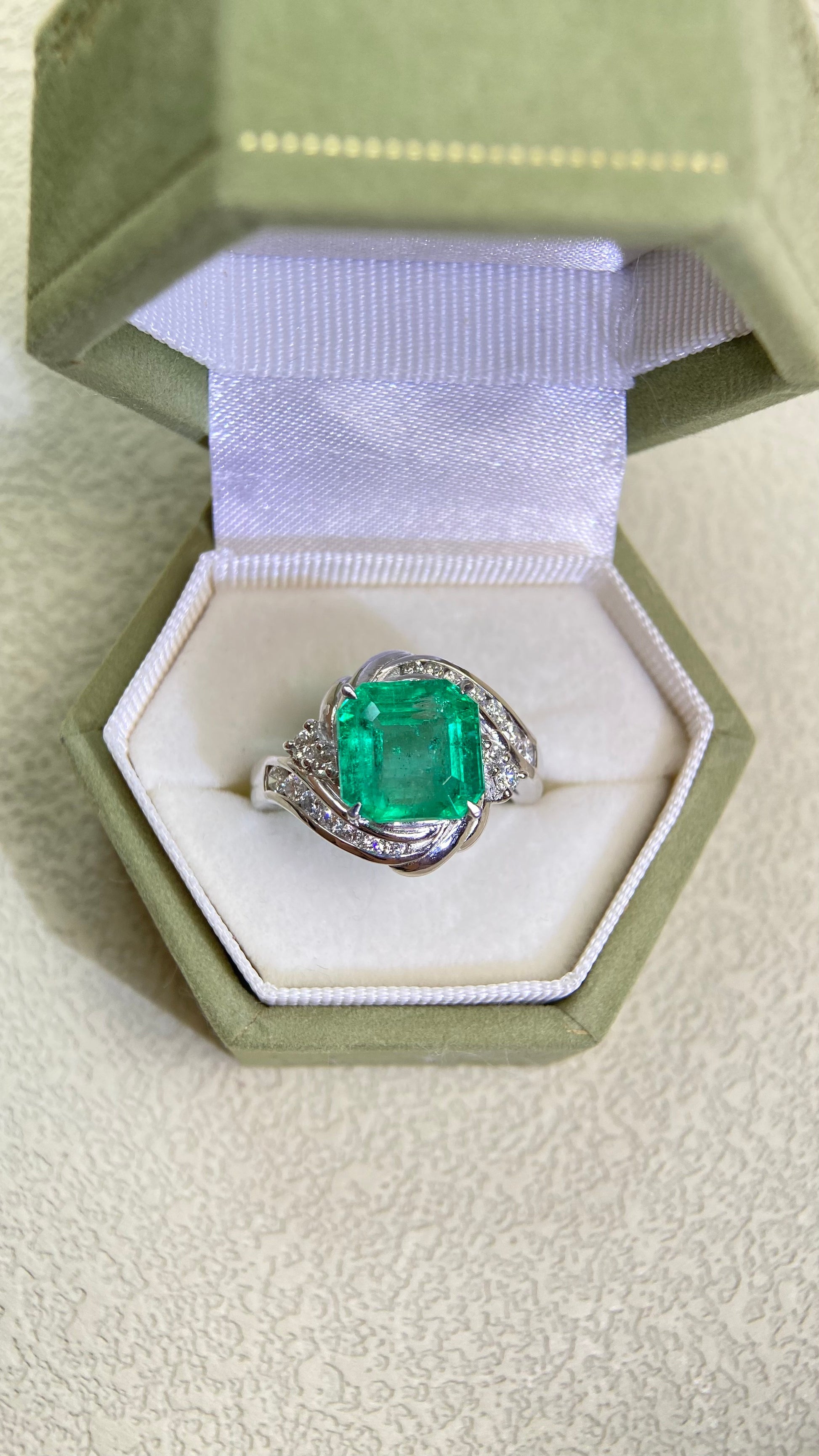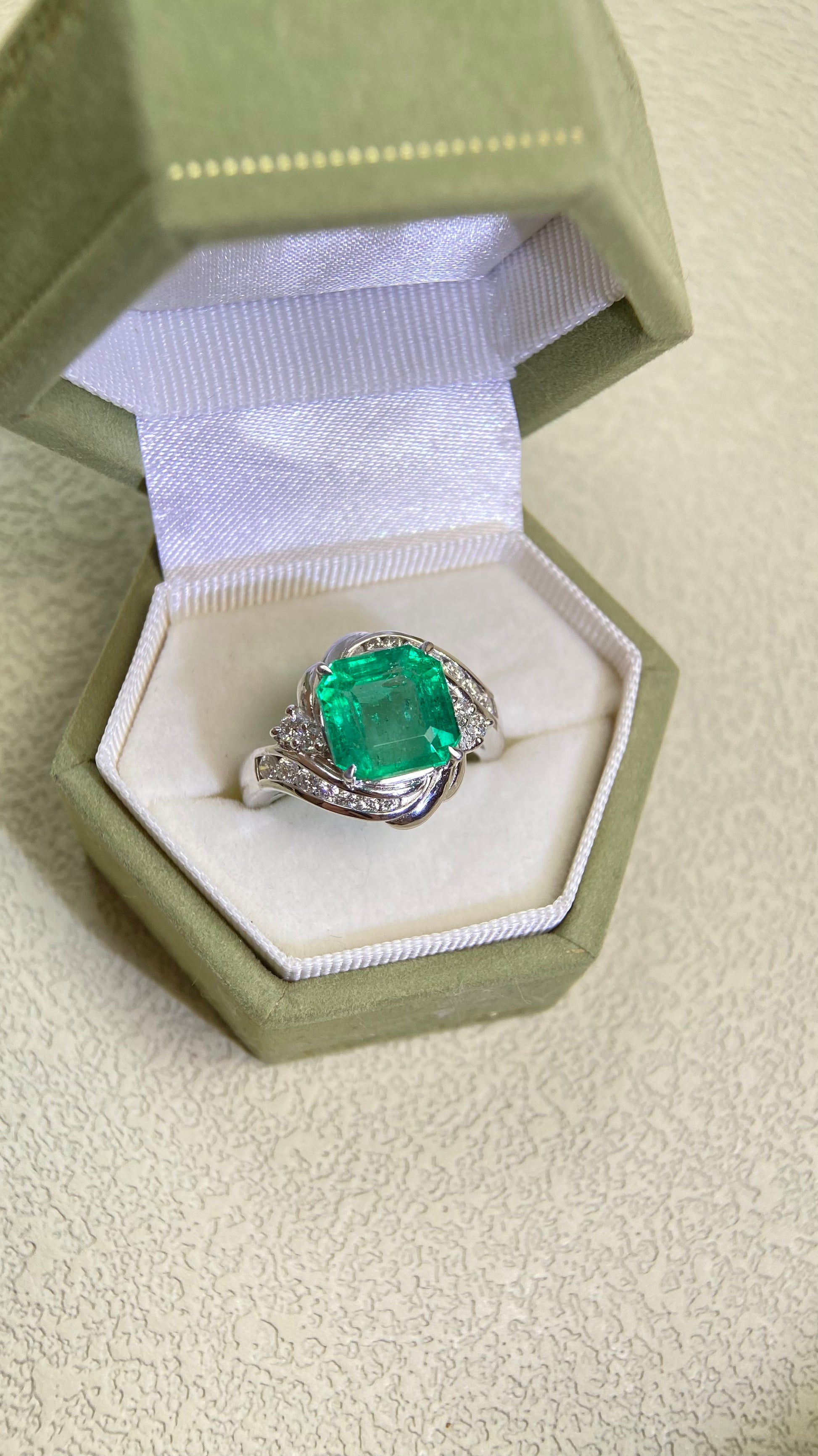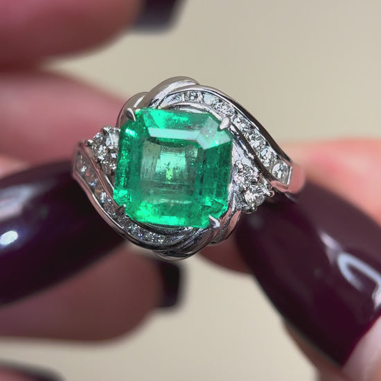 Pt900プラチナ&エメラルド&ダイヤモンドリング|エメラルド3.98カラット|ダイヤモンド0.43カラット|コロンビア|日本製ヴィンテージエステートジュエリー-BOYM