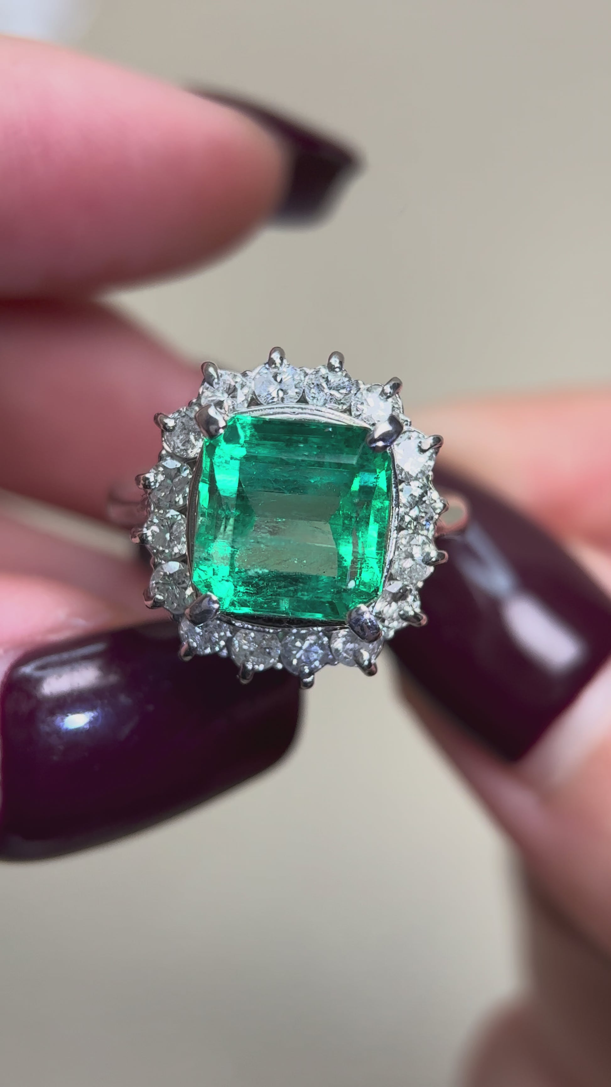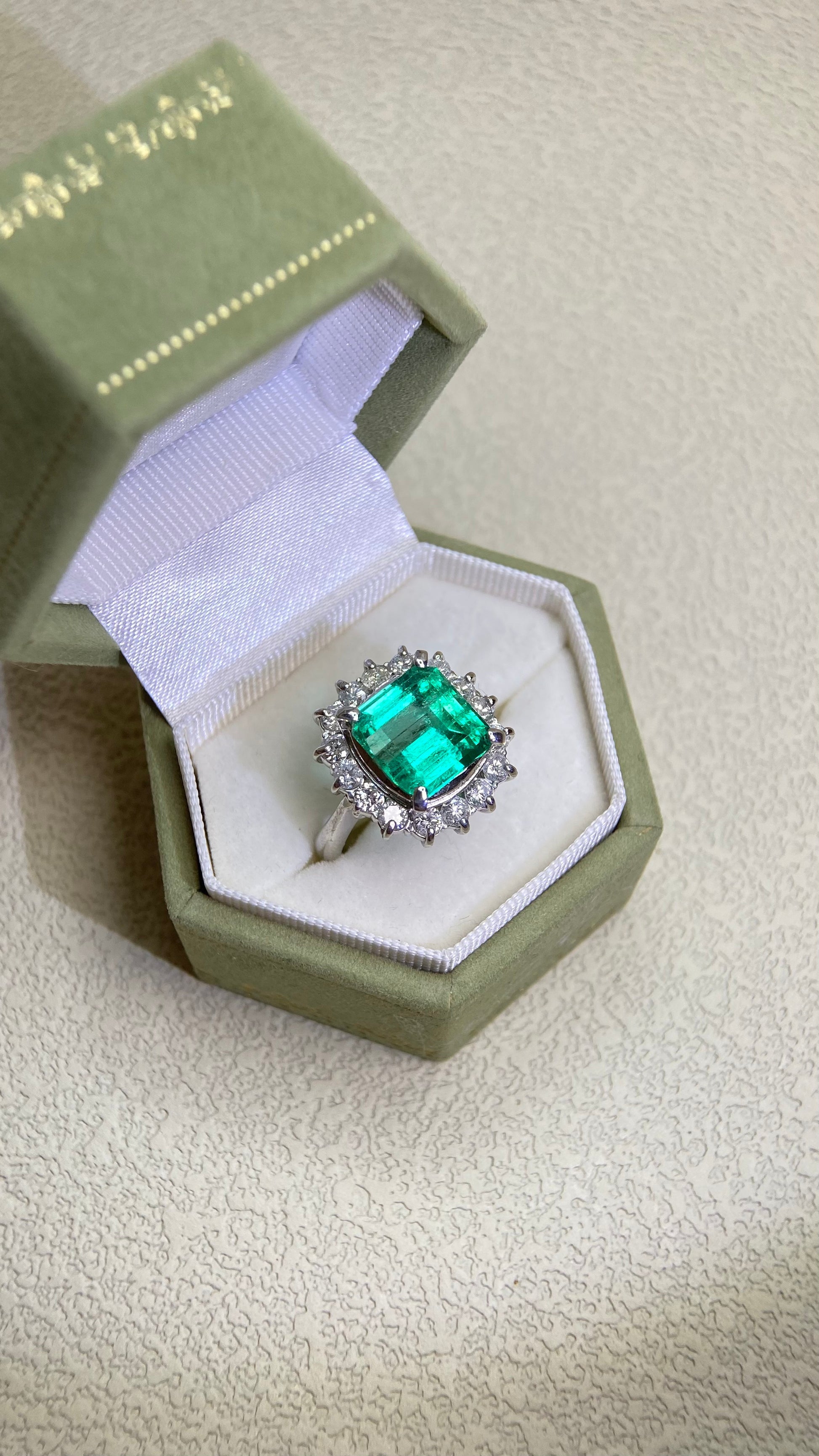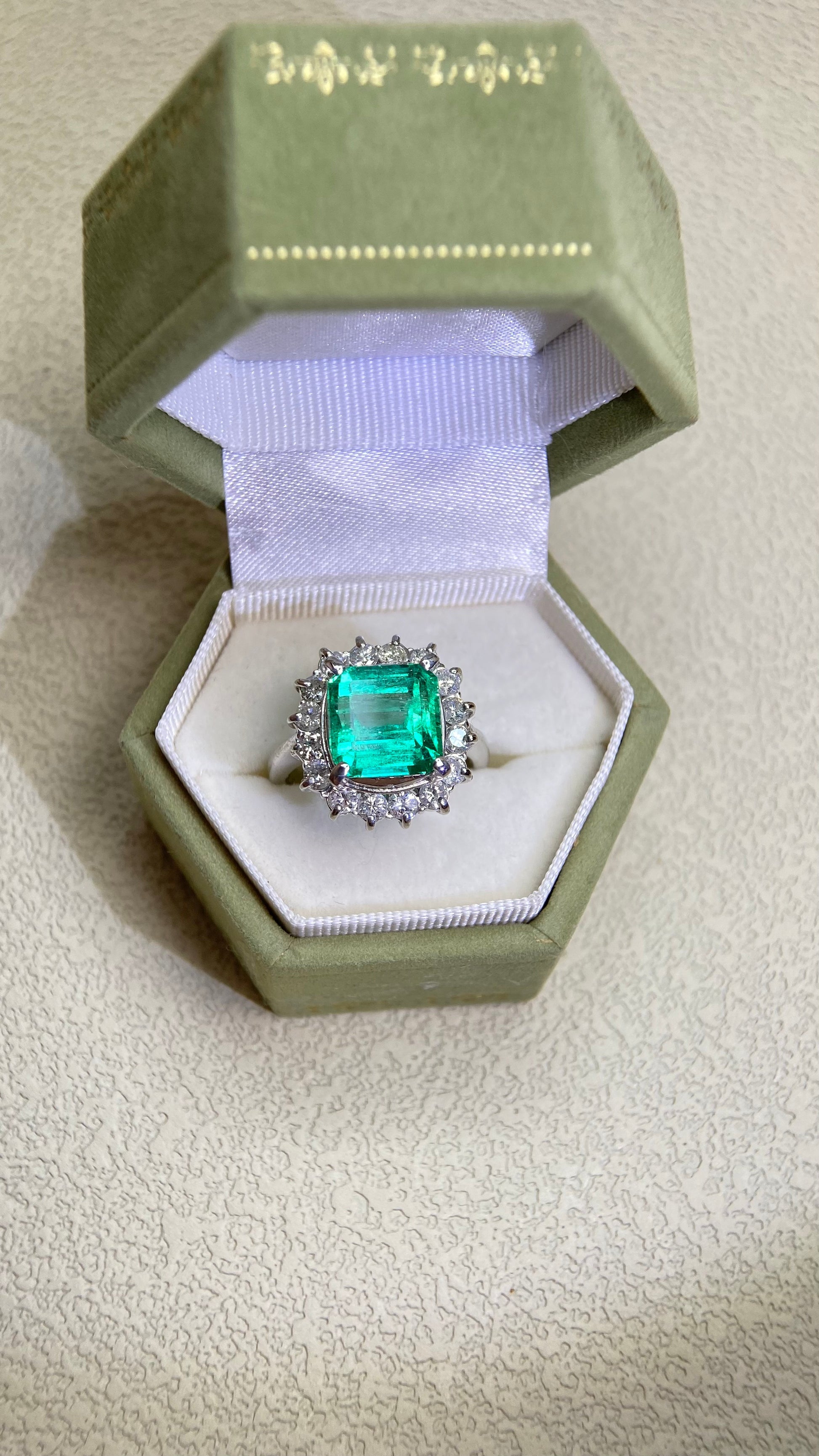 Pt900プラチナ&エメラルド&ダイヤモンドリング|エメラルド4.25カラット|ダイヤモンド1.00カラット|日本製ヴィンテージエステートジュエリー-BPCS