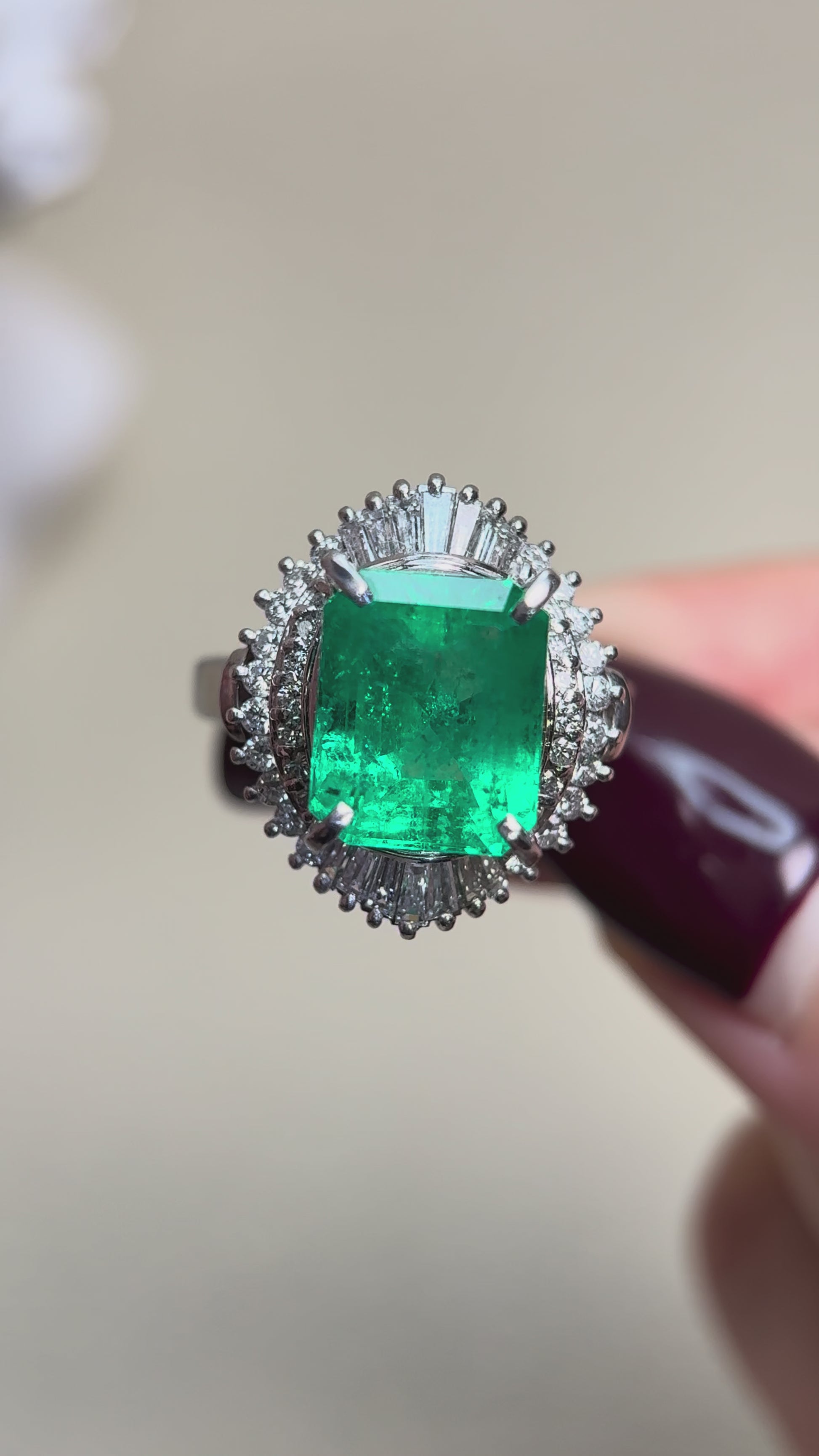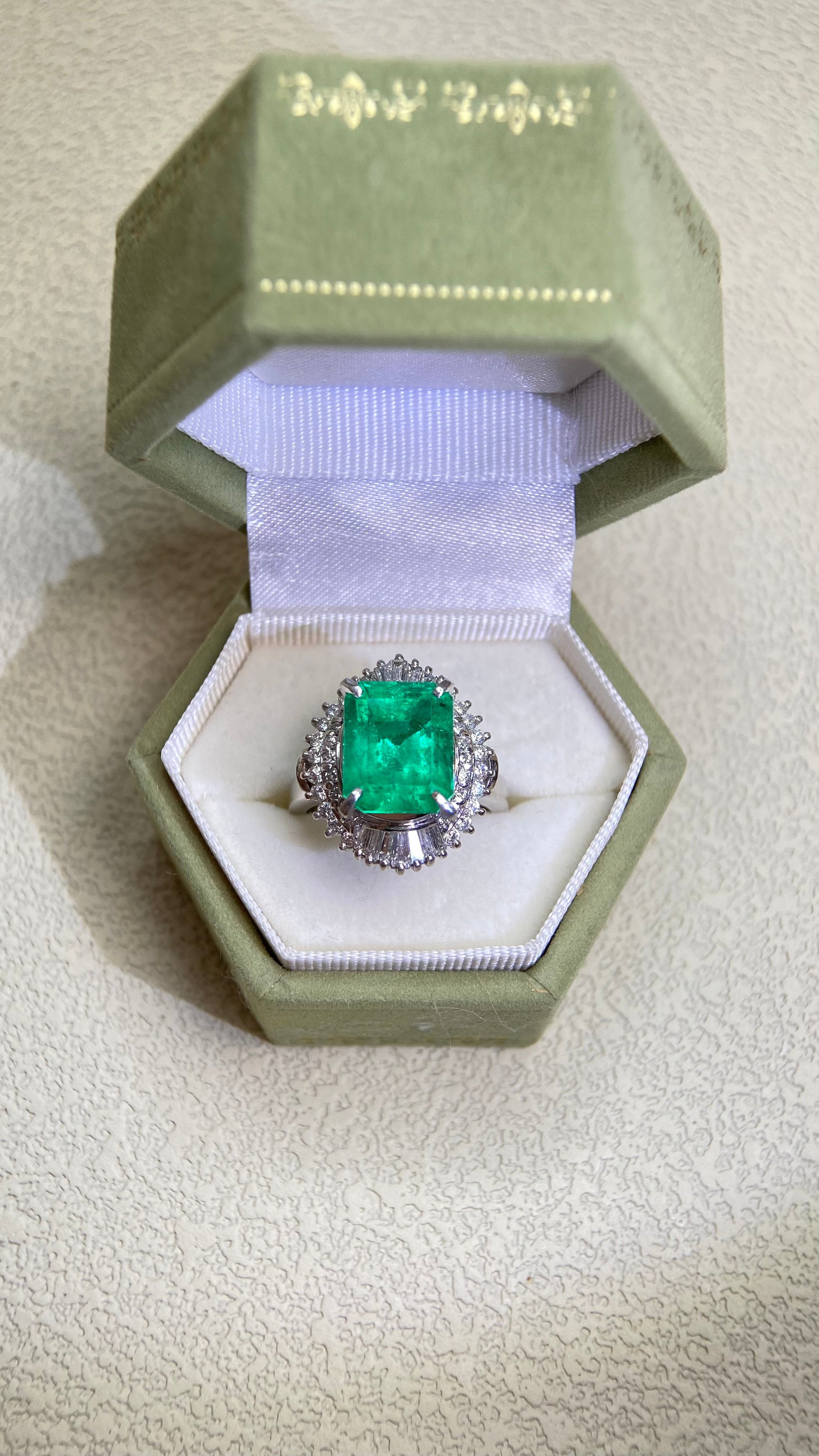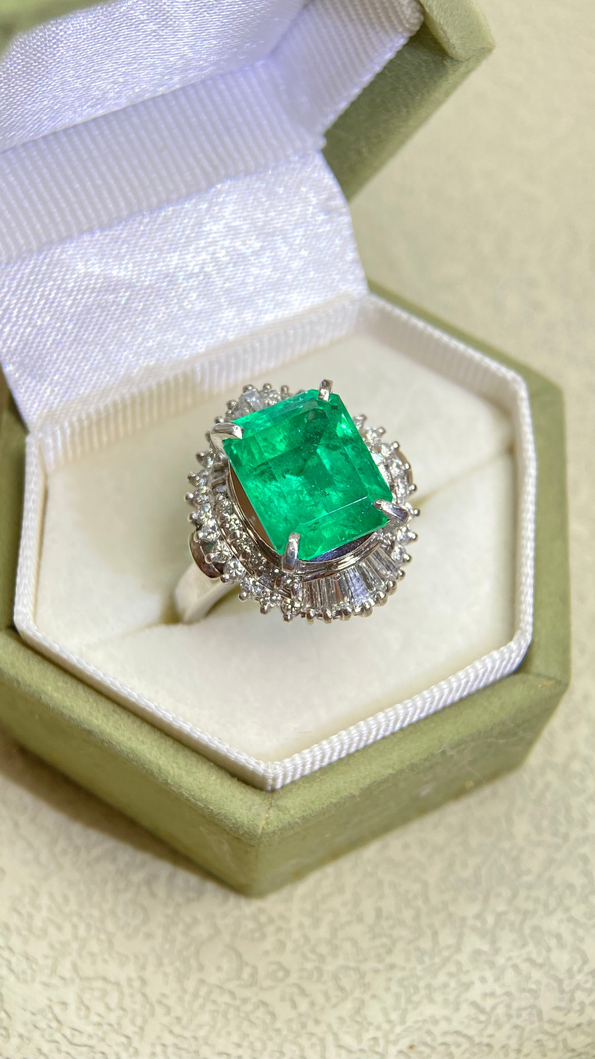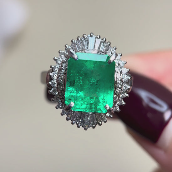 Pt900プラチナ&エメラルド&ダイヤモンドリング|エメラルド4.75カラット|ダイヤモンド0.81カラット|日本製ヴィンテージエステートジュエリー-BCPB