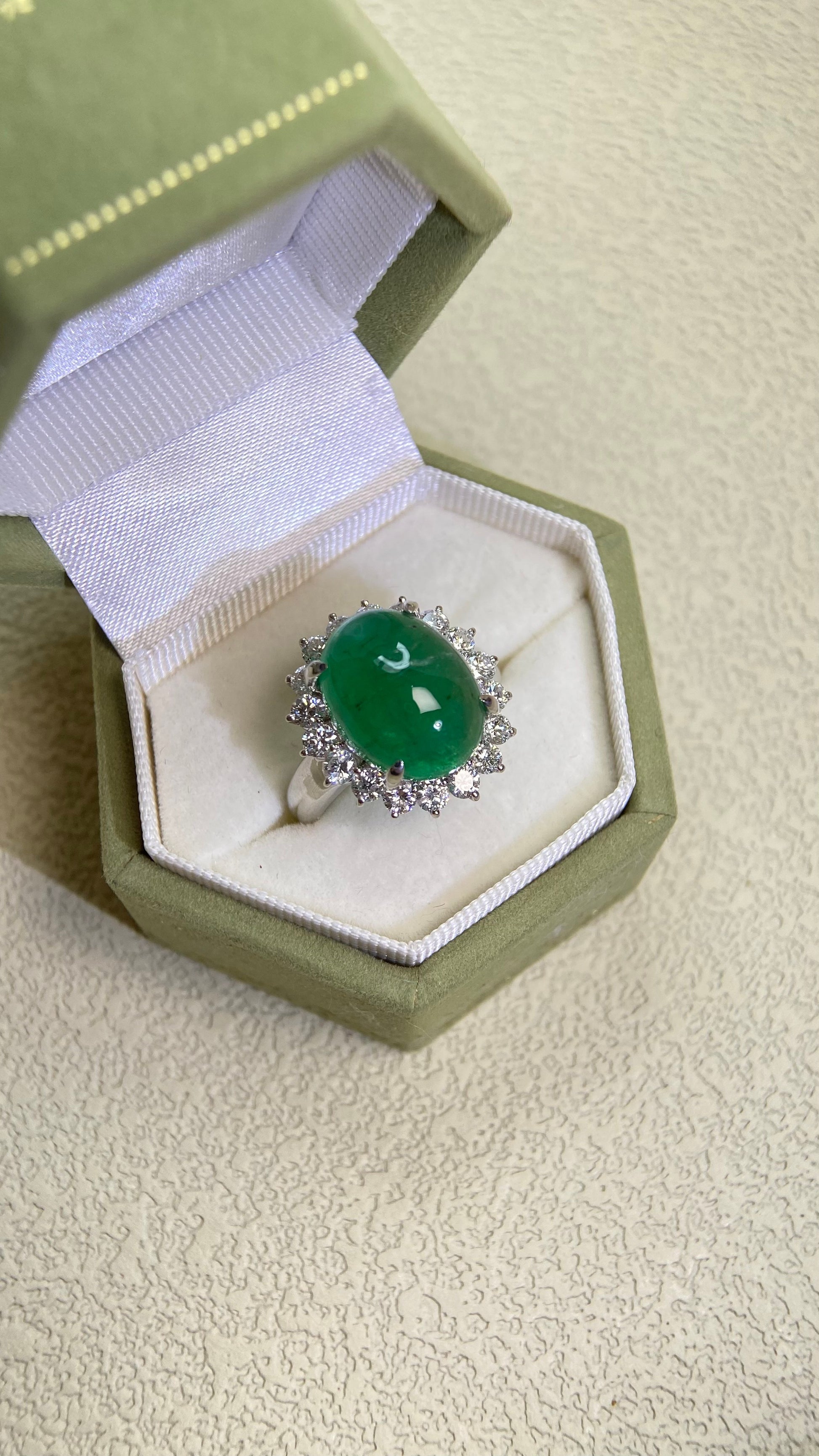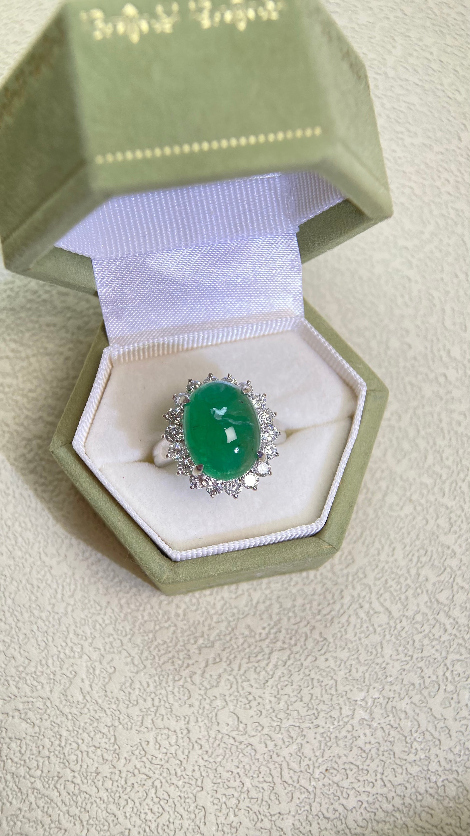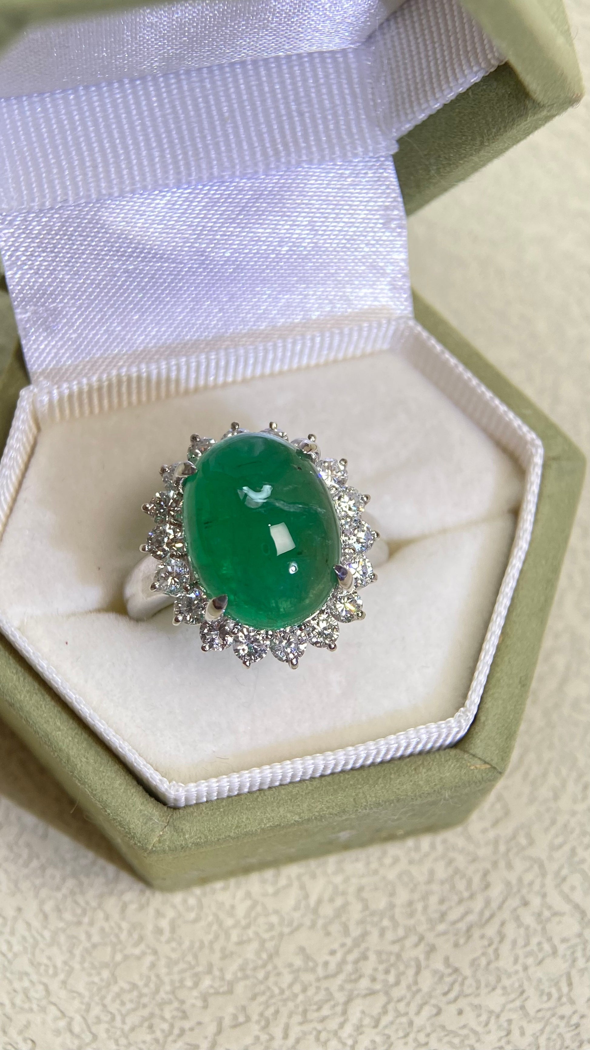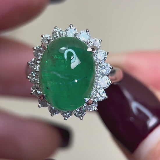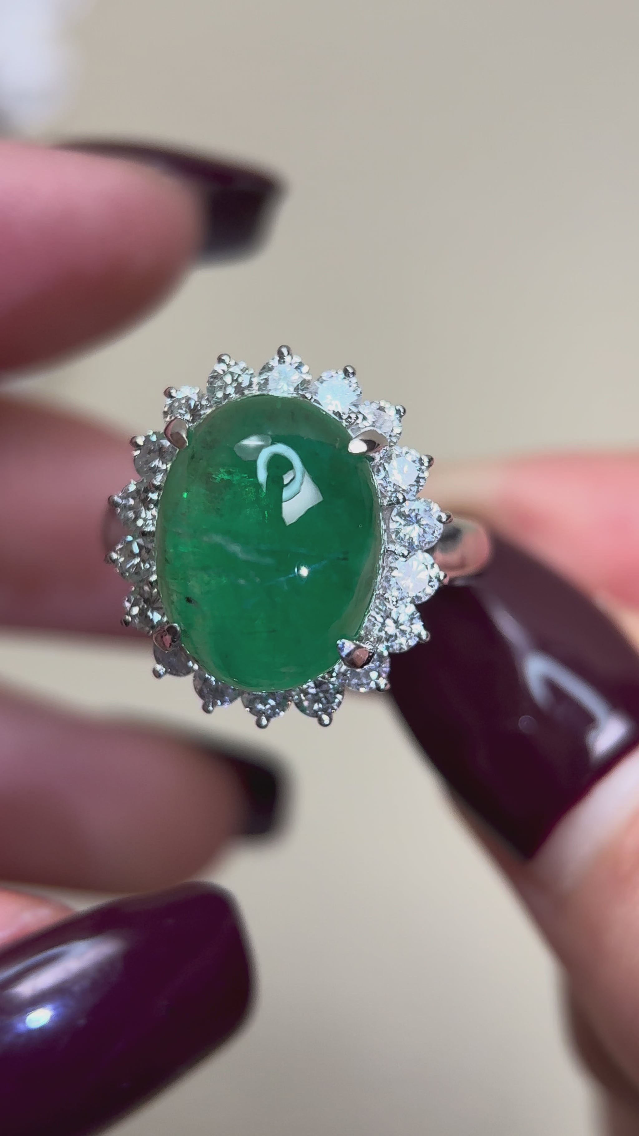 Pt900プラチナ&エメラルド&ダイヤモンドリング|エメラルド6.91カラット|ダイヤモンド1.10カラット|日本製ヴィンテージエステートジュエリー-BQGX