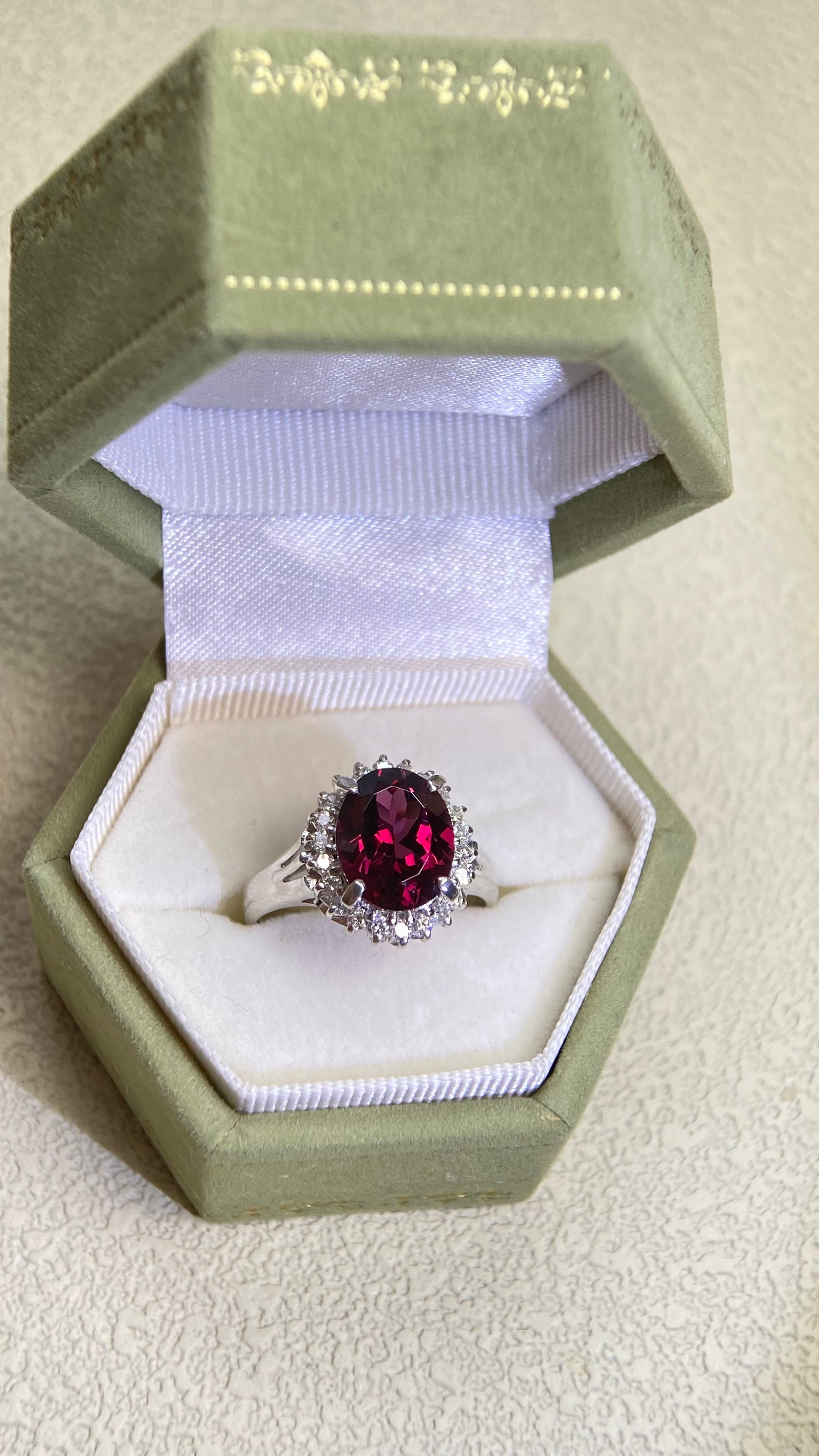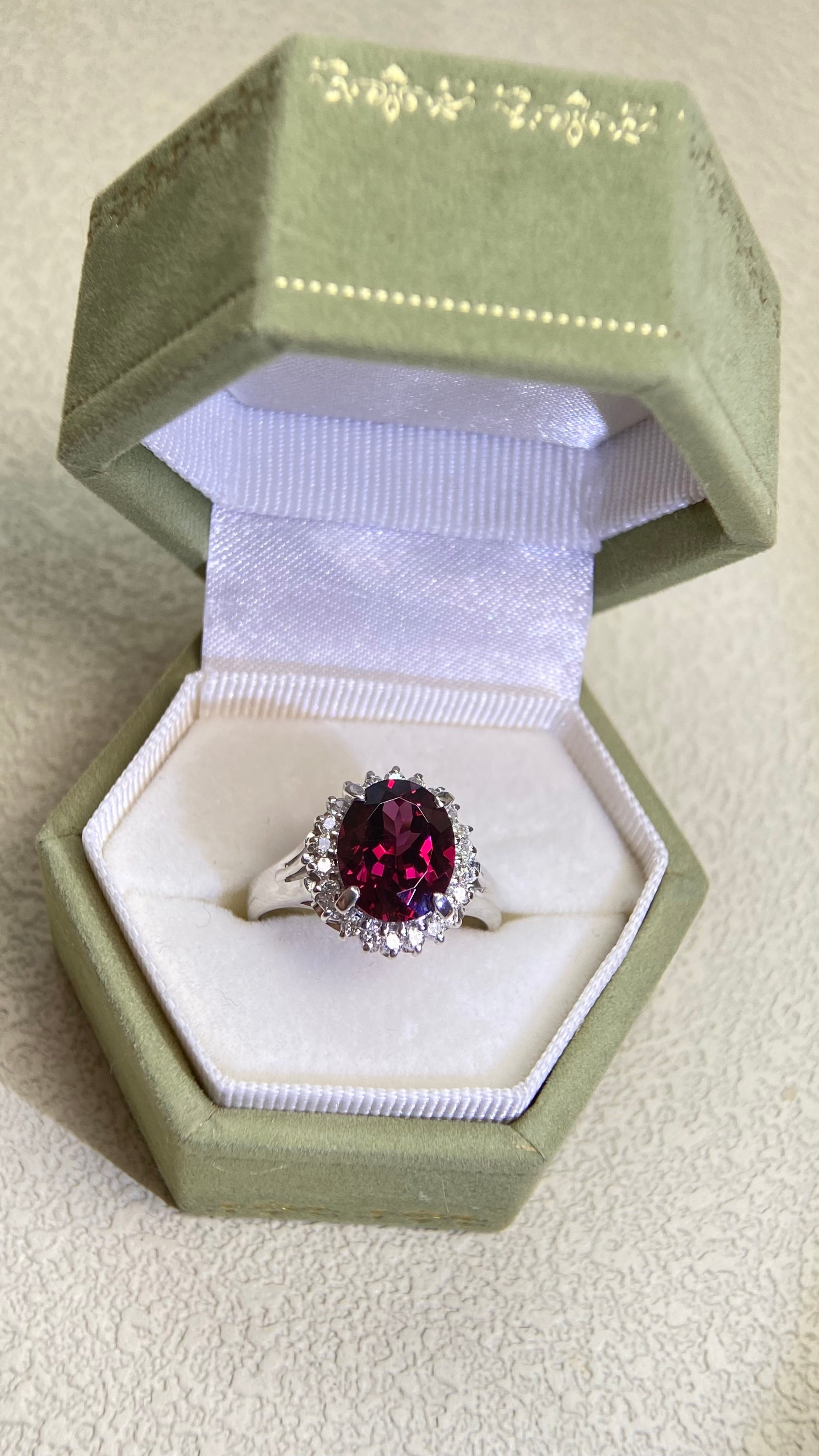 Pt900プラチナ&ガーネット&ダイヤモンドリング|ガーネット3.25カラット、ダイヤモンド0.32カラット|日本製ヴィンテージエステートジュエリー-BKPB