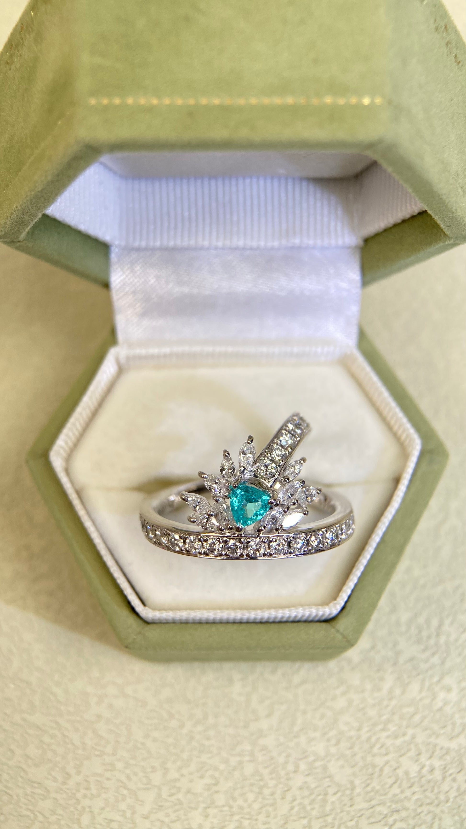 Pt900 Platinum&Paraiba&Diamond Ring| Paraiba:0.222ct | Diamonds:0.56/0.40ct | Japanese Vintage Estate Jewelry -BSLF3115