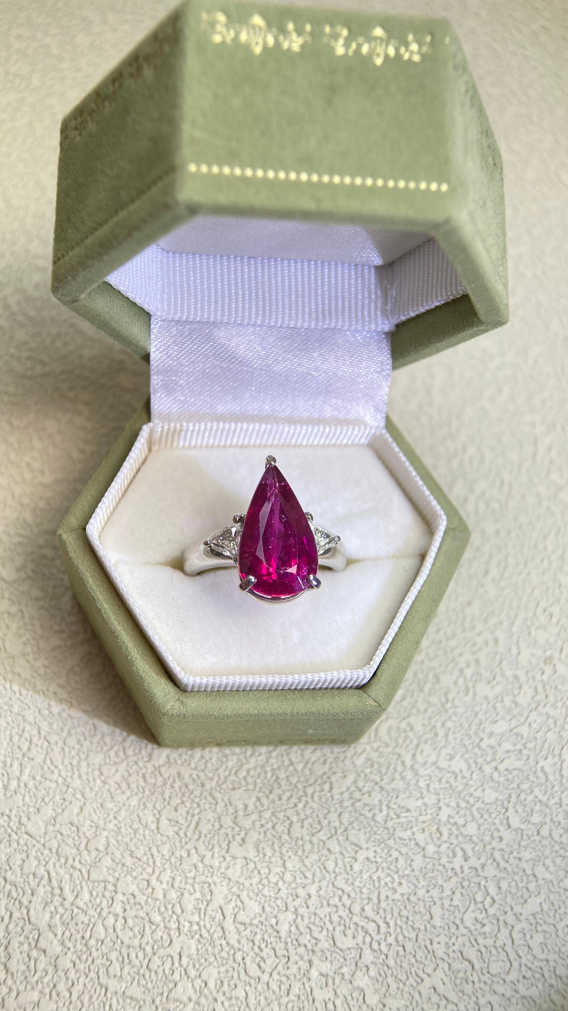 Pt900プラチナ&ルベライト&ダイヤモンドリング|ルベライト4.634ct、ダイヤモンド0.41ct|日本製ヴィンテージエステートジュエリー-BPYX