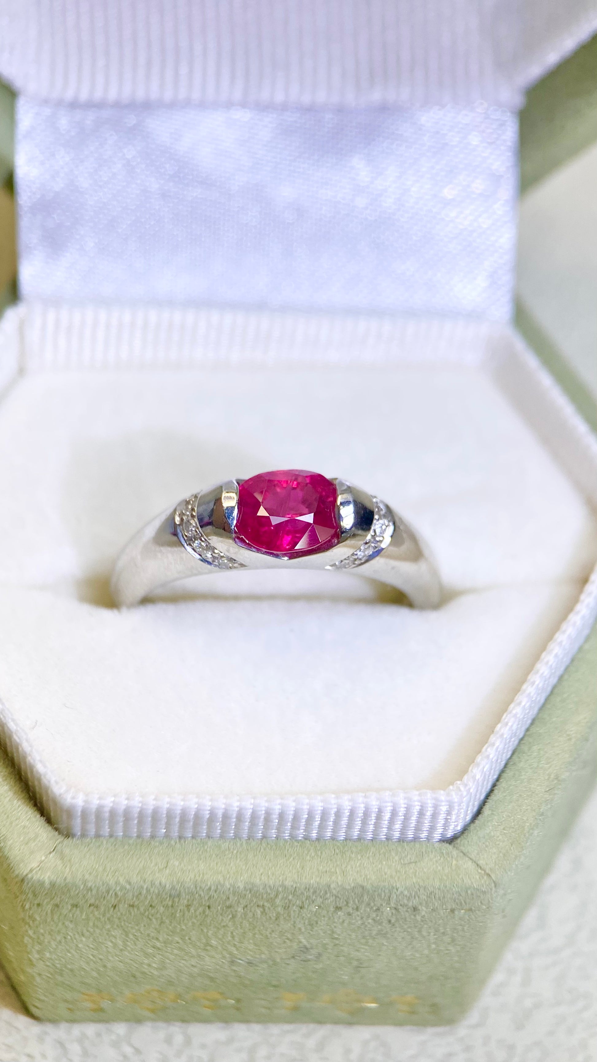 Pt900プラチナ&ルビー&ダイヤモンドリング|ルビー1.03ct、ダイヤモンド0.06ct|日本製ヴィンテージエステートジュエリー