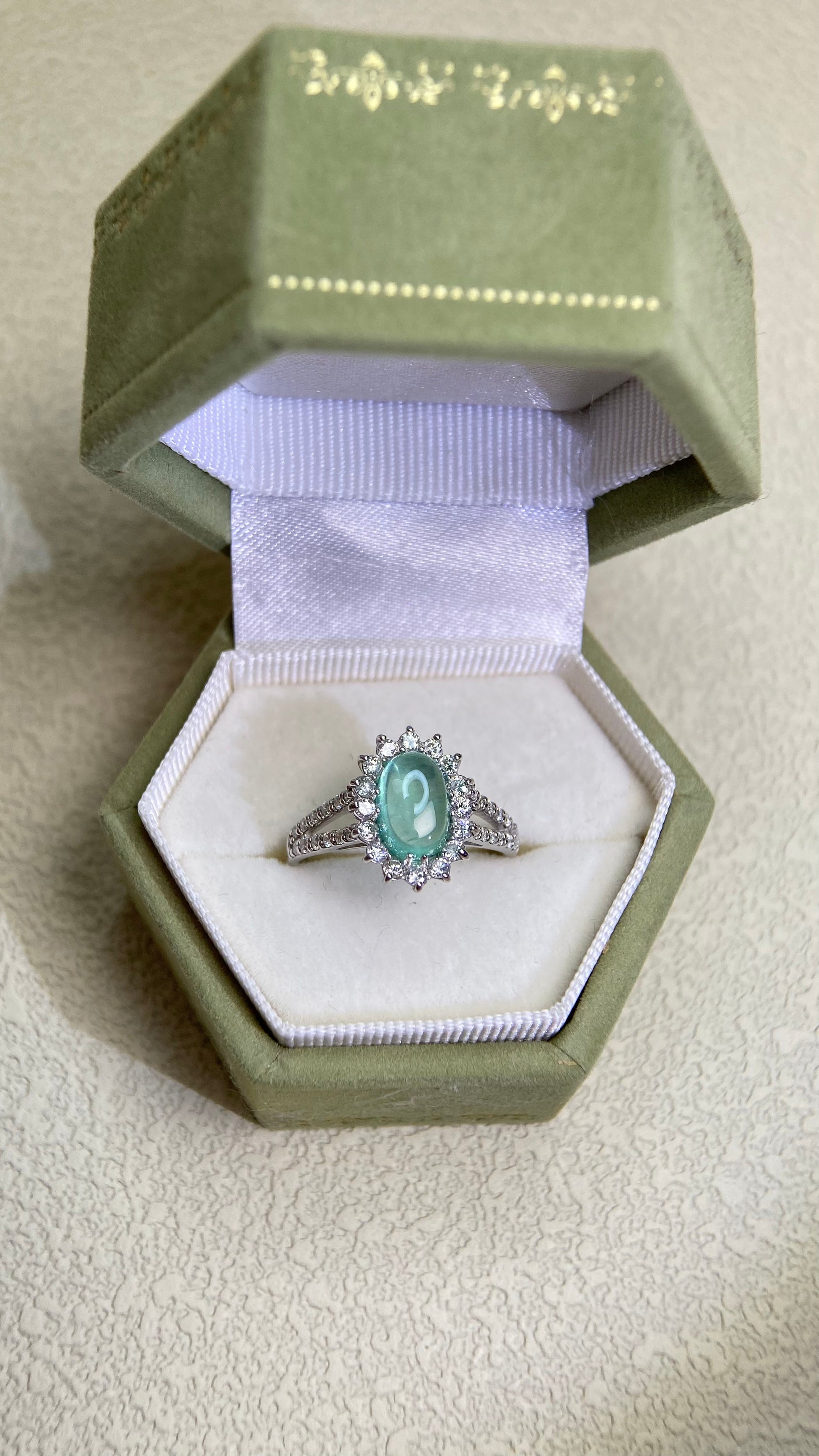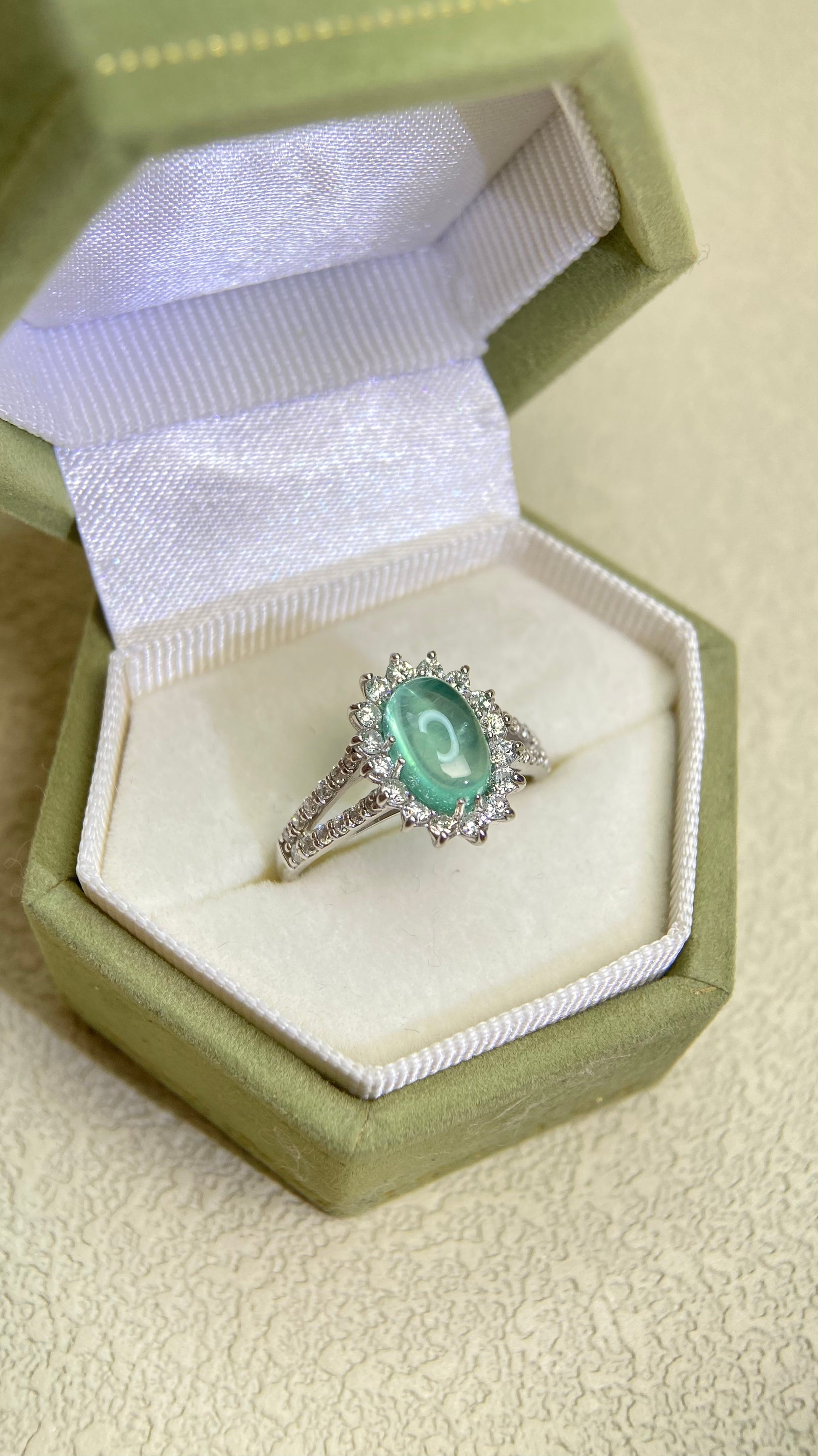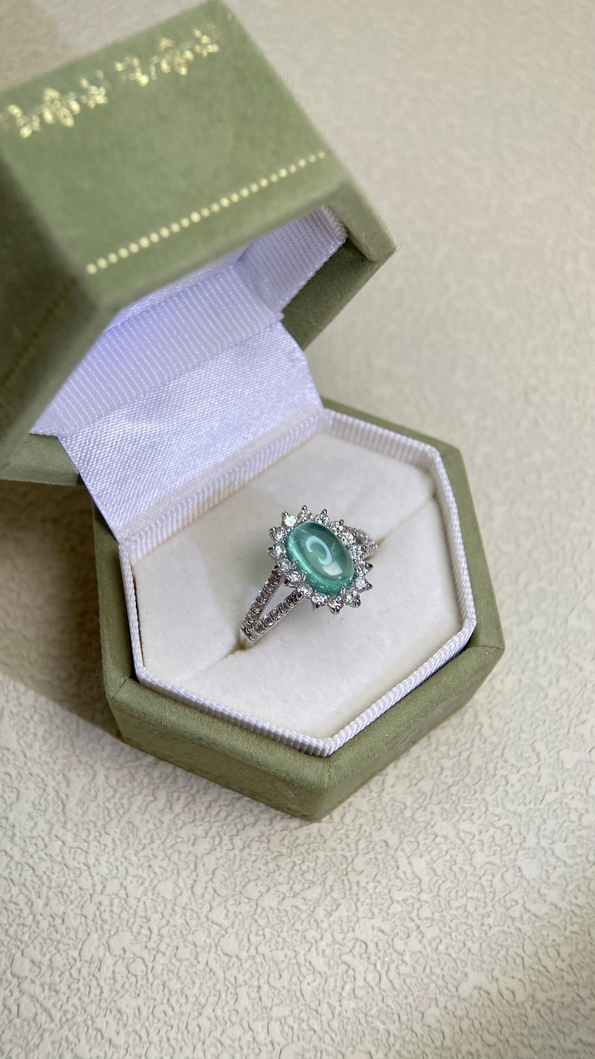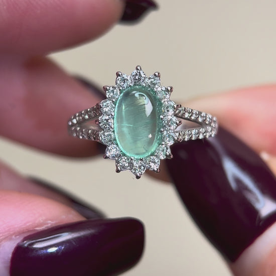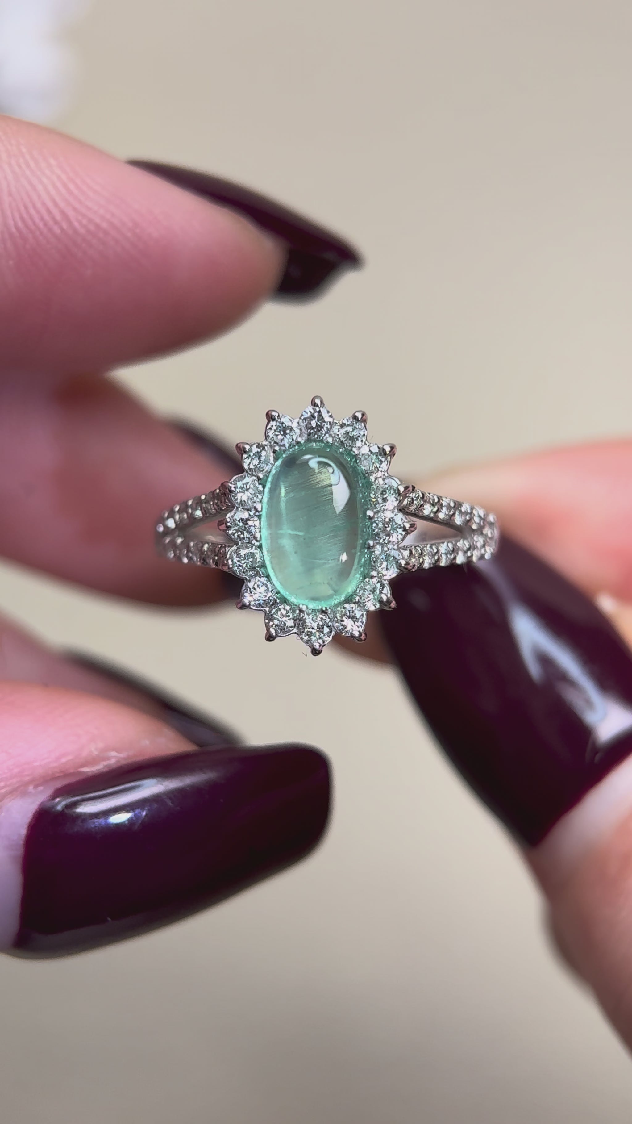 Pt950プラチナ&キャッツアイクリソベリル&ダイヤモンドリング|キャッツアイクリソベリル1.406カラット|ダイヤモンド0.48カラット|日本製ヴィンテージエステートジュエリー-BOML