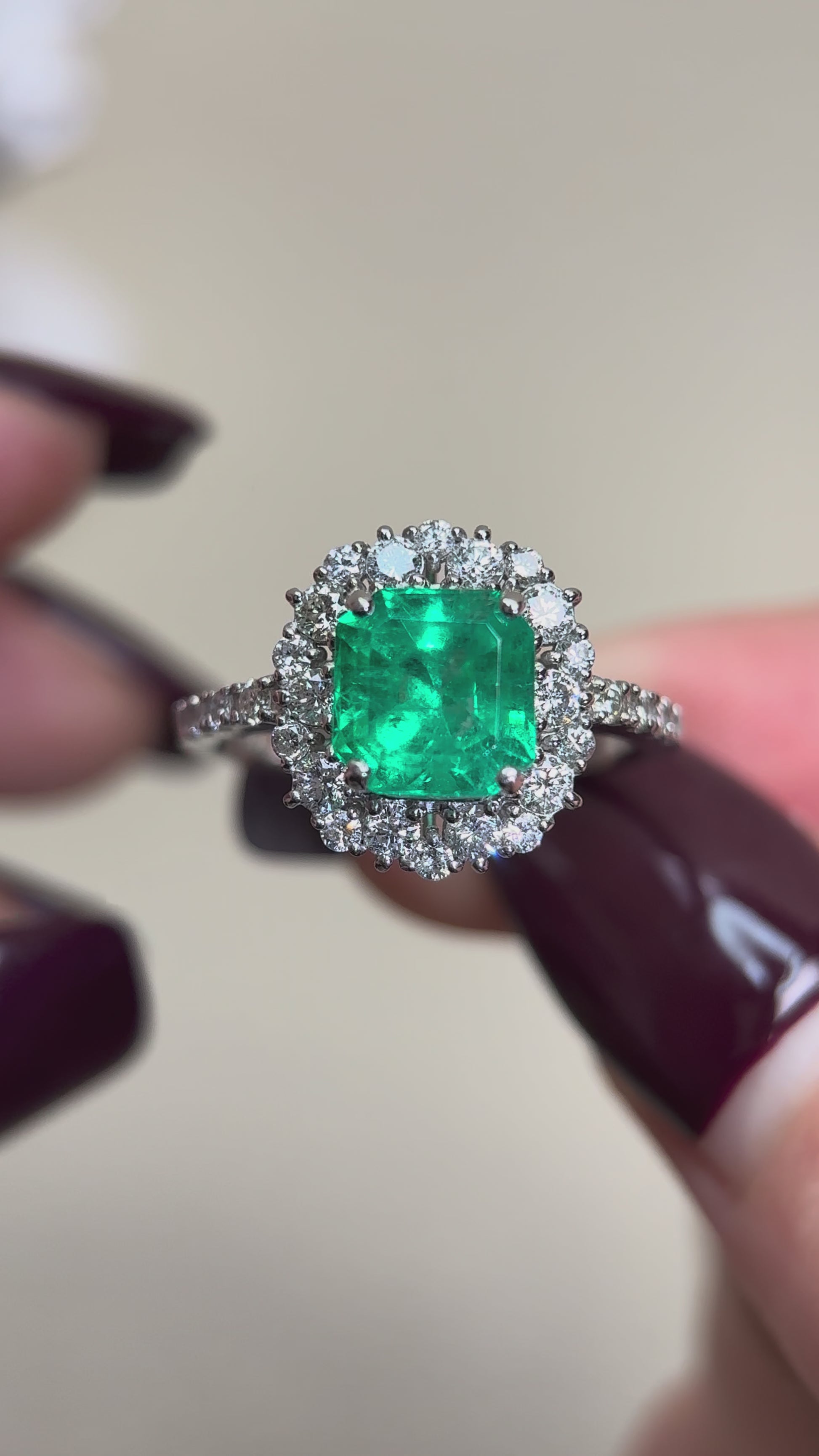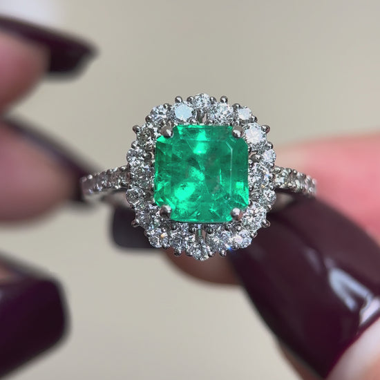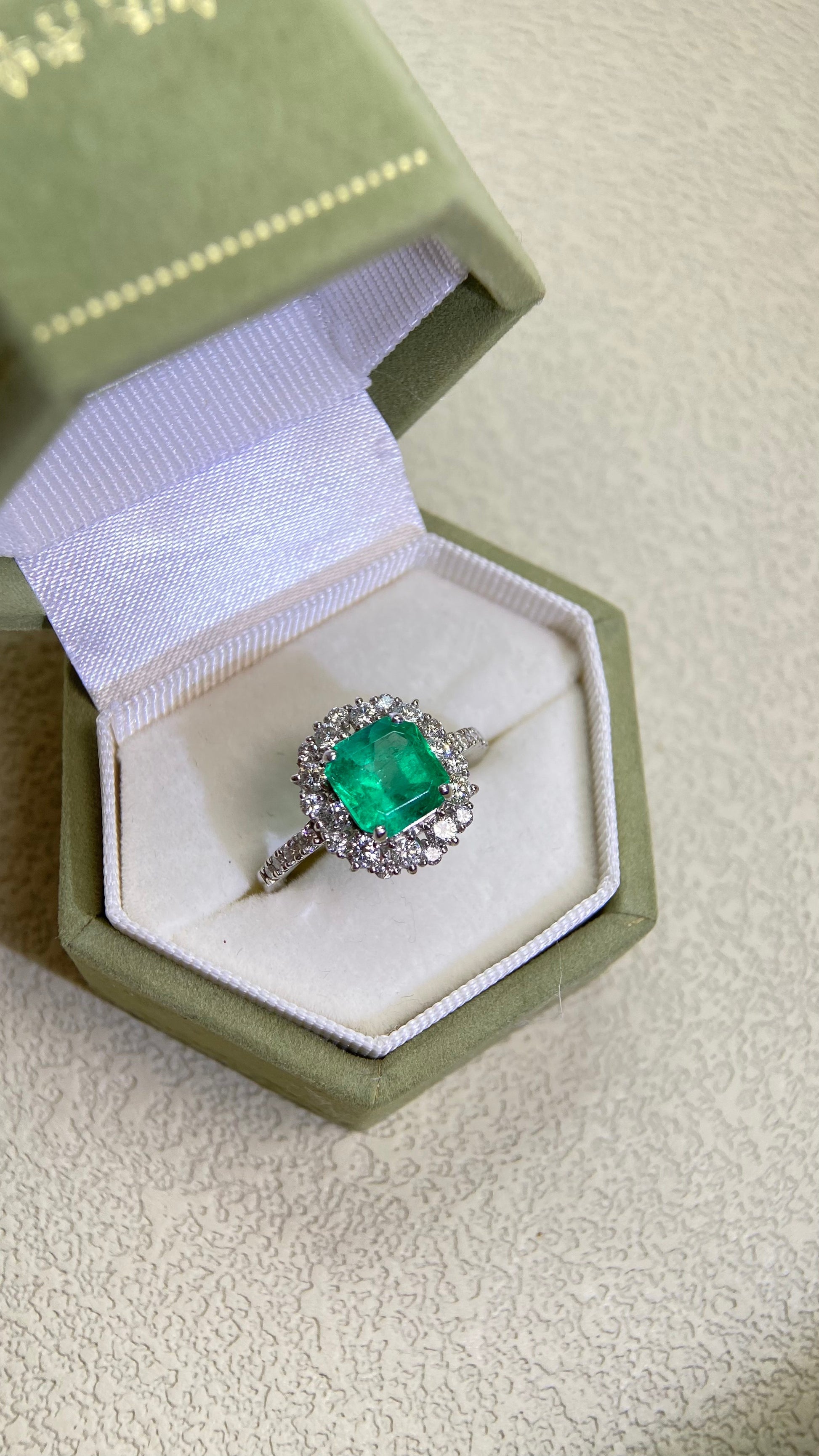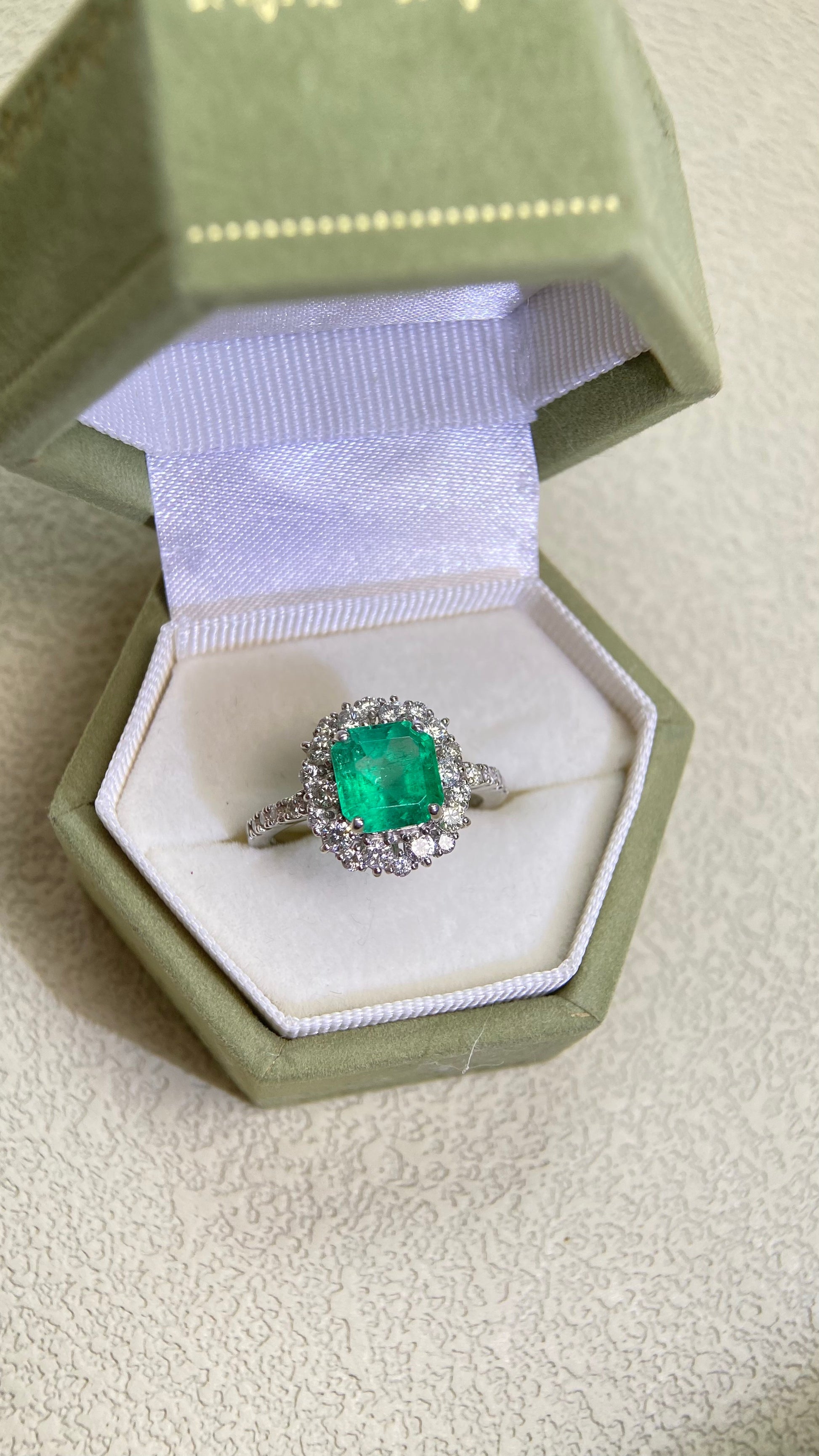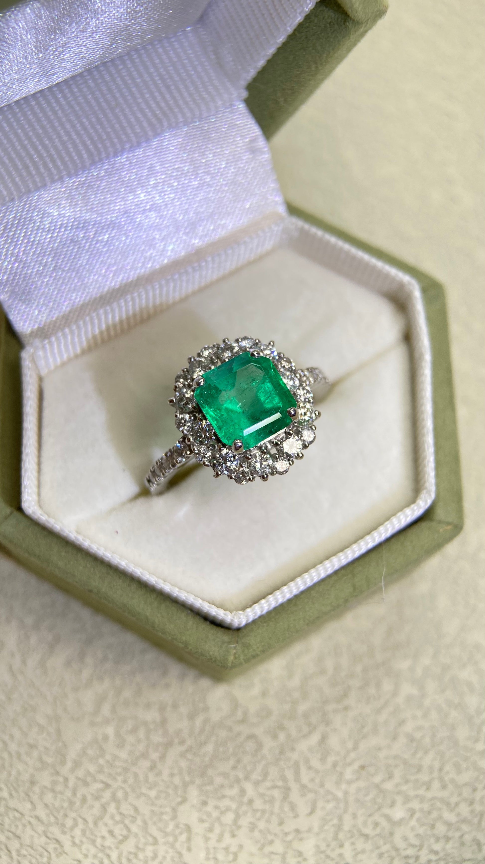 Pt950プラチナ&エメラルド&ダイヤモンドリング|エメラルド1.73カラット|ダイヤモンド0.64カラット|日本のヴィンテージエステートジュエリー-ACUL