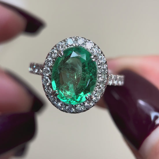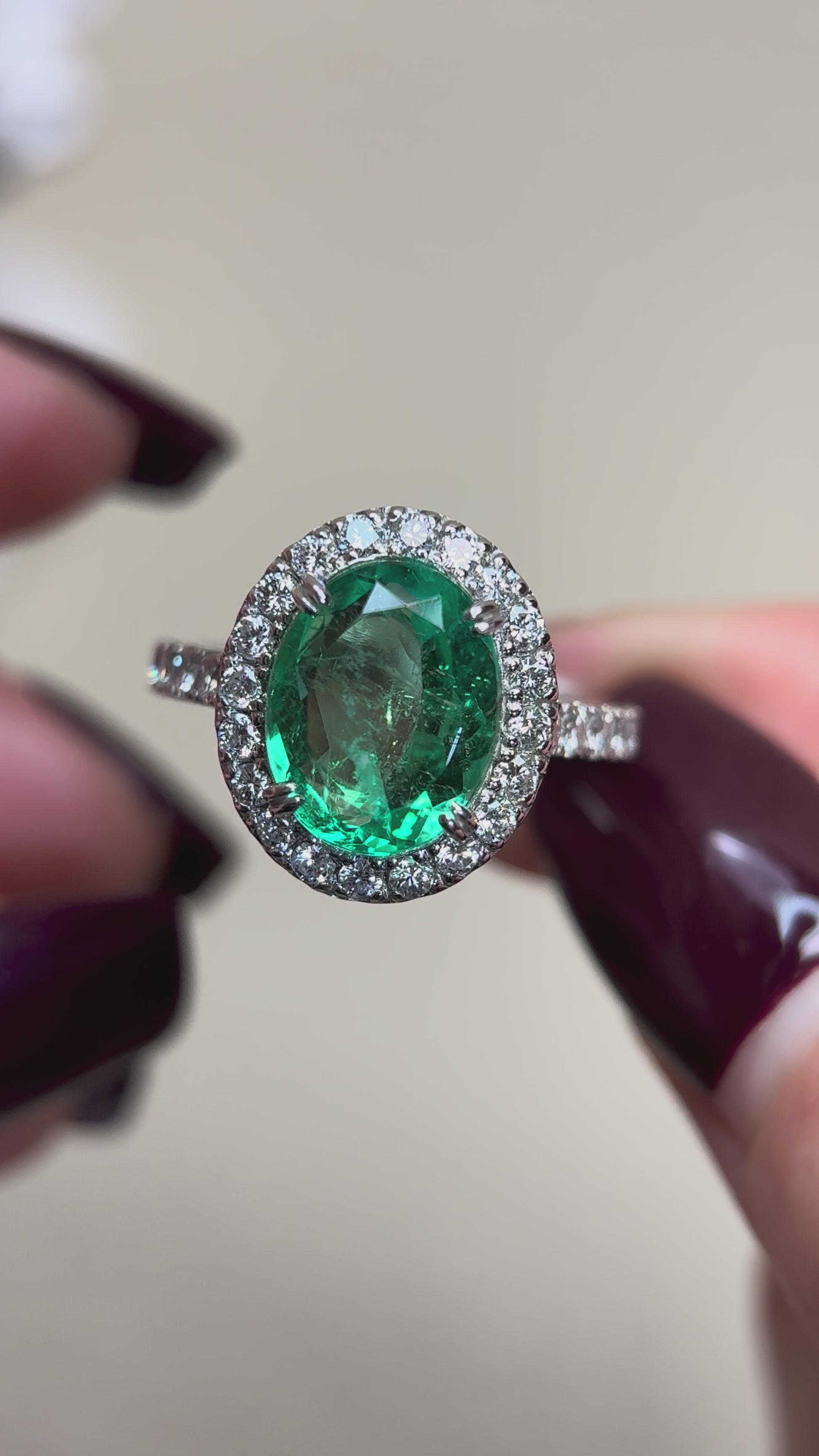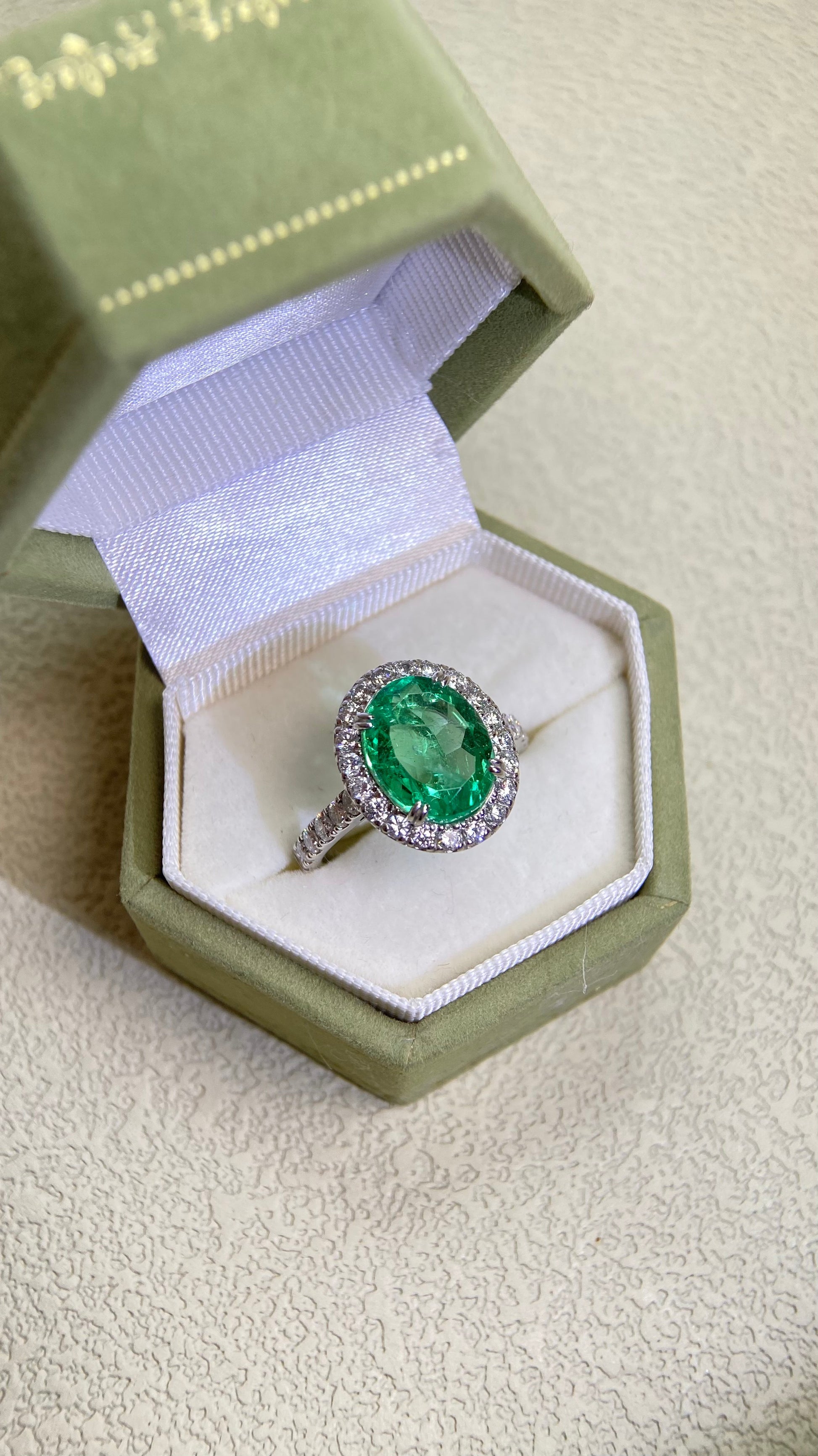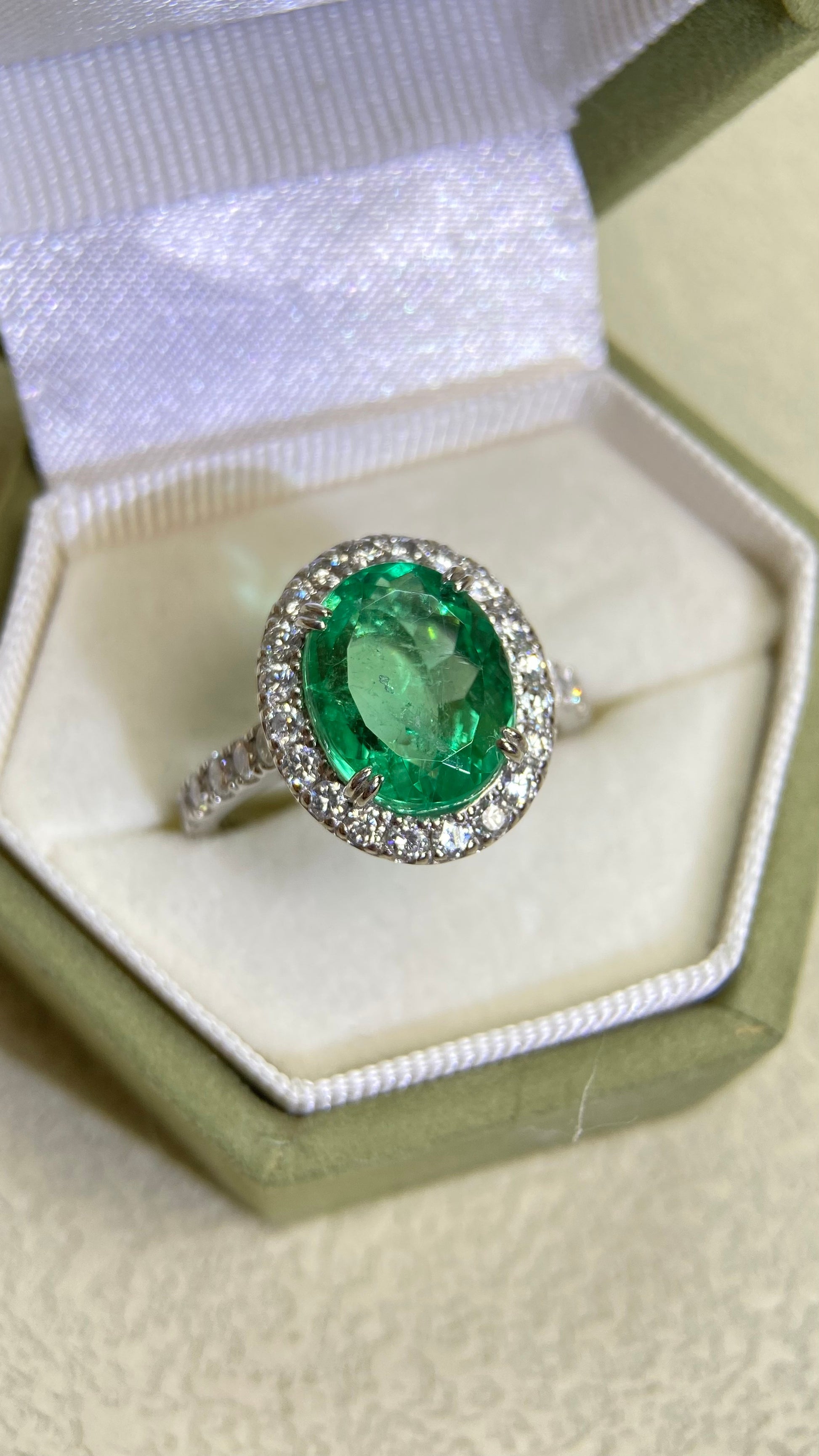 Pt950プラチナ&エメラルド&ダイヤモンドリング|エメラルド3.41カラット|ダイヤモンド0.82カラット|日本製ヴィンテージエステートジュエリー-BBZQ