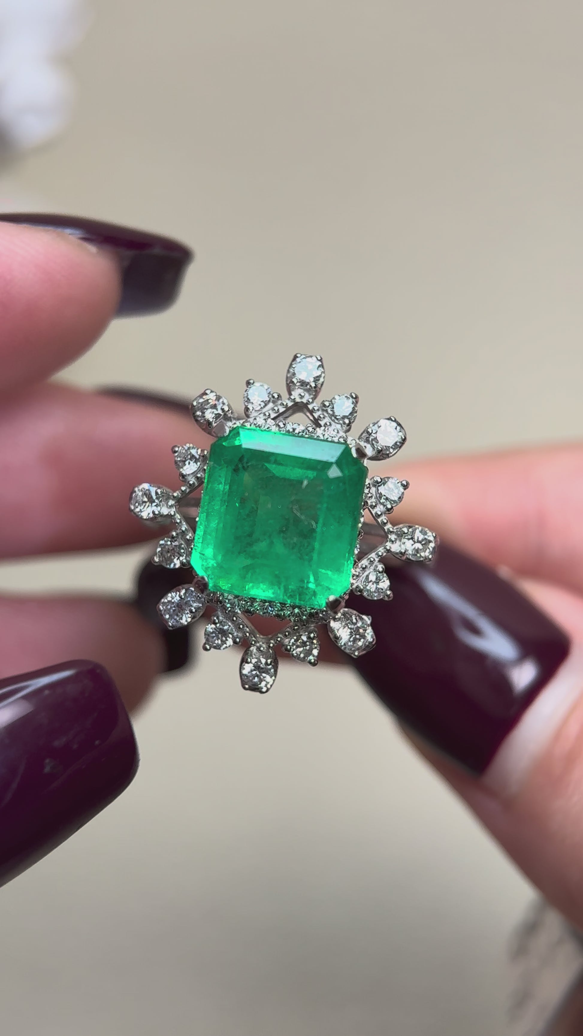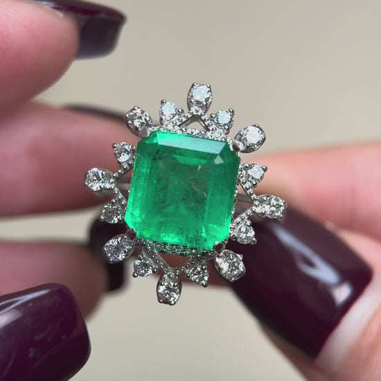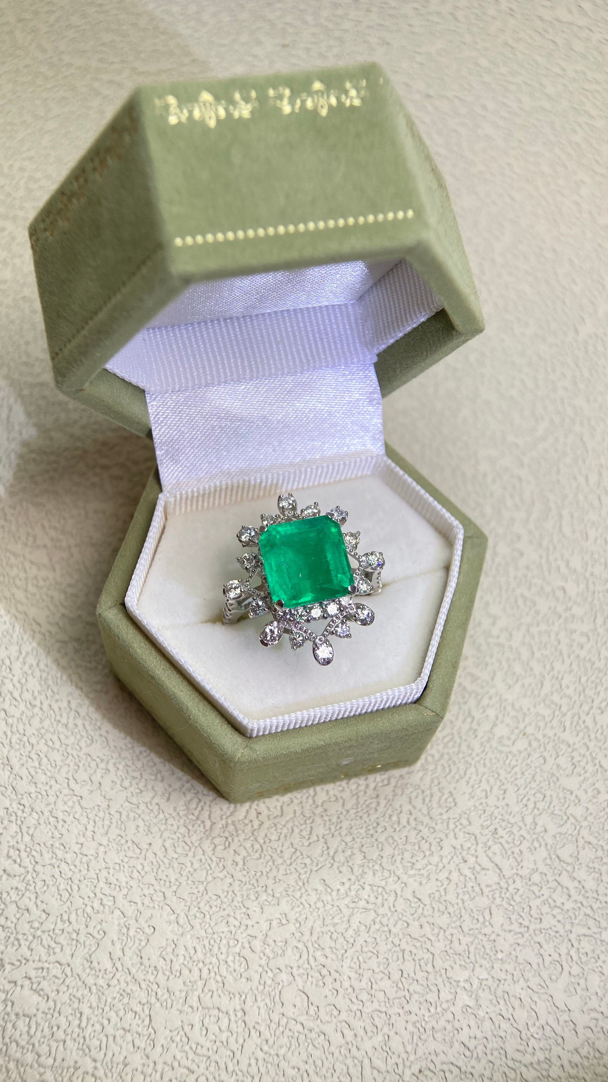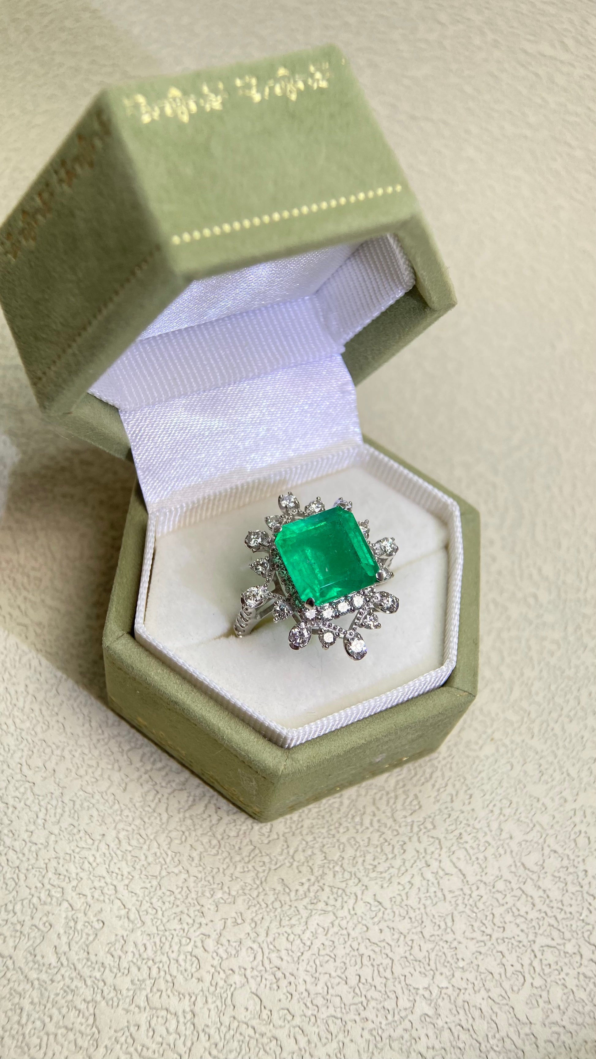 Pt950プラチナ&エメラルド&ダイヤモンドリング|エメラルド4.41カラット|ダイヤモンド1.08カラット|日本製ヴィンテージエステートジュエリー-BMZO