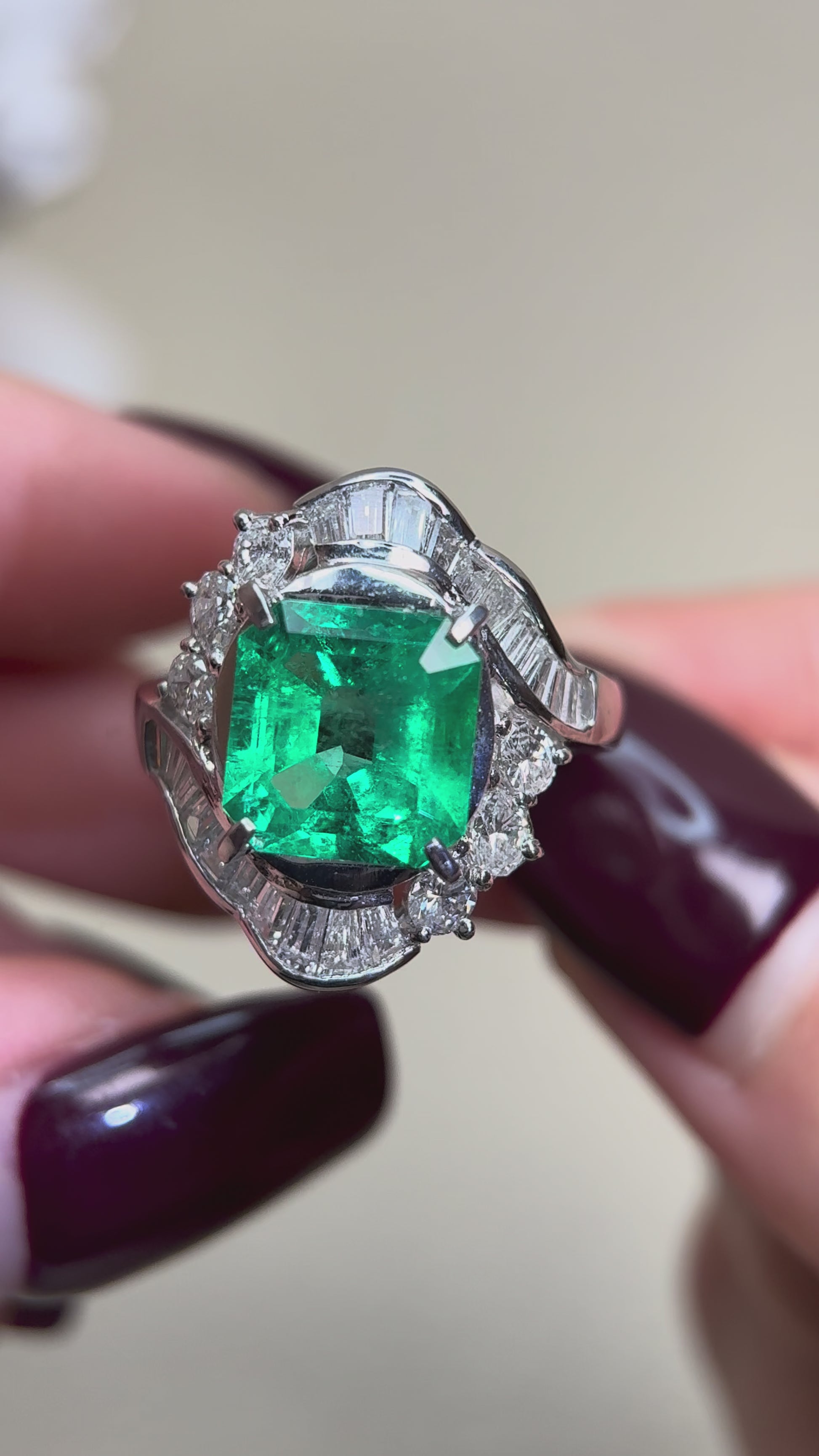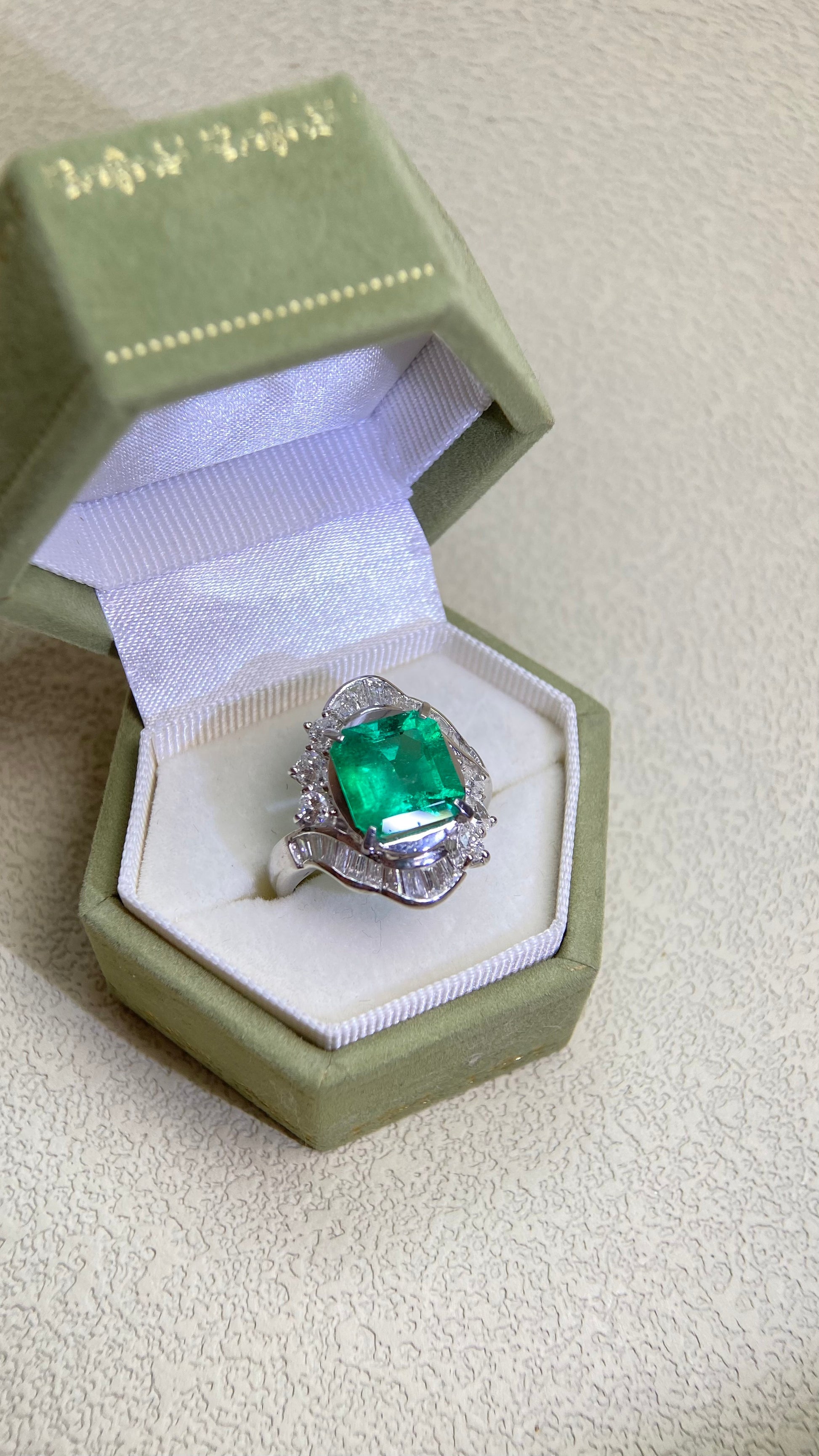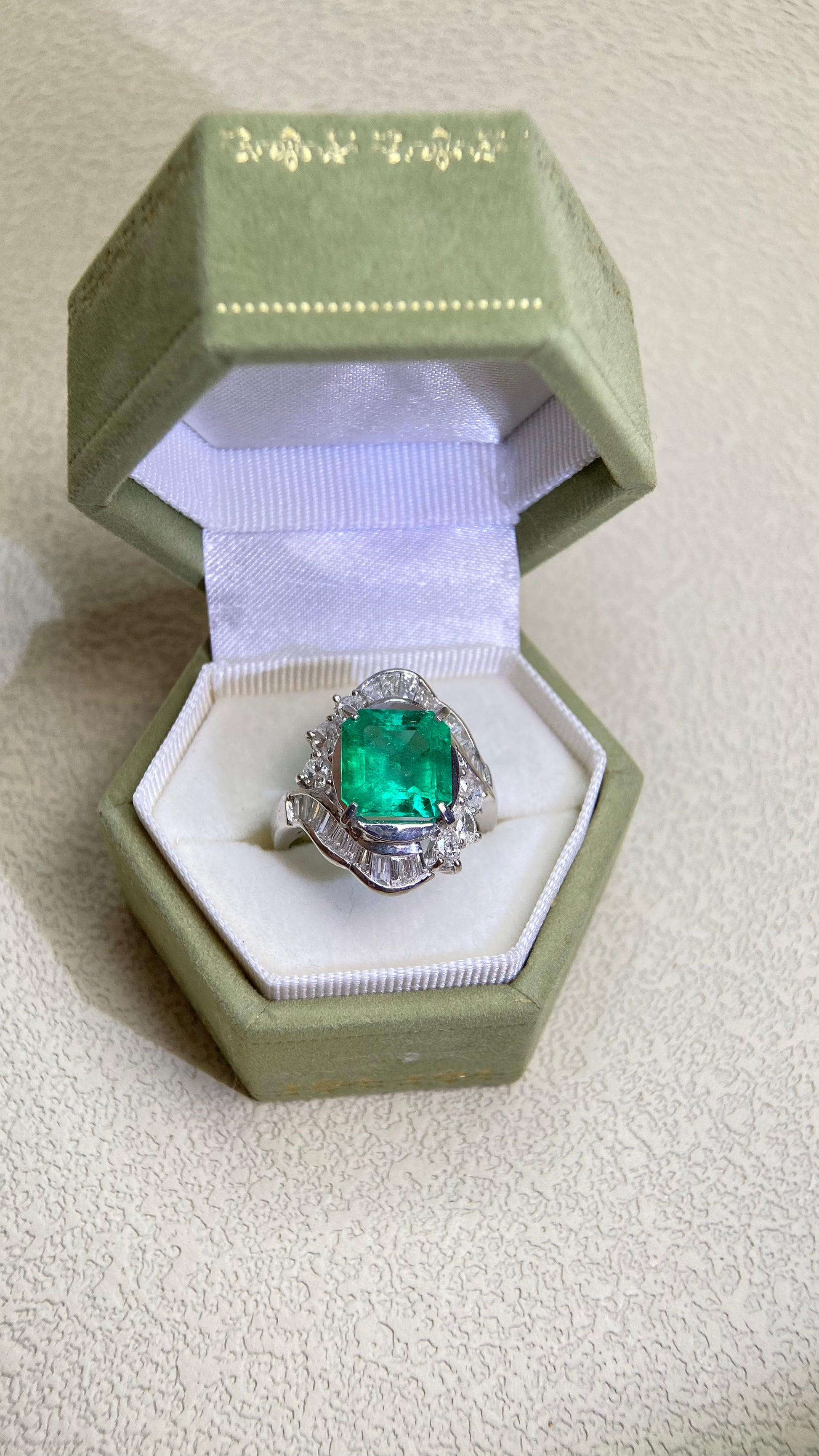 Pt850プラチナ&エメラルド&ダイヤモンドリング|エメラルド3.01カラット|ダイヤモンド1.48カラット|コロンビア|日本製ヴィンテージエステートジュエリー-BLNH