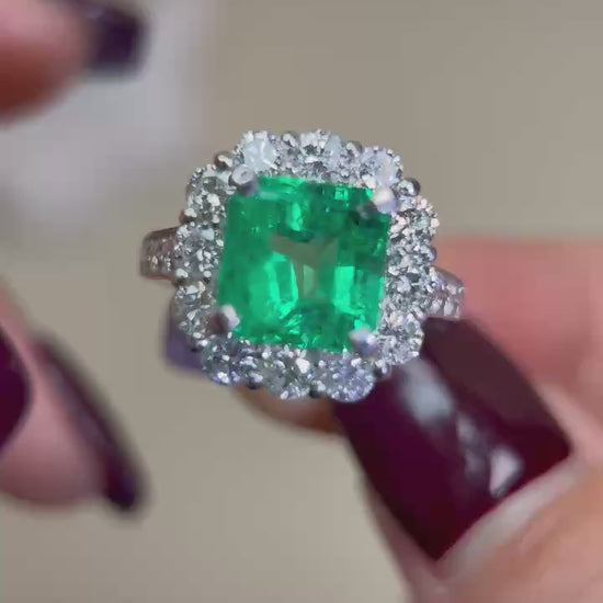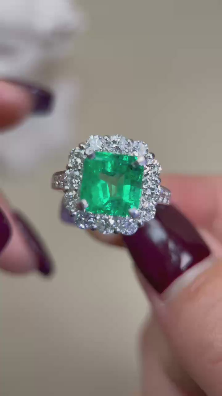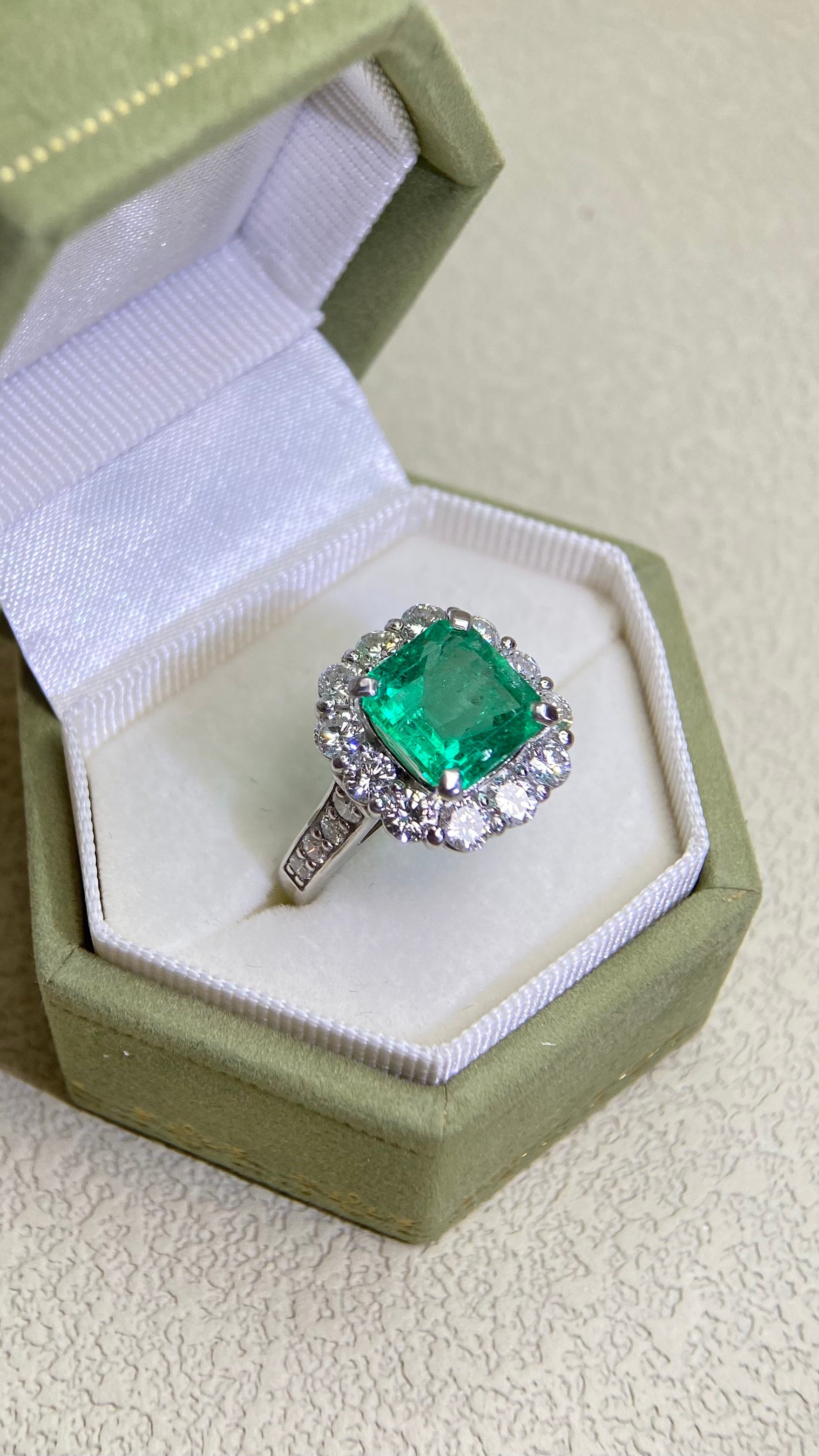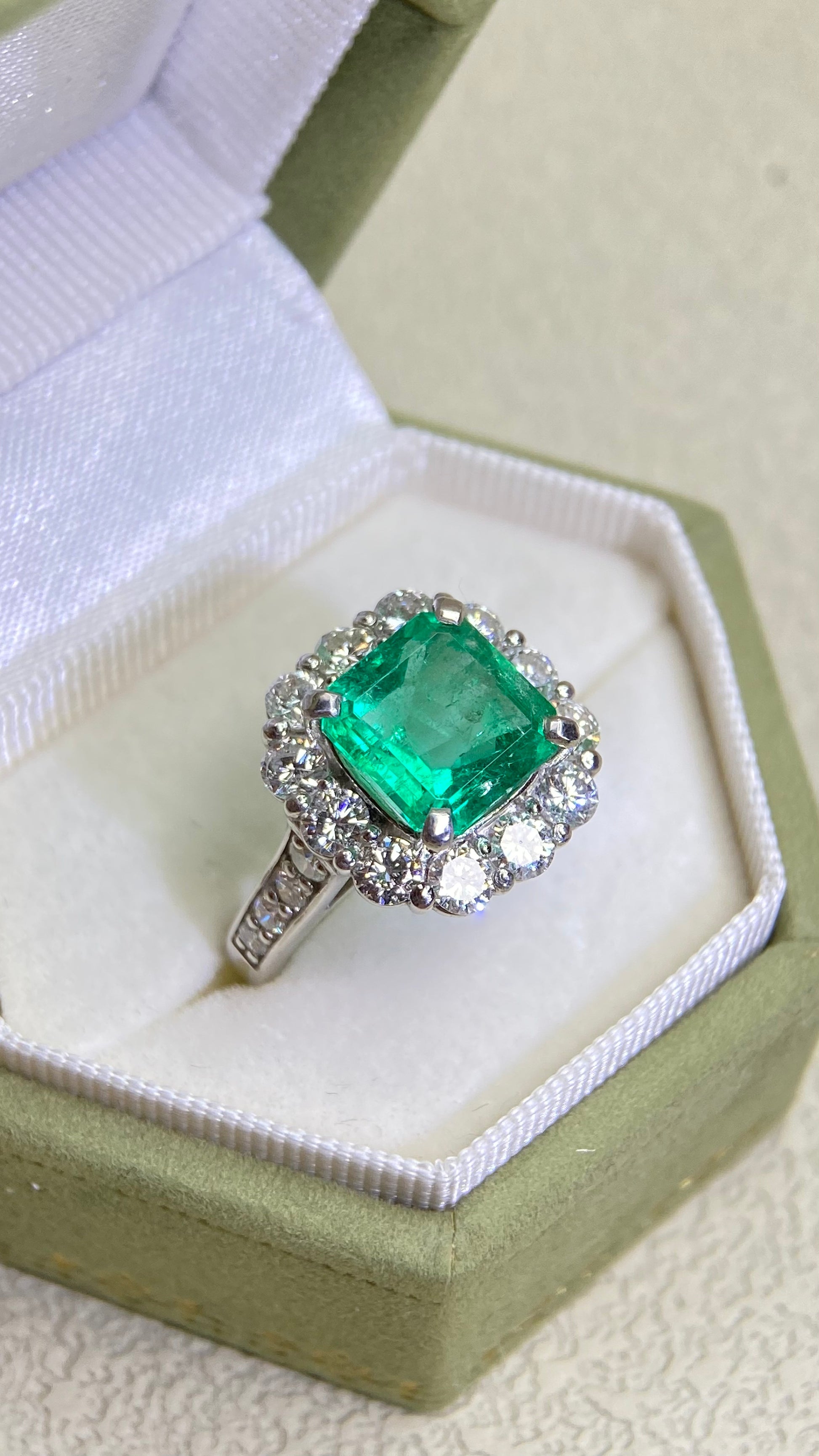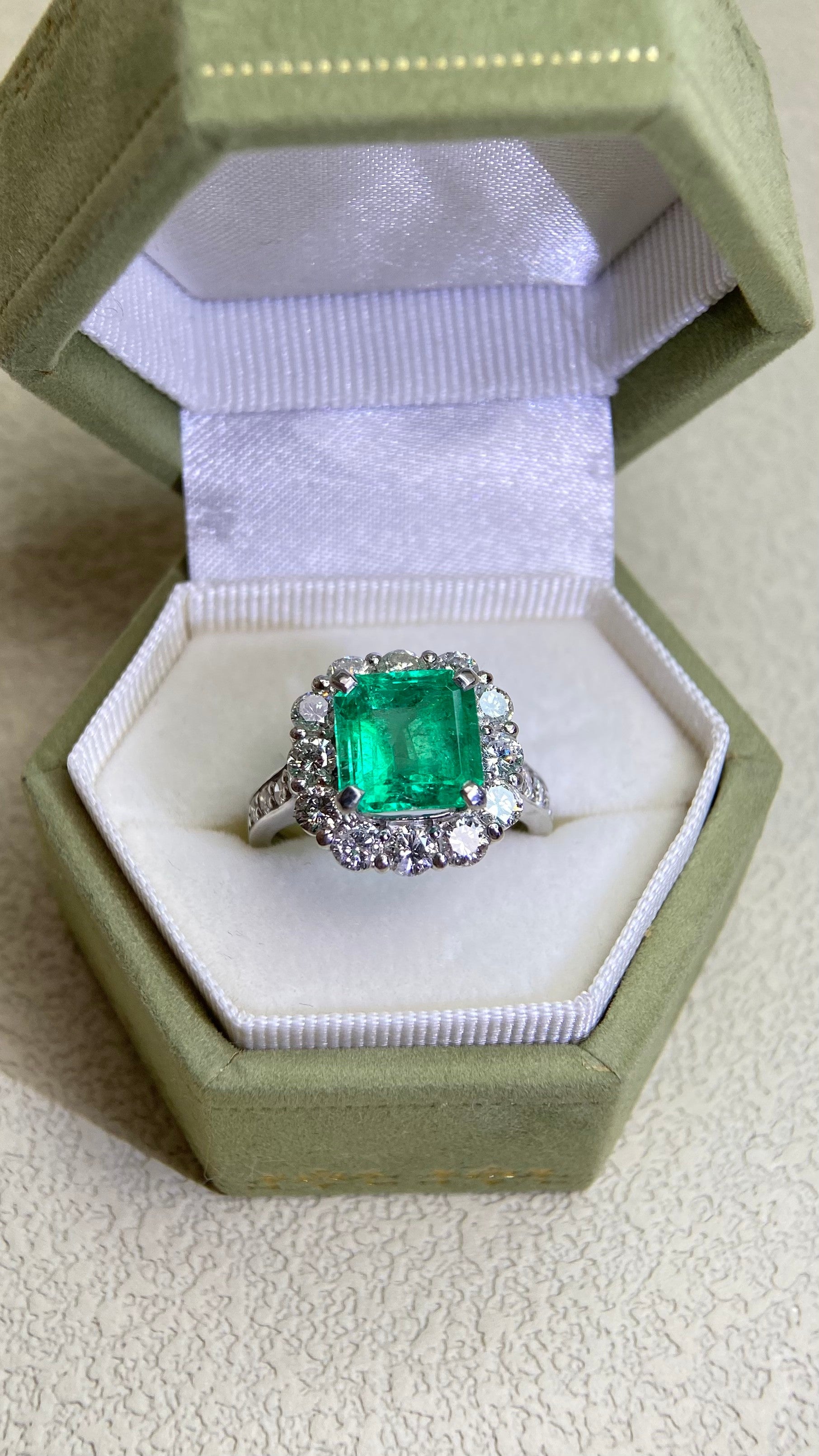 Pt950プラチナ&エメラルド&ダイヤモンドリング|エメラルド2.99カラット|ダイヤモンド1.51カラット|日本製ヴィンテージエステートジュエリー-BDFJ