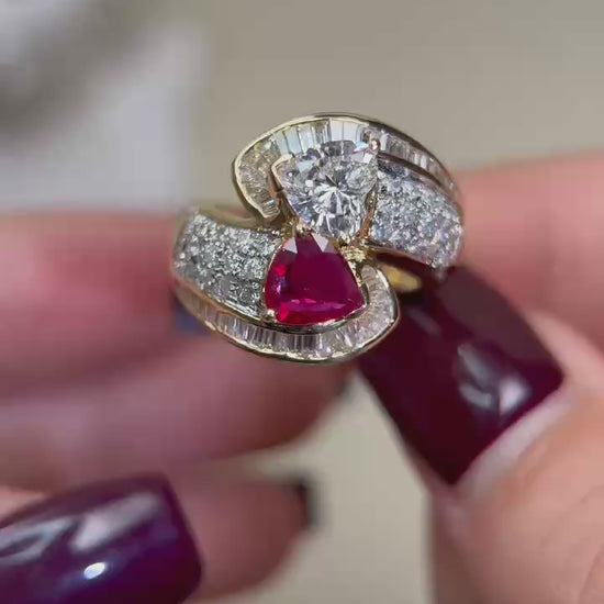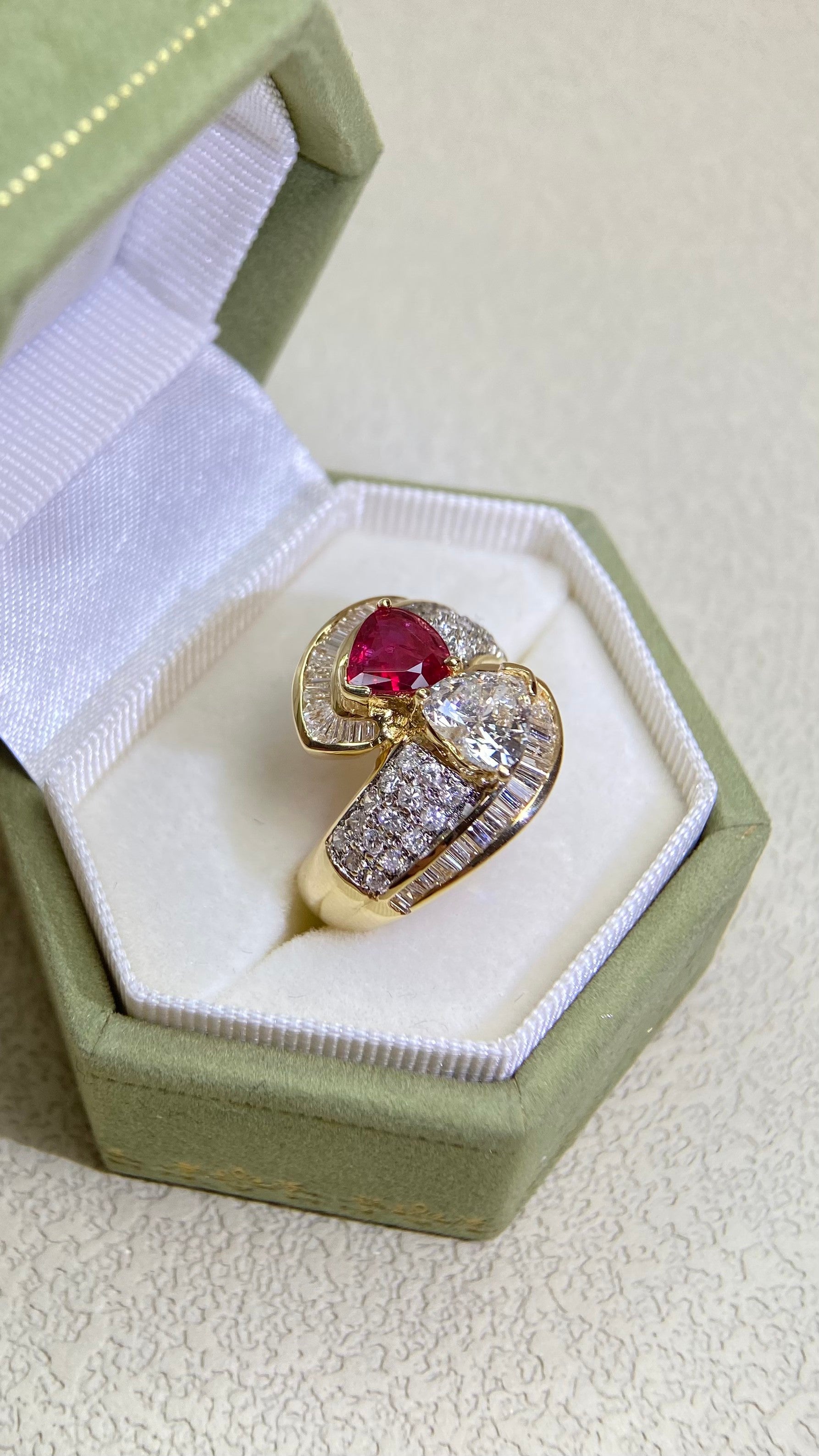 K18 Gold&Ruby and Diamond Ring | Ruby / Diamond 0.80ct/0.701ct | Japanese Vintage Estate Jewelry-BRCI