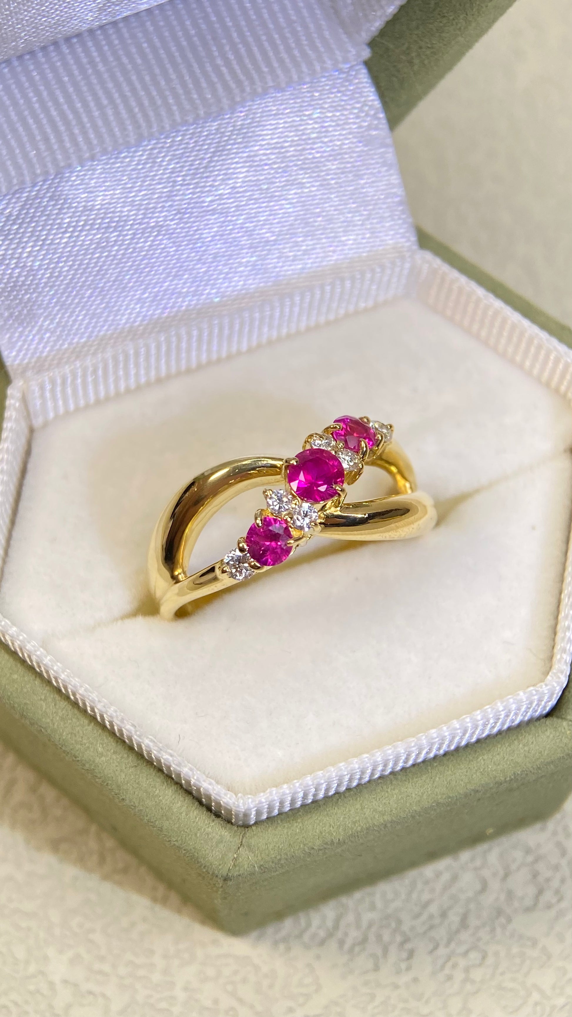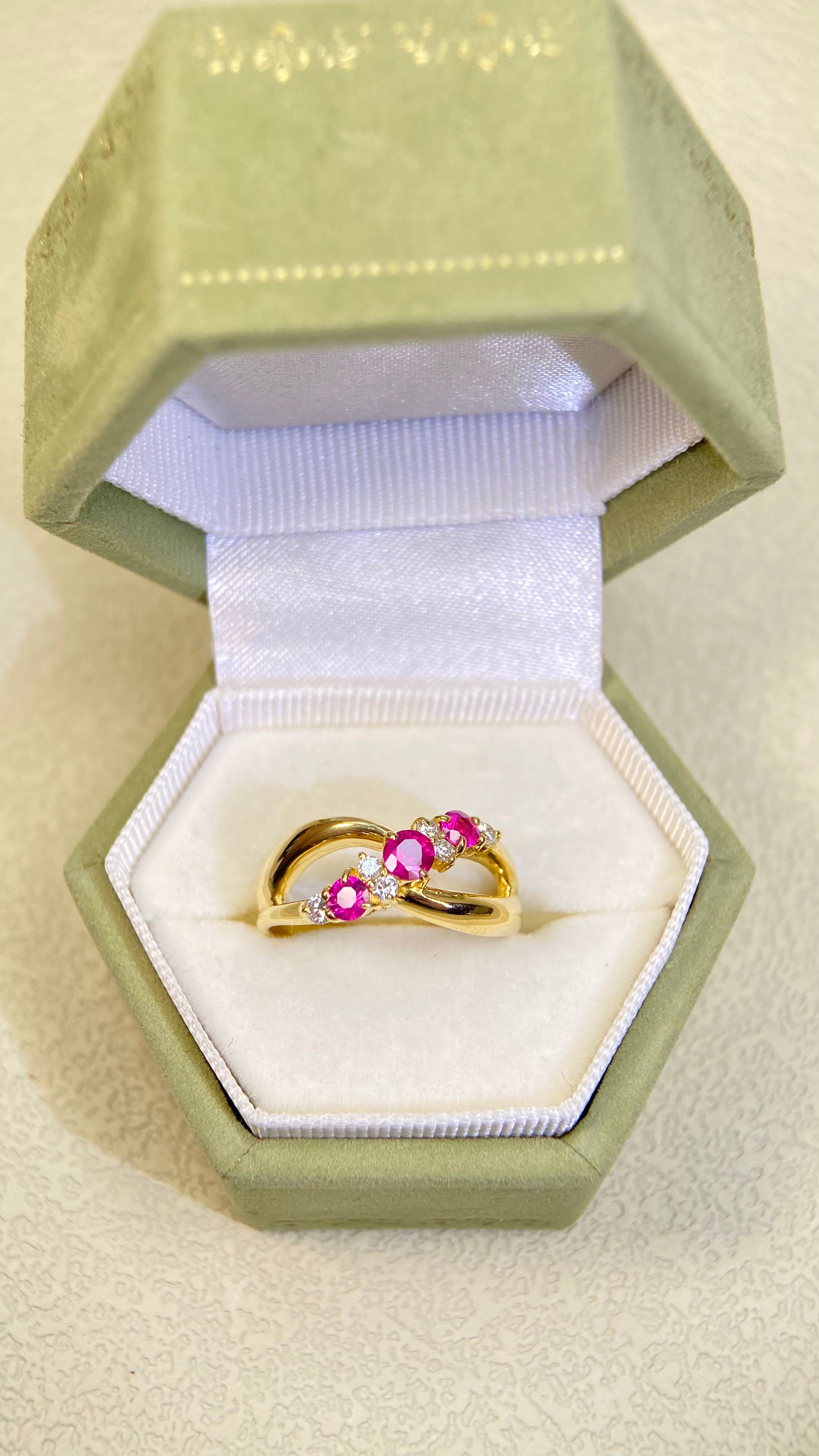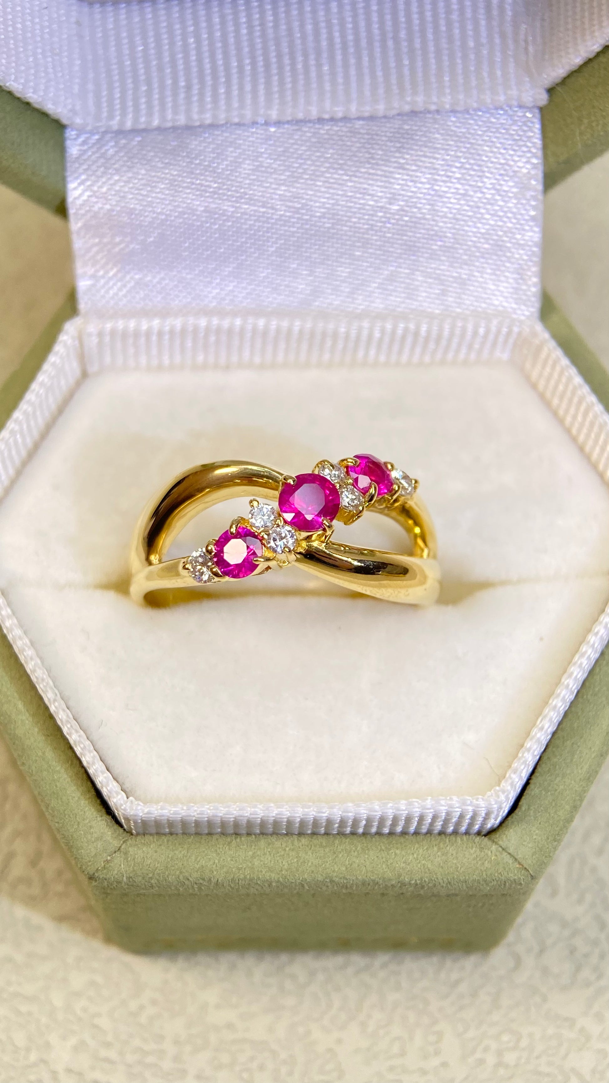 18K Gold&Ruby&Diamond Ring| Rubys:0.40ct | Diamonds:0.12ct | Japanese Vintage Estate Jewelry -BRYZ2710