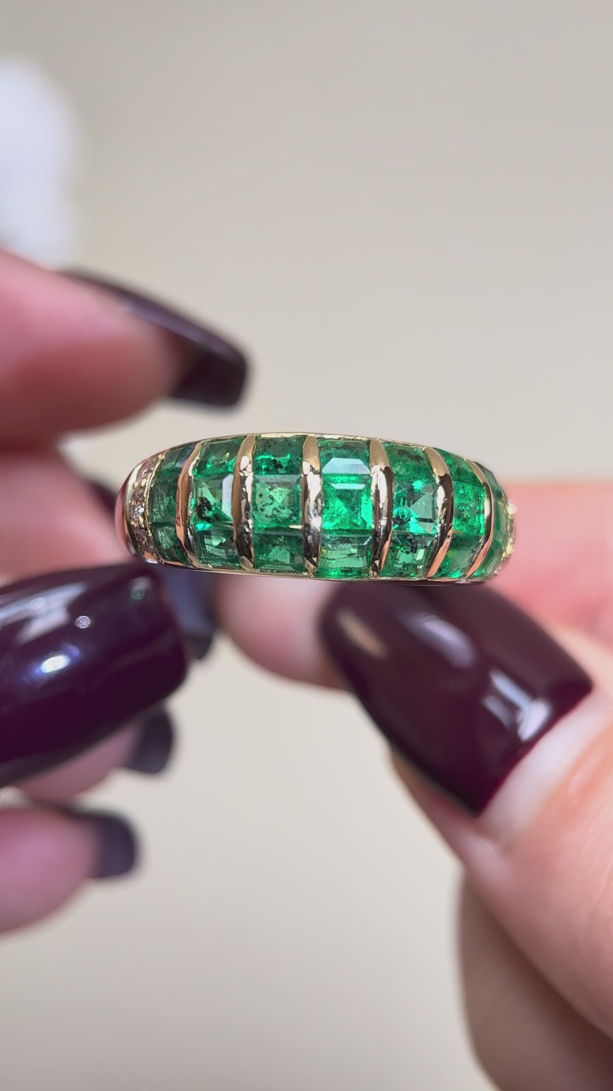K18 Gold&Emerald Diamond Ring | Japanese Vintage Estate Jewelry-BLSL