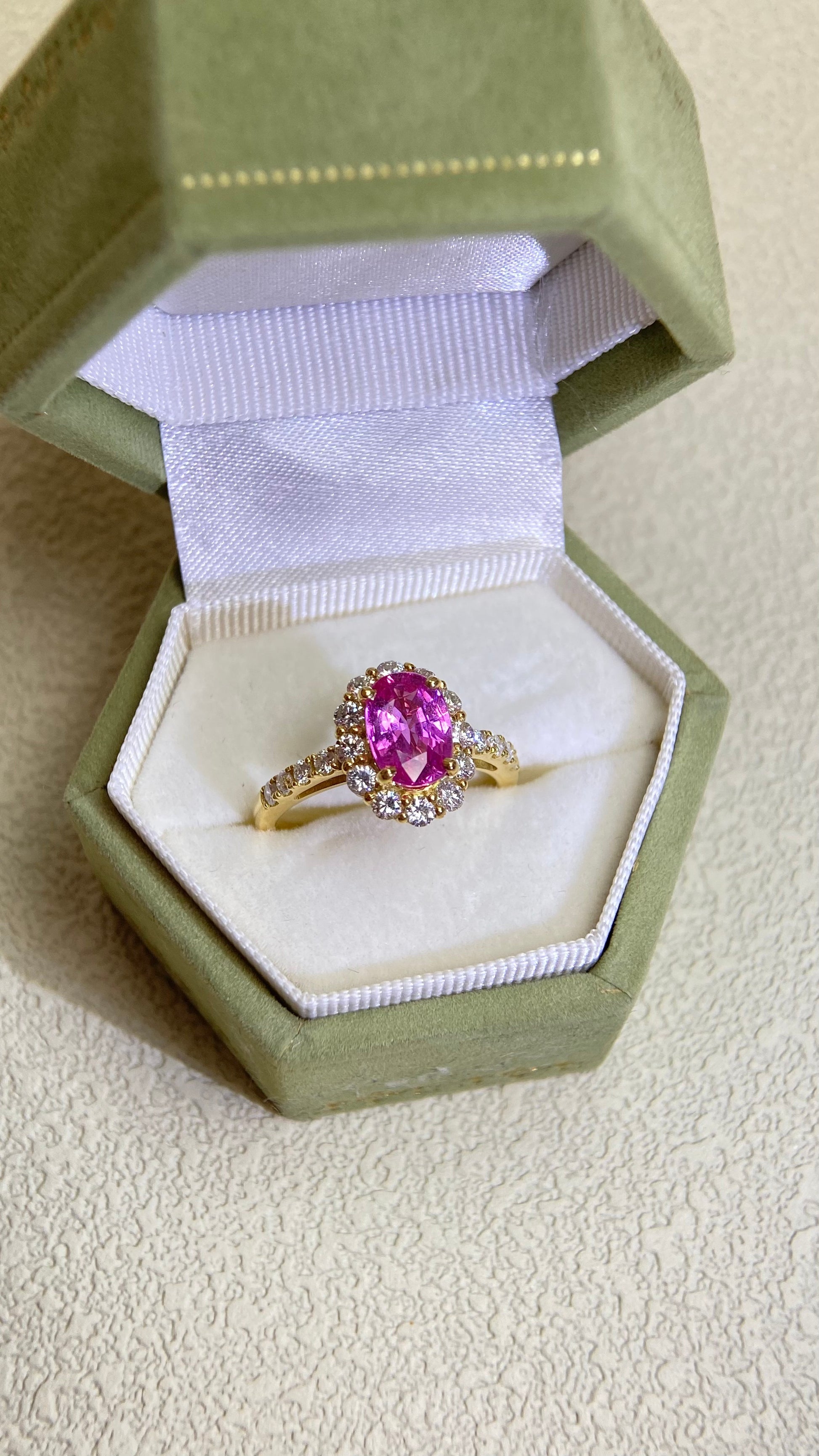 K18 Gold &Pink Sappphire and Diamond Ring | Pink Sappphire 1.526ct | Diamond 0.63ct | No Heat | Japanese Vintage Estate Jewelry-BPXP