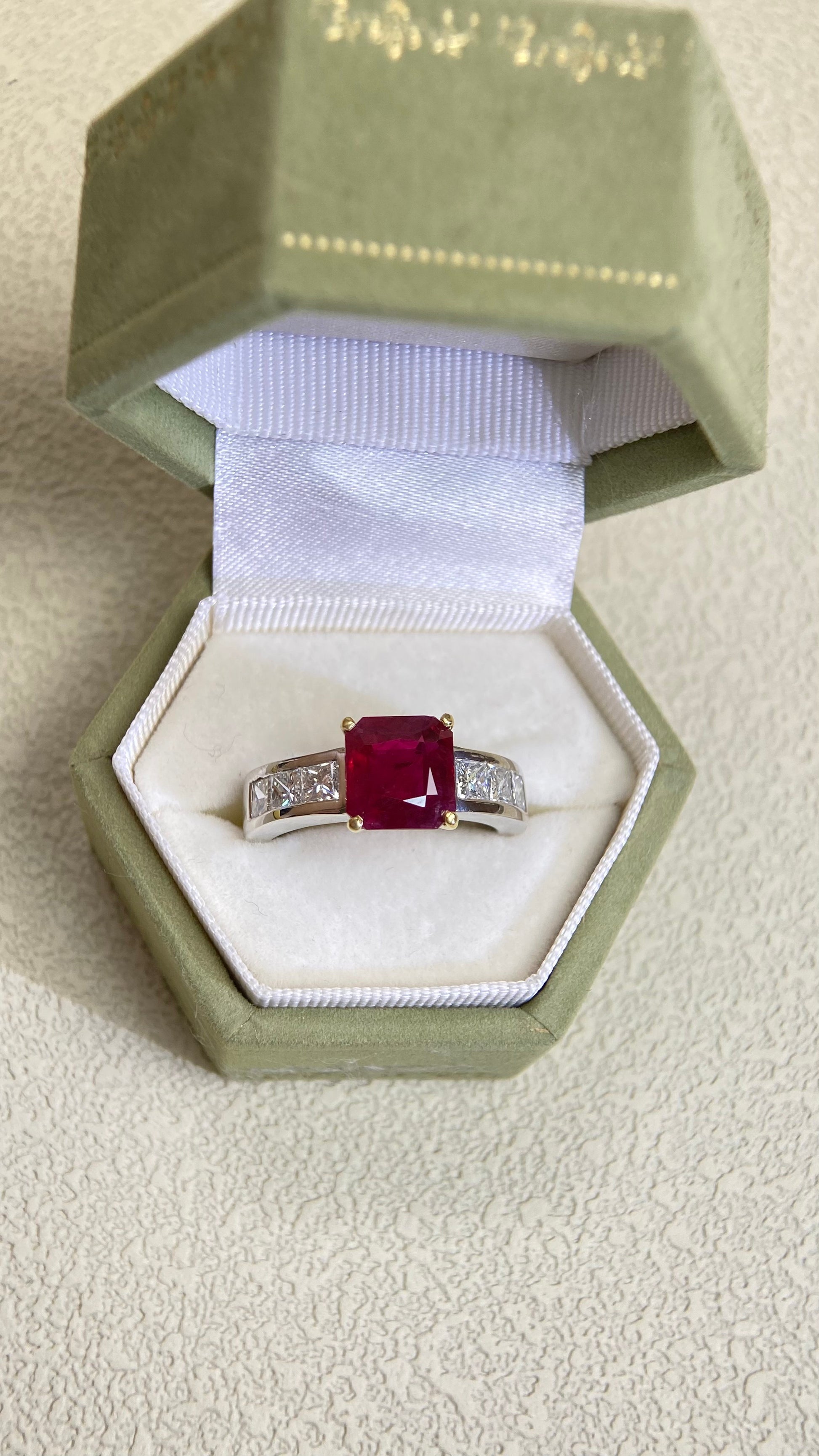 K18 Gold/PT900 Platinum&Ruby and Diamond Ring | Ruby 3.03ct | Diamond 1.02ct | Burma | Japanese Vintage Estate Jewelry-BQOC