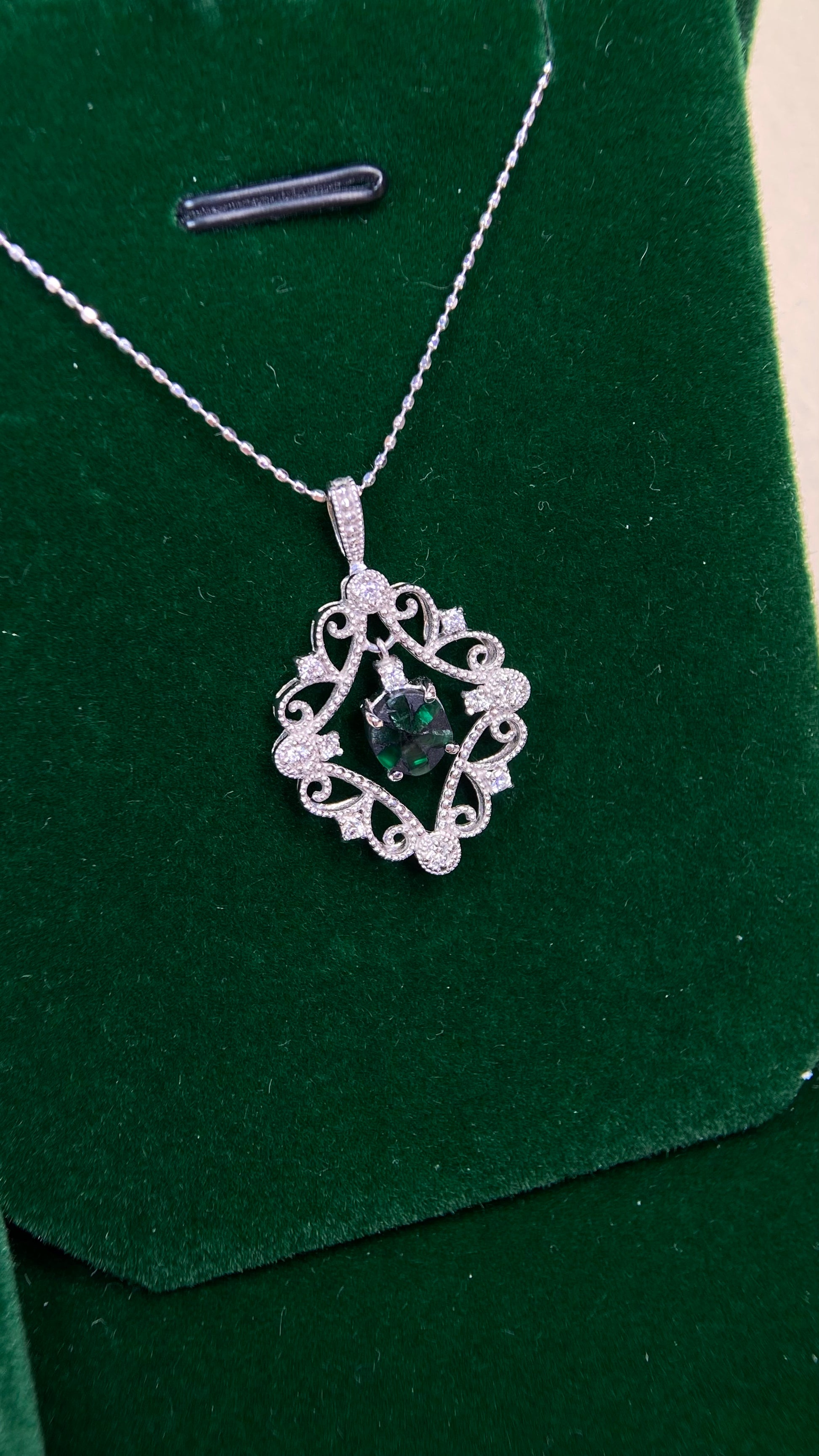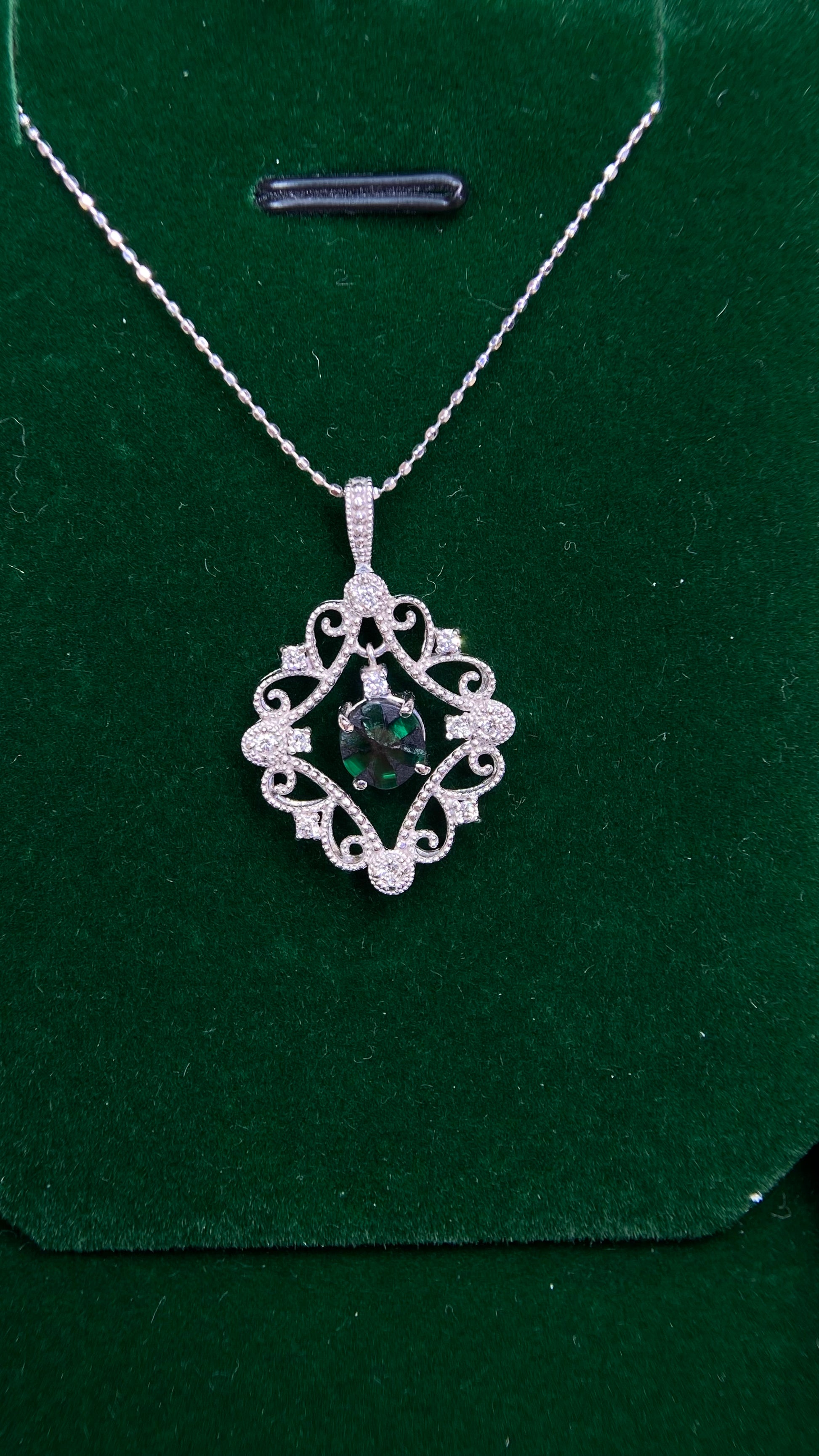 K18 White Gold&Emerald&Diamond Necklace| Trapiche Emerald: 0.57ct|Diamonds:0.14ct|Japanese Vintage Estate Jewelry -BPVU