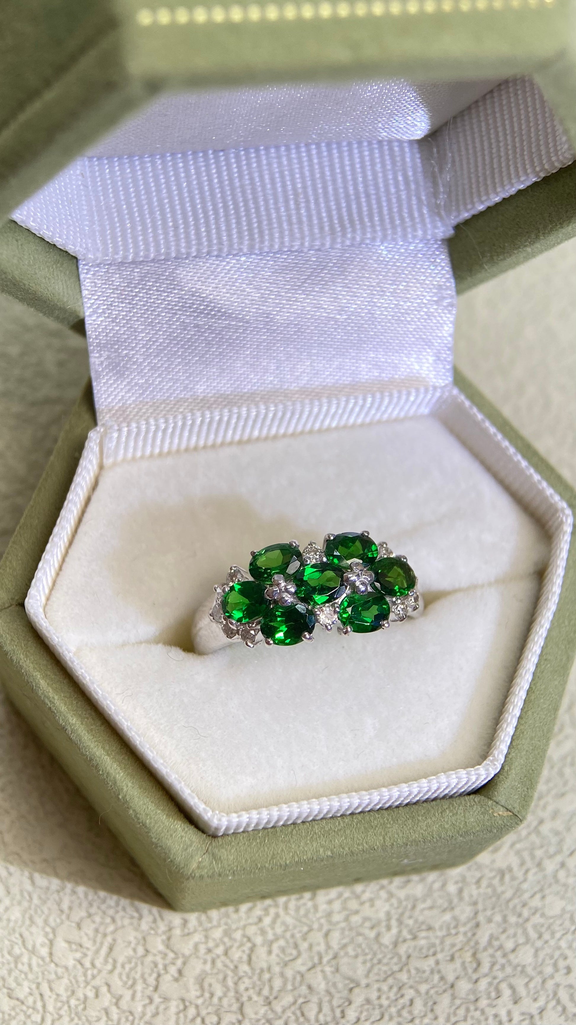 K18 White Gold&Green Garnet and Diamond Ring | Garnet 1.30ct | Diamond 0.15ct | Japanese Vintage Estate Jewelry-BGHW