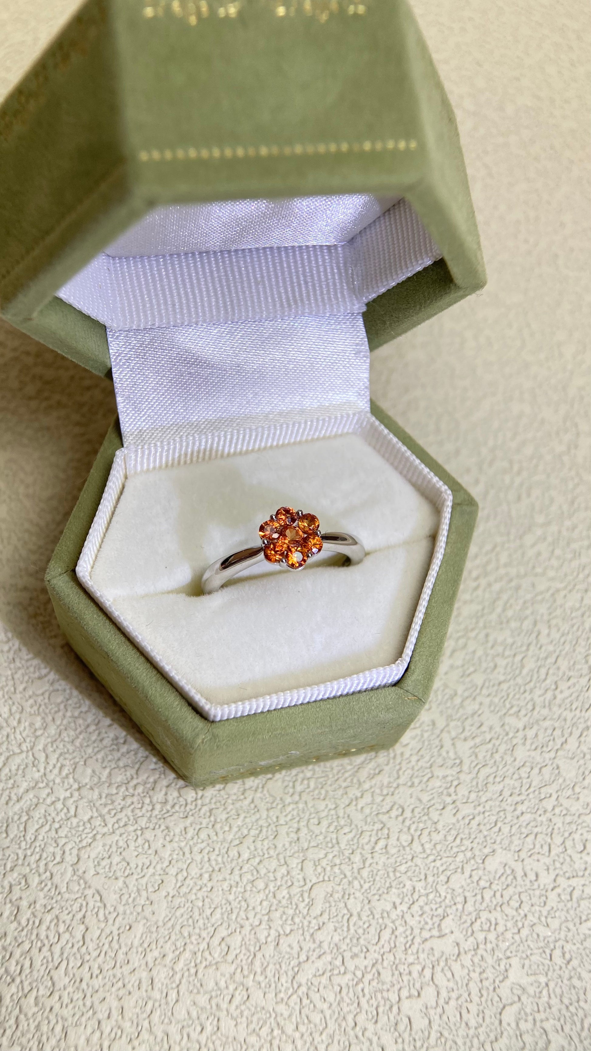 K18 White Gold&Orange Sapphire Ring | Orange Sapphire 0.40ct | Japanese Vintage Estate Jewelry-BKYD