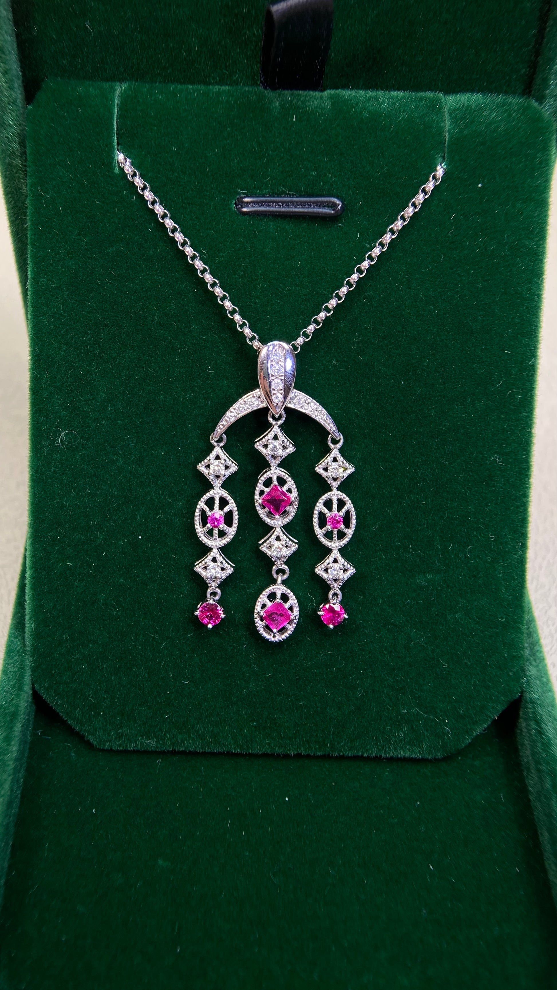 K18 White Gold&Ruby &Diamond Necklace| Rubys: 0.63ct|Diamonds: 0.20ct|Japanese Vintage Estate Jewelry -BOTK