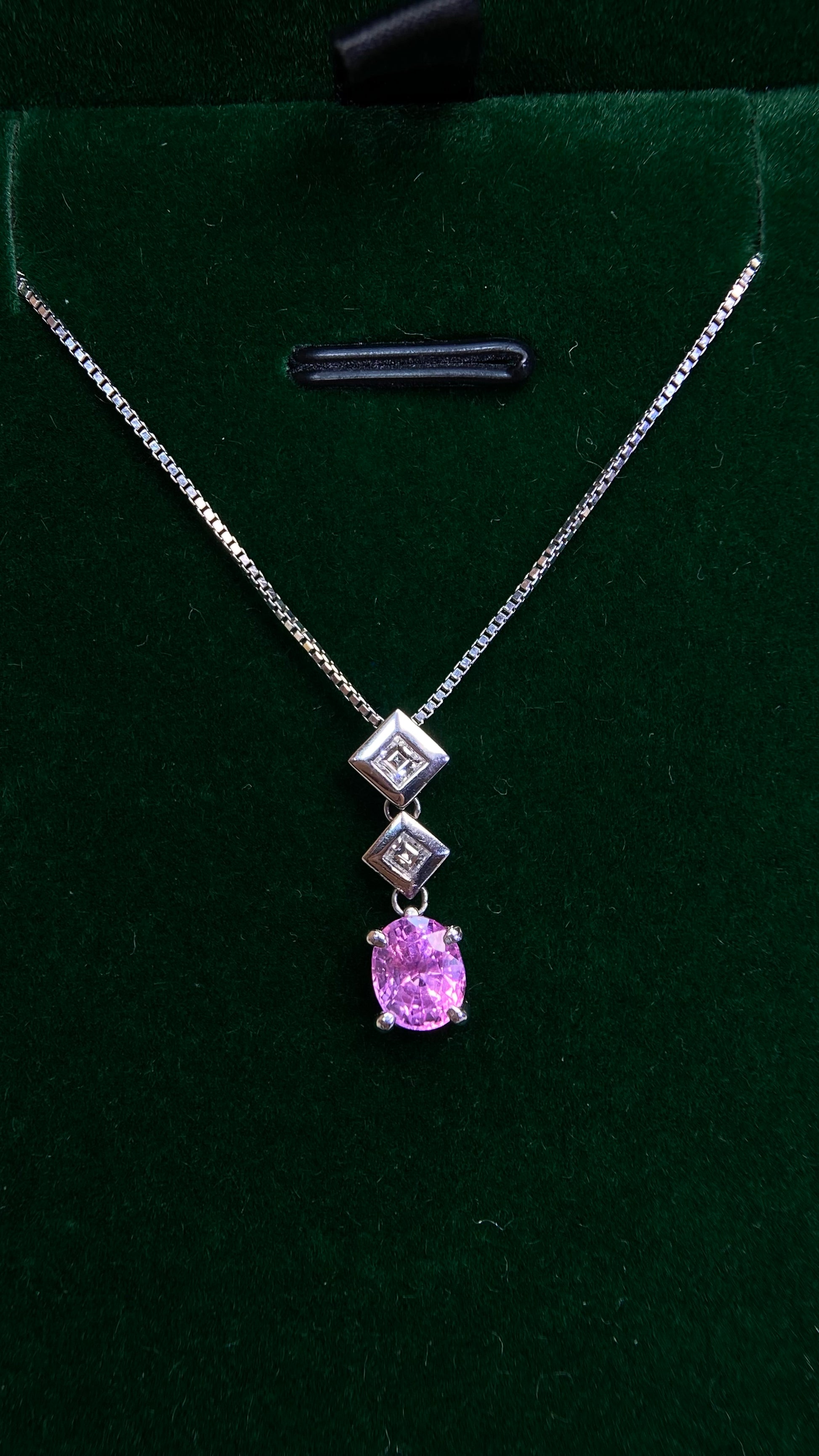 Pt850 platinum/Pt900 platinum&Pink sapphire&Diamond Necklace| Pink sapphire: 1.07ct Sri Lanka|Diamonds:0.10ct|Japanese Vintage Estate Jewelry -BKKL